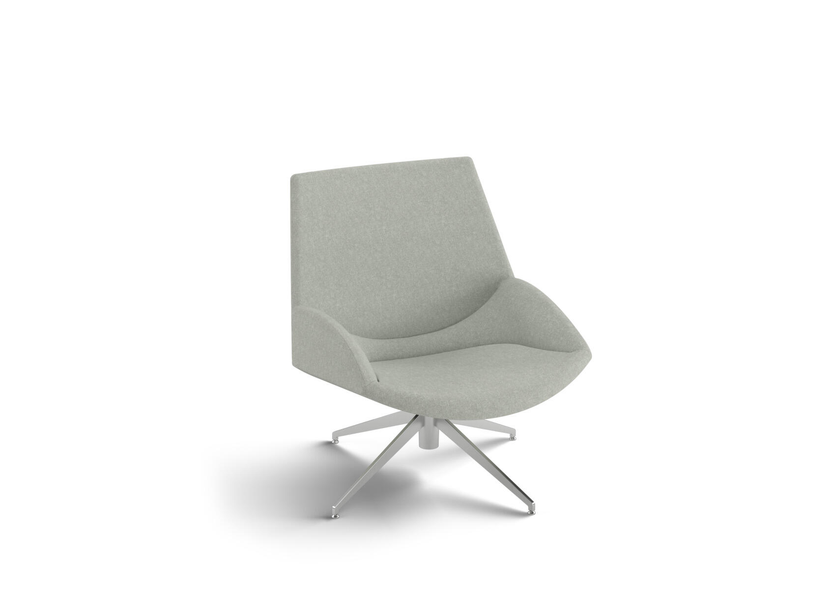 En snurrfåtölj med modern design och generös komfort. Tiltmekanism. Krysstativ i polerad aluminium. Trästomme och stoppning i kallskum. För ytterligare komfort erbjuds även nackstöd som ett tillval.