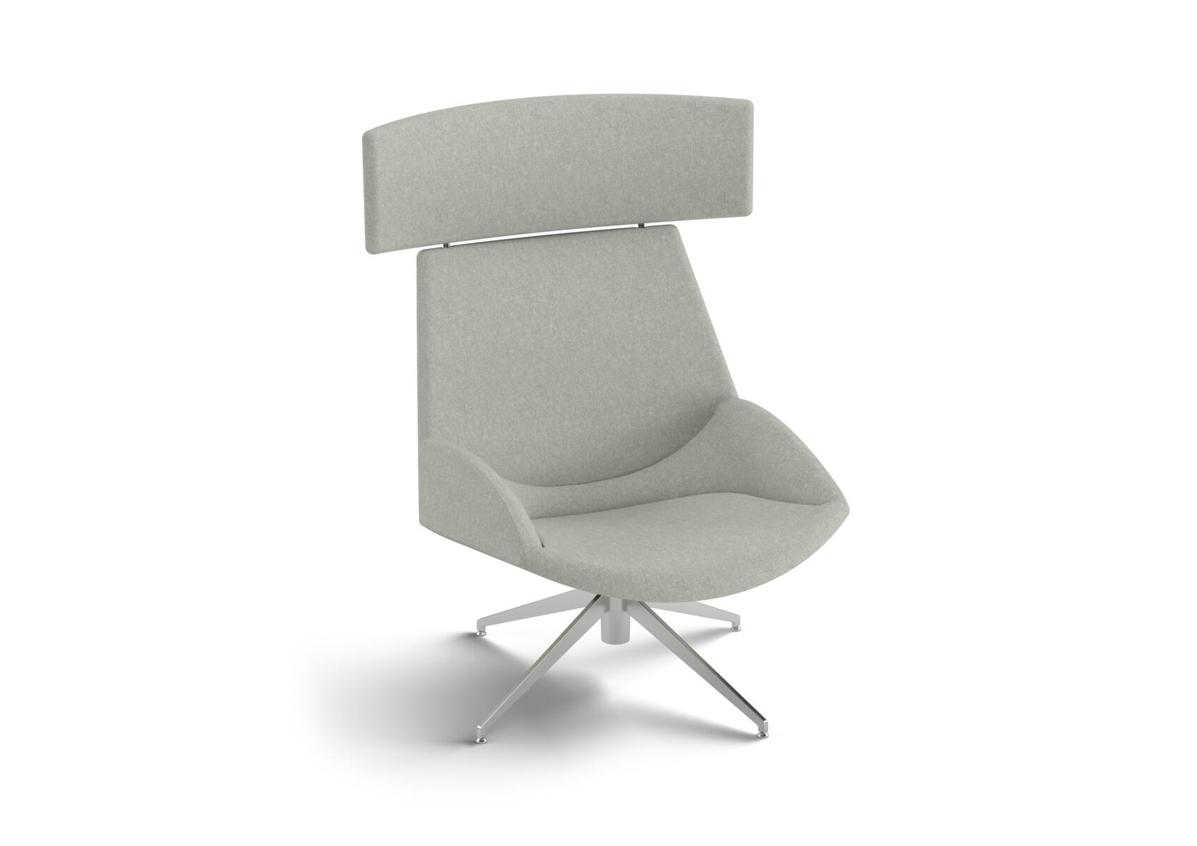 Omslutande fåtölj som tack vare sina höga sidor har en ljuddämpande och avskärmande effekt, vilket gör att den lämpar sig för exempelvis mindre, privata möten eller telefonsamtal. De höga väggarna ger avskildhet från resten av rummet. Trästomme och stoppning i kallskum. Medar i pulverlackad metall. Färgval på rygg. Gavlar och sits alltid grå kulör i det tyg som väljs. Som tillval finns eluttag.