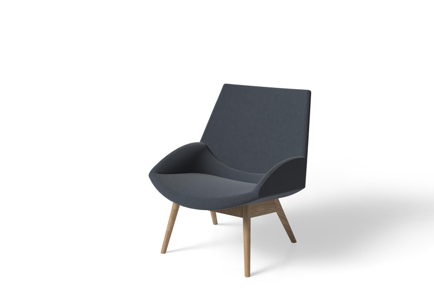 En fåtölj med modern design och generös komfort. Trästativ i klarlackad ek. Trästo mme och stoppning i kallskum. För ytterligare komfort erbjuds även nackstöd som ett tillval.