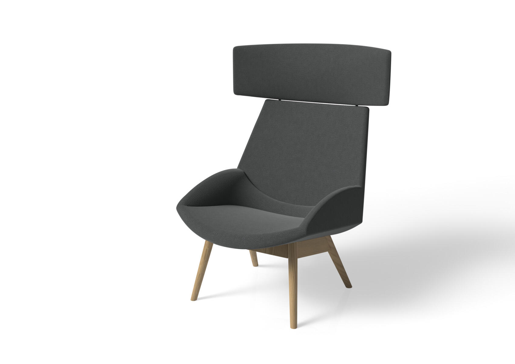 Omslutande fåtölj som tack vare sina höga sidor har en ljuddämpande och avskärmande effekt, vilket gör att den lämpar sig för exempelvis mindre, privata möten eller telefonsamtal. De höga väggarna ger avskildhet från resten av rummet. Trästomme och stoppning i kallskum. Medar i pulverlackad metall. Färgval på rygg. Gavlar och sits alltid grå kulör i det tyg som väljs. Som tillval finns eluttag.