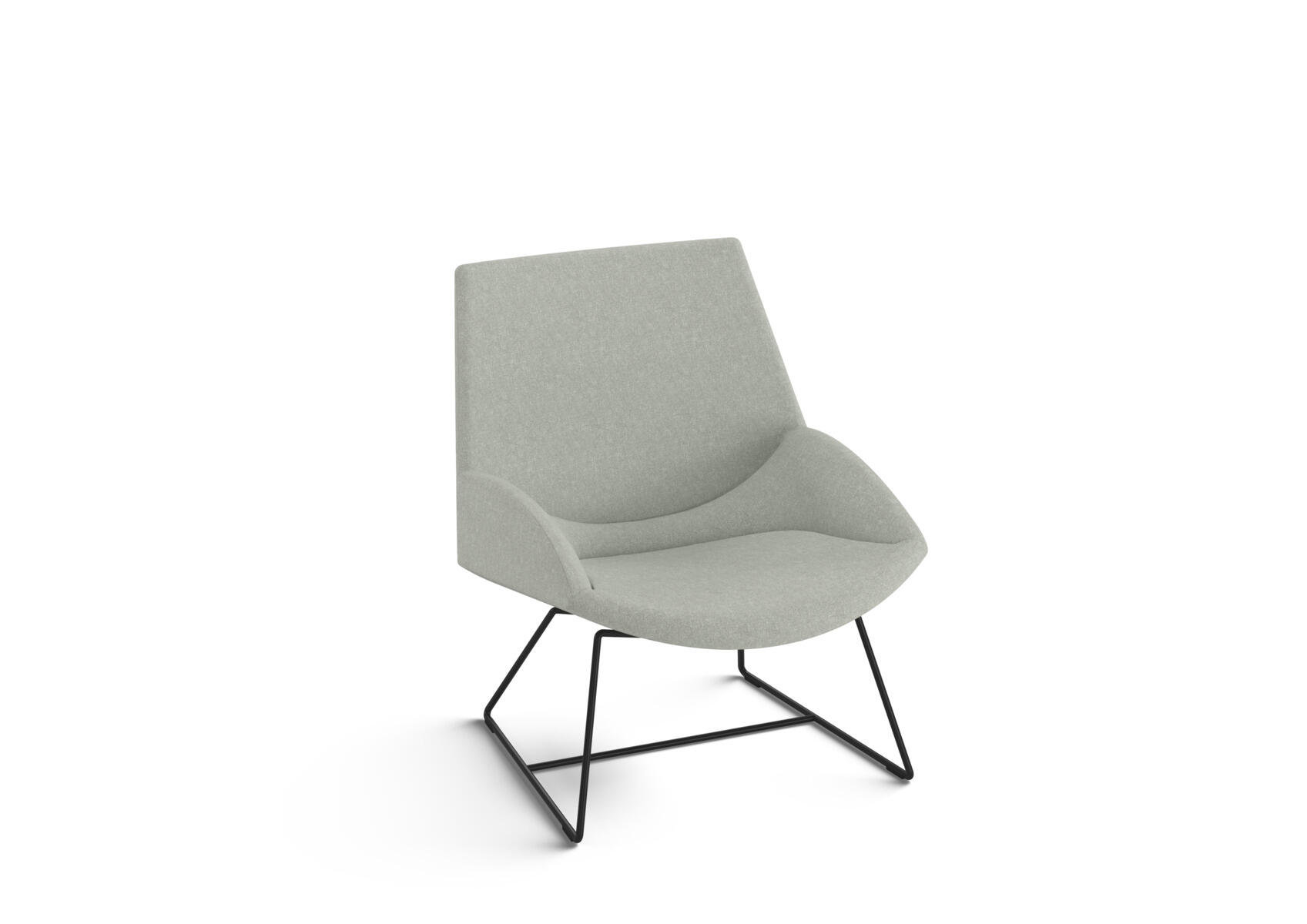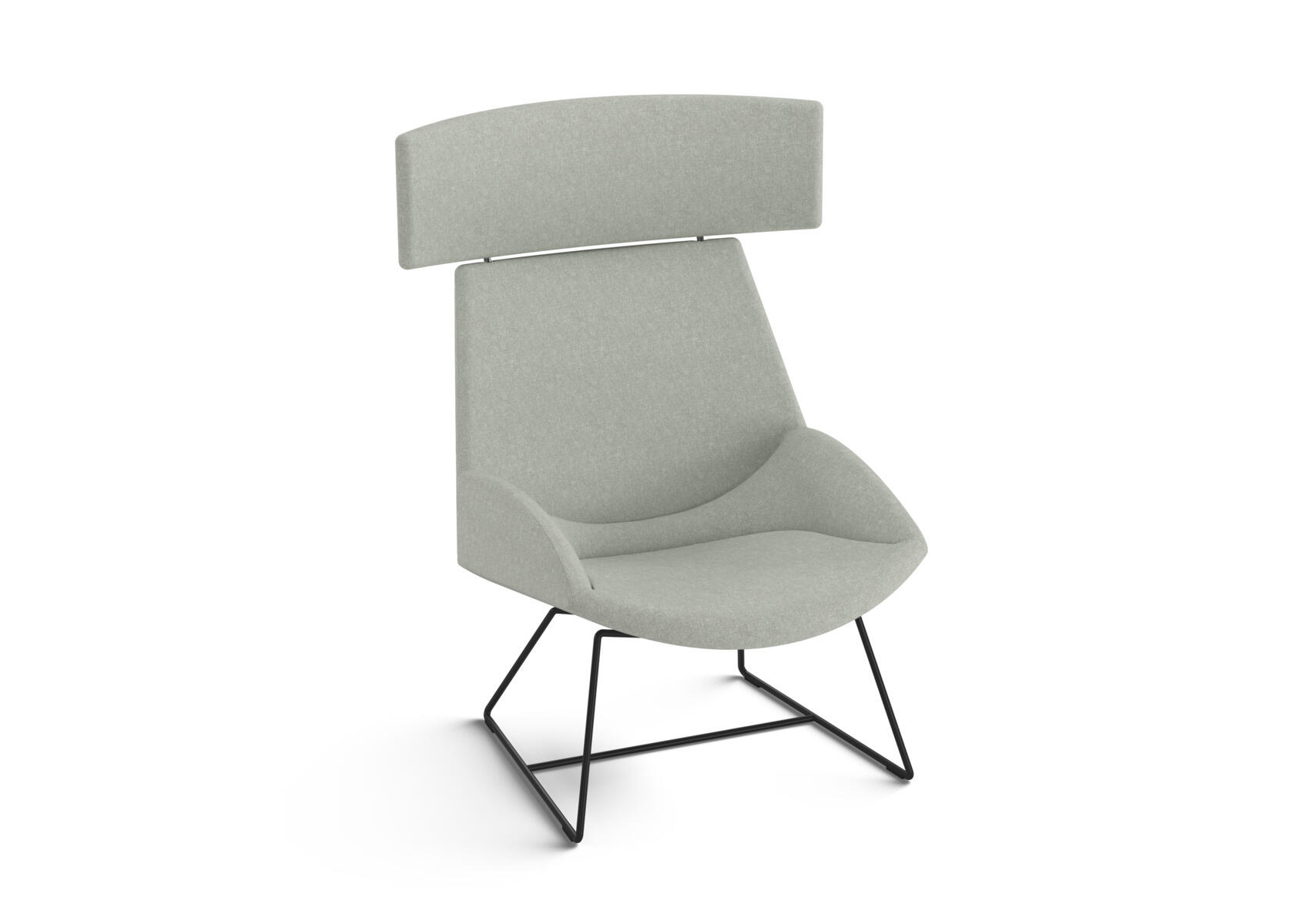 Omslutande fåtölj som tack vare sina höga sidor har en ljuddämpande och avskärmande effekt, vilket gör att den lämpar sig för exempelvis mindre, privata möten eller telefonsamtal. De höga väggarna ger avskildhet från resten av rummet. Trästomme och stoppning i kallskum. Medar i pulverlackad metall. Färgval på rygg. Gavlar och sits alltid grå kulör i det tyg som väljs. Som tillval finns eluttag.