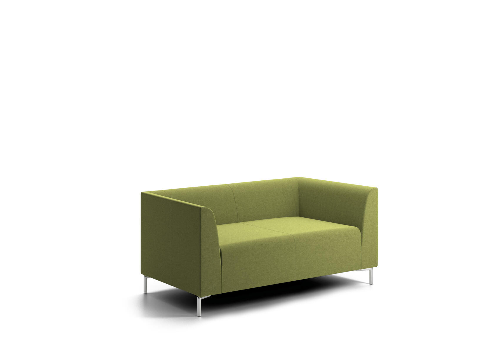 Stilren soffa som med sitt enkla formspråk passar in i de flesta miljöer. Raka linjer utvändigt och rundade, omslutande former invändigt. Den raka utsidan gör det lätt att placera flera soffor tätt intill varandra, exempelvis rygg mot rygg. Trästomme med nozagbotten och stoppning i kallskum. Stativ i pulverlackad metall.