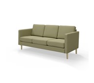 En soffa med stomme i massivt trä och nozagbotten för robust stöd och komfort. All klädsel på både stomme och dynor är avtagbar för att underlätta rengöring och underhåll. Enkel montering av ben.