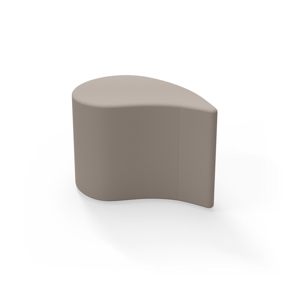 Smidig och lättplacerad droppformad sittpuff. Kan användas enskilt eller flera i en grupp runt ett bord. Trästomme och stoppning i kallskum. Välj mellan glidfötter eller invändiga hjul.