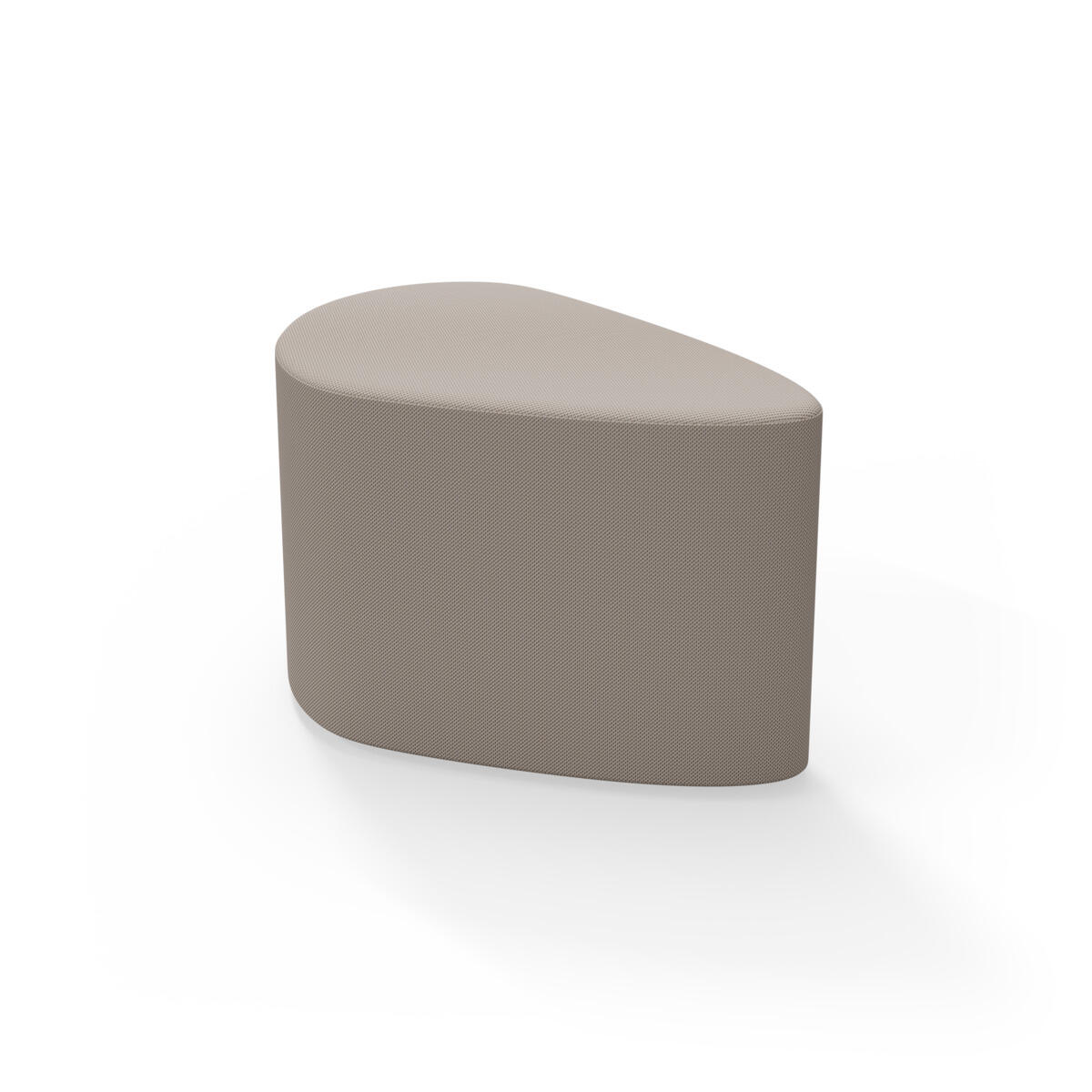 Smidig och lättplacerad droppformad sittpuff. Kan användas enskilt eller flera i en grupp runt ett bord. Trästomme och stoppning i kallskum. Välj mellan glidfötter eller invändiga hjul.