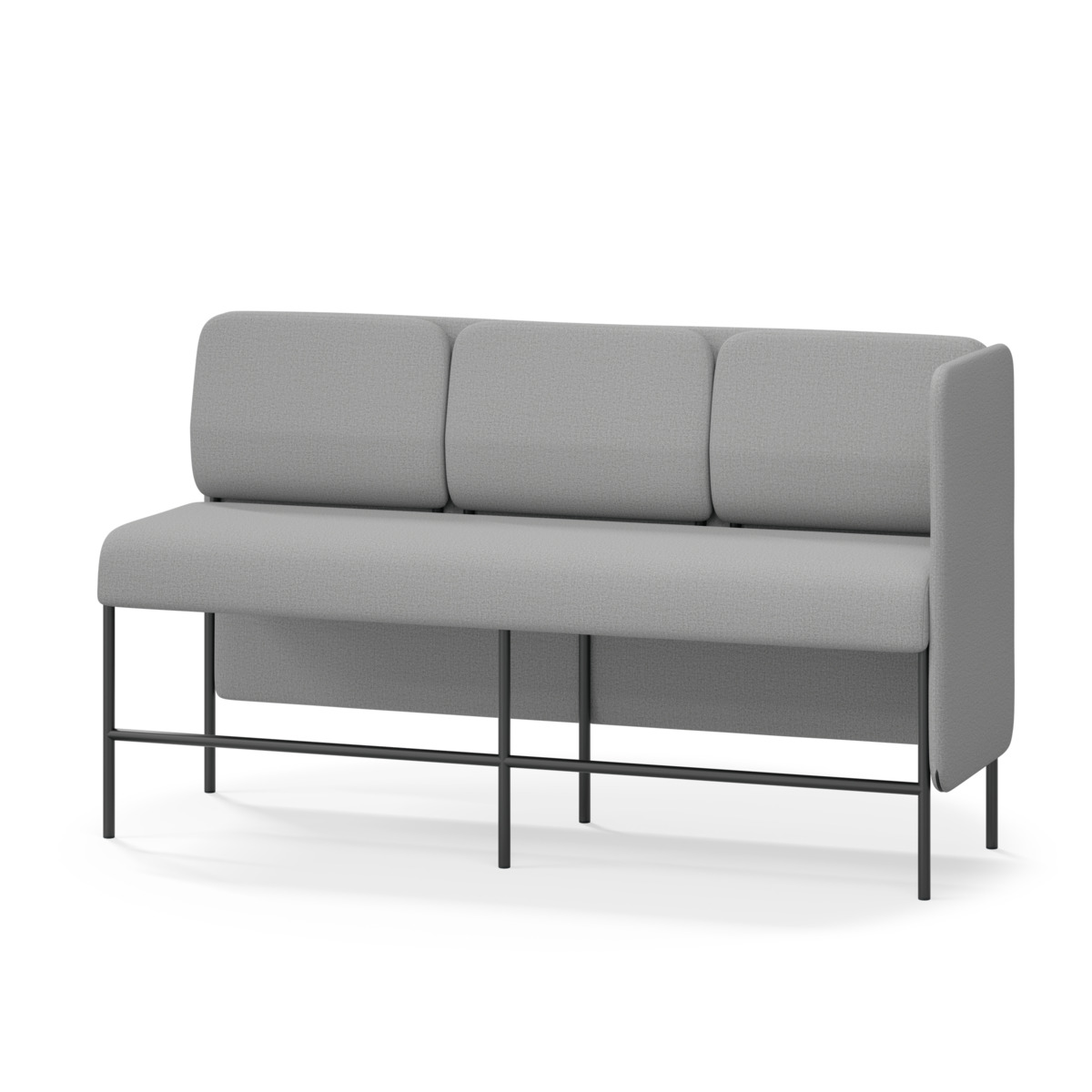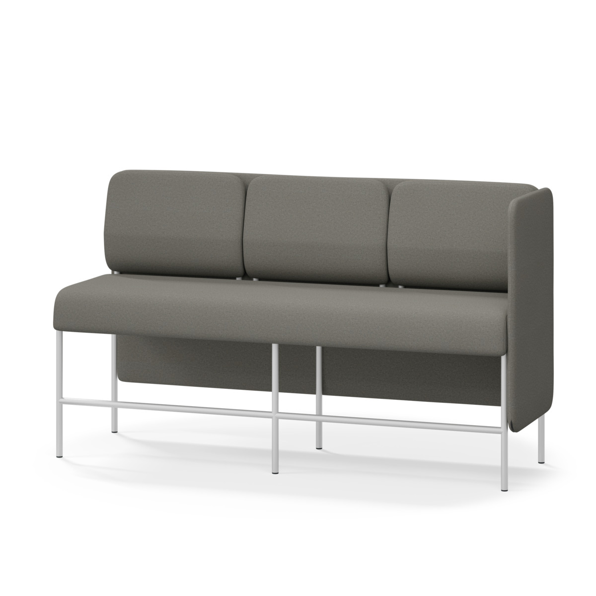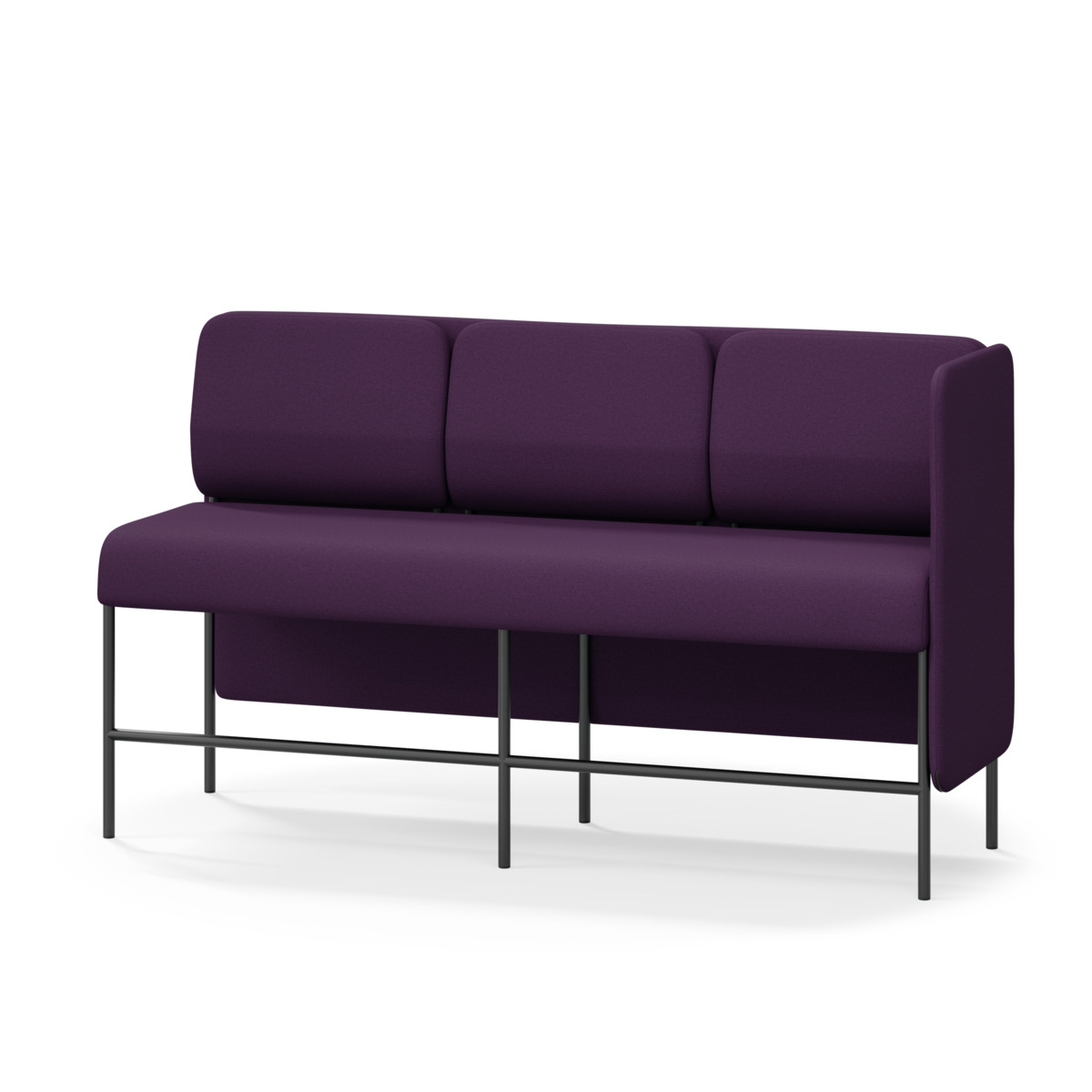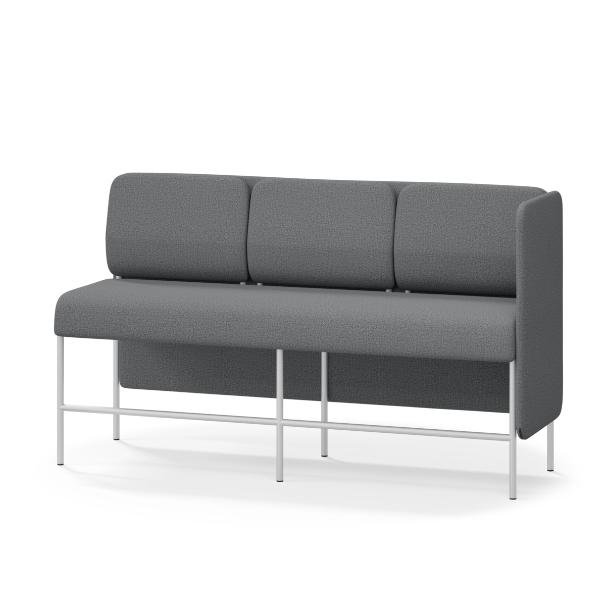 3-sitsig soffmodul med ergonomiskt designad ryggkudde och ljudabsorberande panel. Soffsystemet är särskilt utformat för att skapa platsbesparande moduler för studiero, trygghet, gemenskap och inkludering i skolan. Vi har minimerat materialanvändningen och skapat en cirkulär produkt där alla delar kan bytas ut. Soffan har smulgap och högt metallstativ som underlättar vid städning, samt avtagbar klädsel på dynor och paneler. Stomme av plywood med stoppning av kallskum. Stativ i pulverlackad metall med ställfötter som gör att soffan står stadigt även på ojämna underlag. Design: Sigrid Strömgren