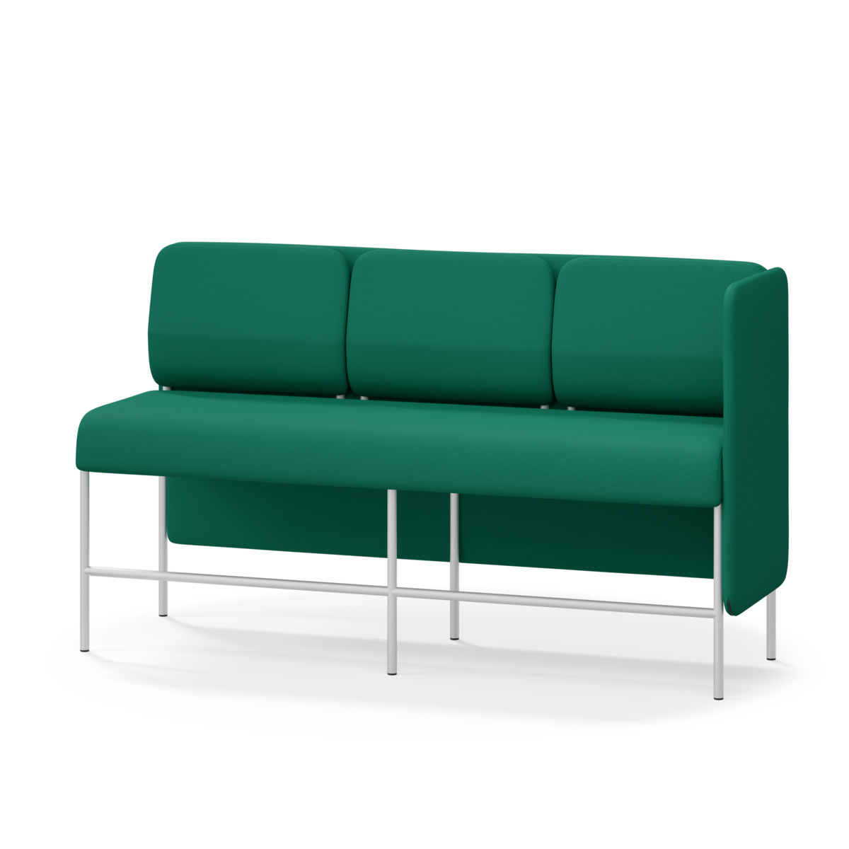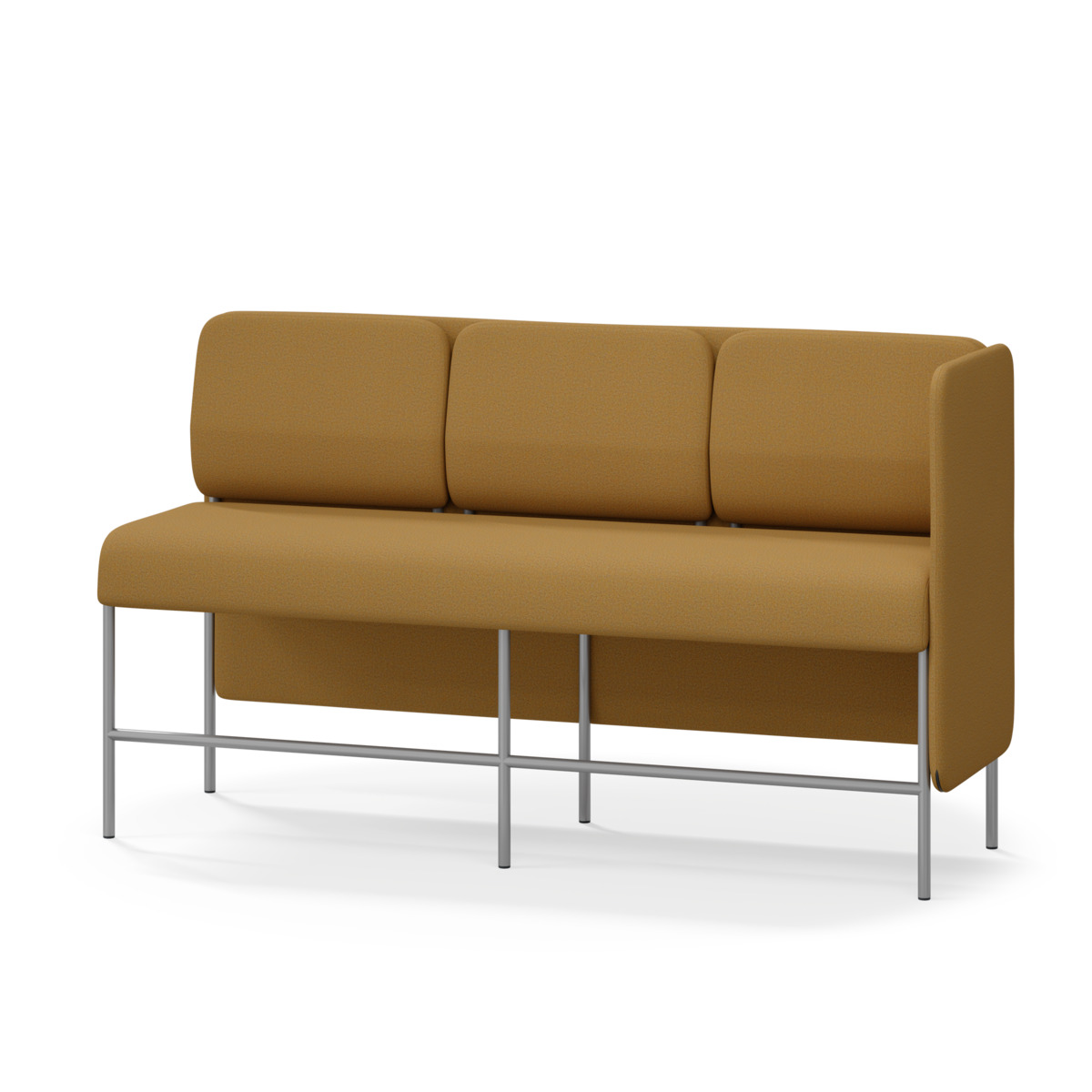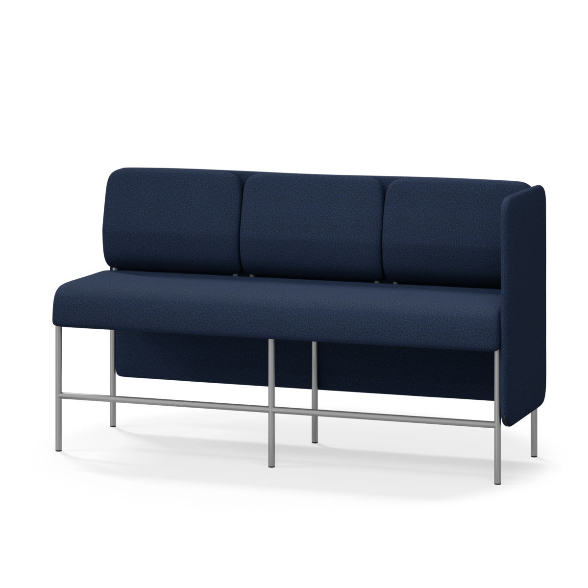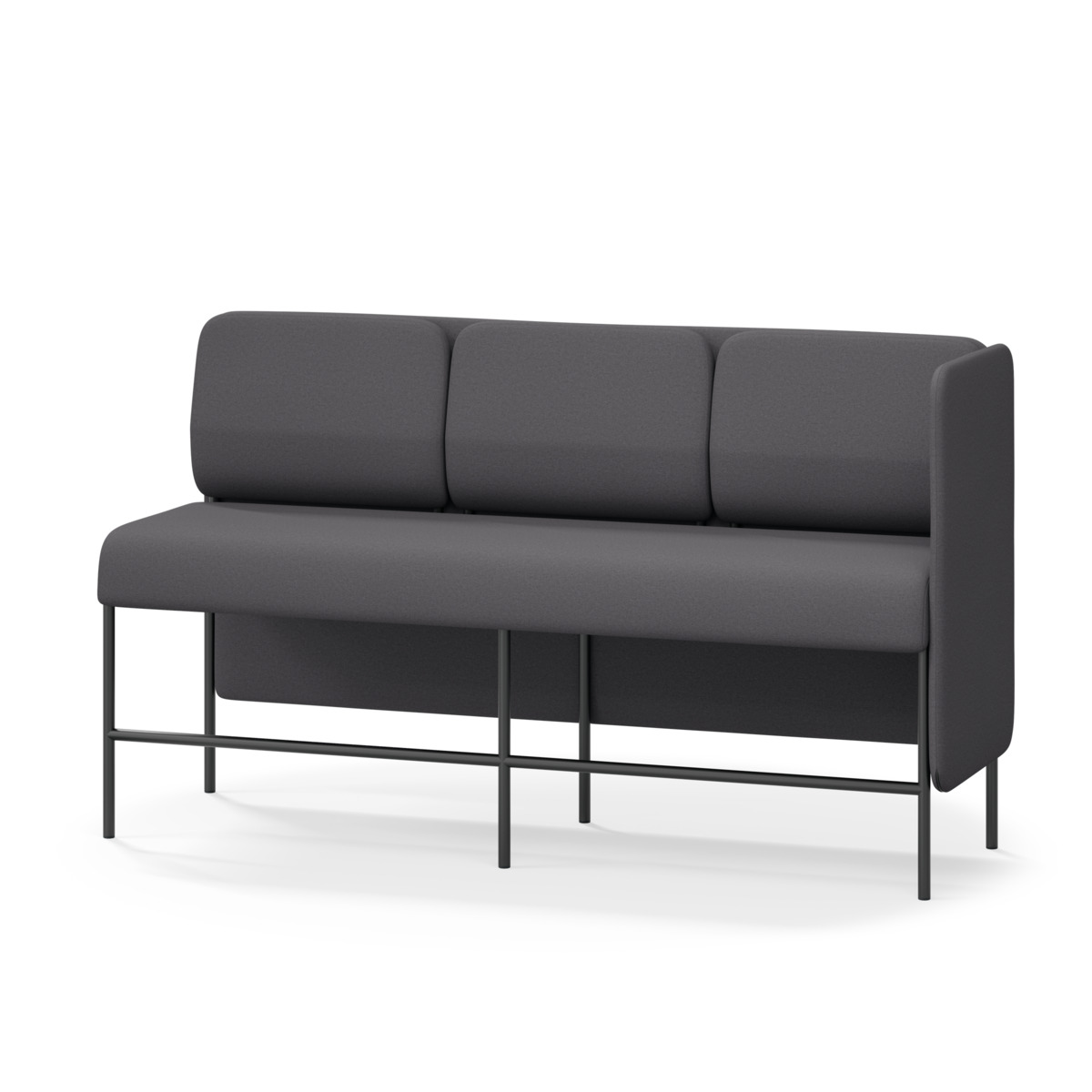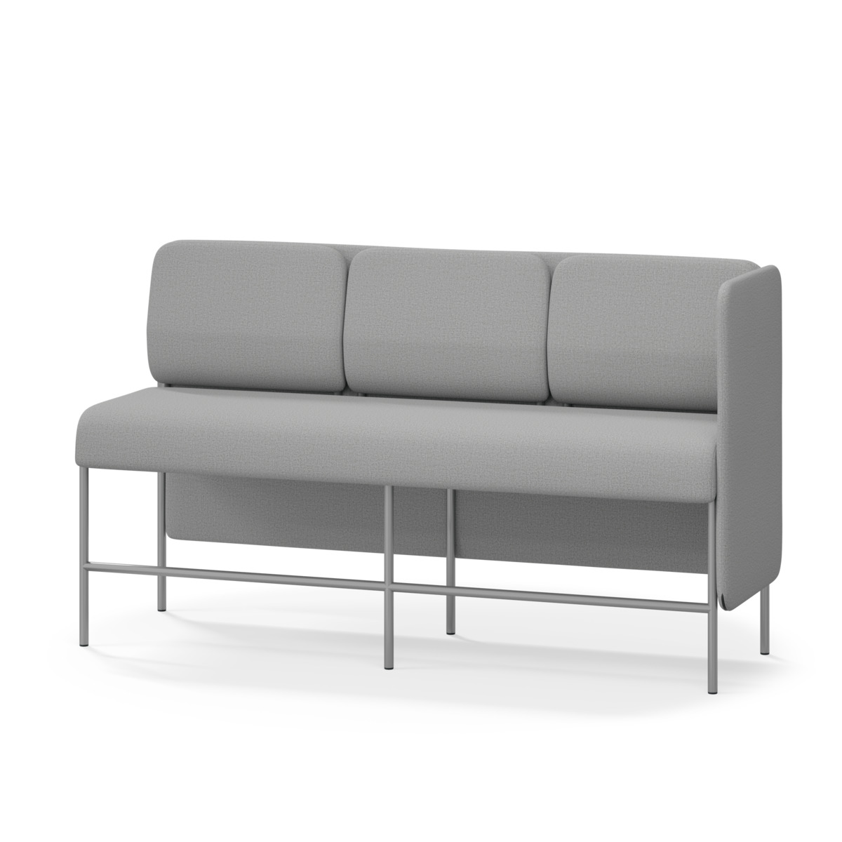 3-sitsig soffmodul med ergonomiskt designad ryggkudde och ljudabsorberande panel. Soffsystemet är särskilt utformat för att skapa platsbesparande moduler för studiero, trygghet, gemenskap och inkludering i skolan. Vi har minimerat materialanvändningen och skapat en cirkulär produkt där alla delar kan bytas ut. Soffan har smulgap och högt metallstativ som underlättar vid städning, samt avtagbar klädsel på dynor och paneler. Stomme av plywood med stoppning av kallskum. Stativ i pulverlackad metall med ställfötter som gör att soffan står stadigt även på ojämna underlag. Design: Sigrid Strömgren