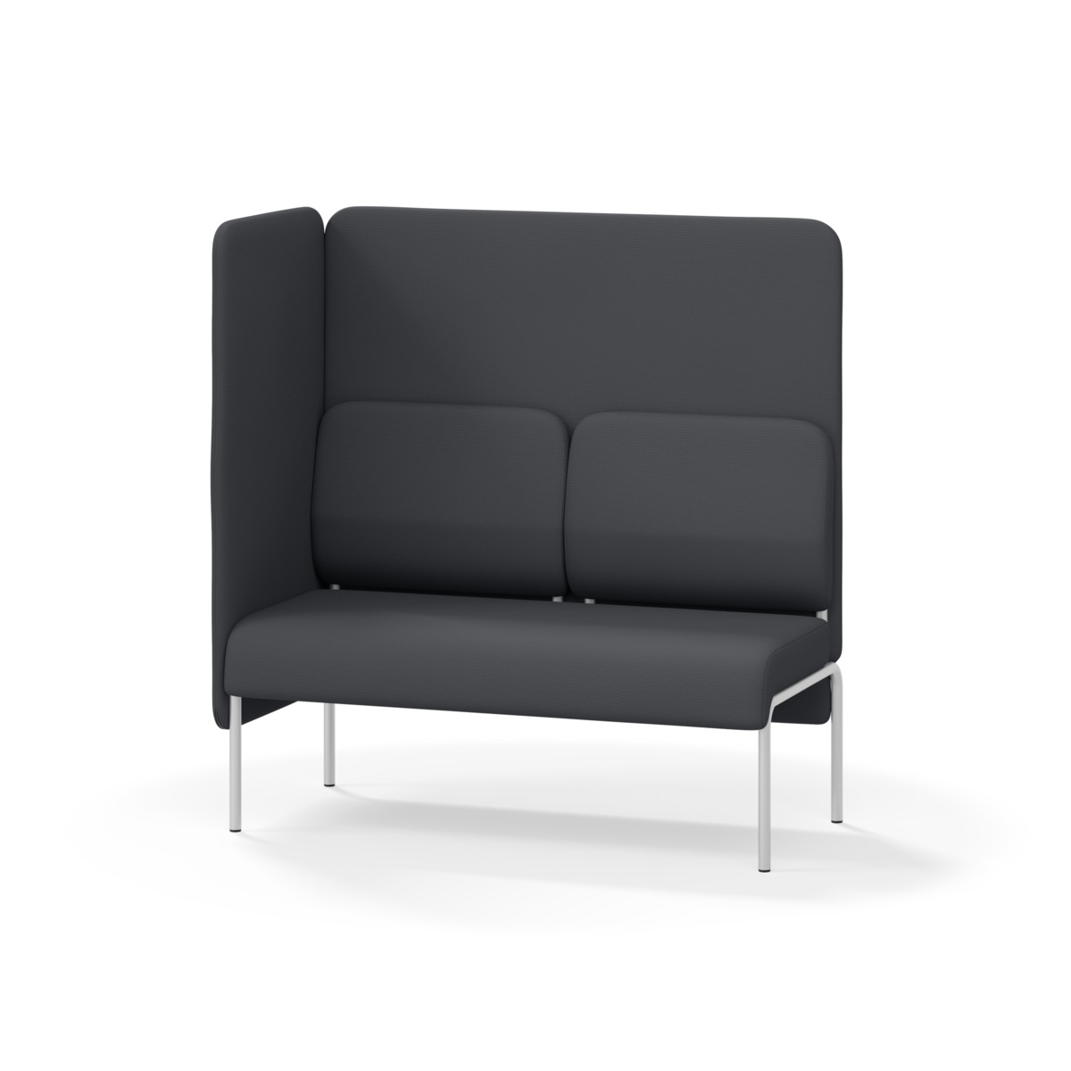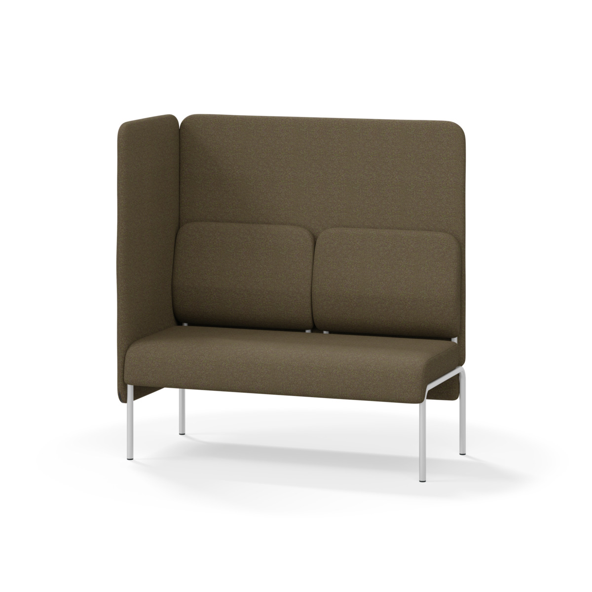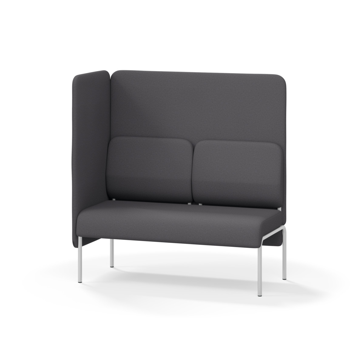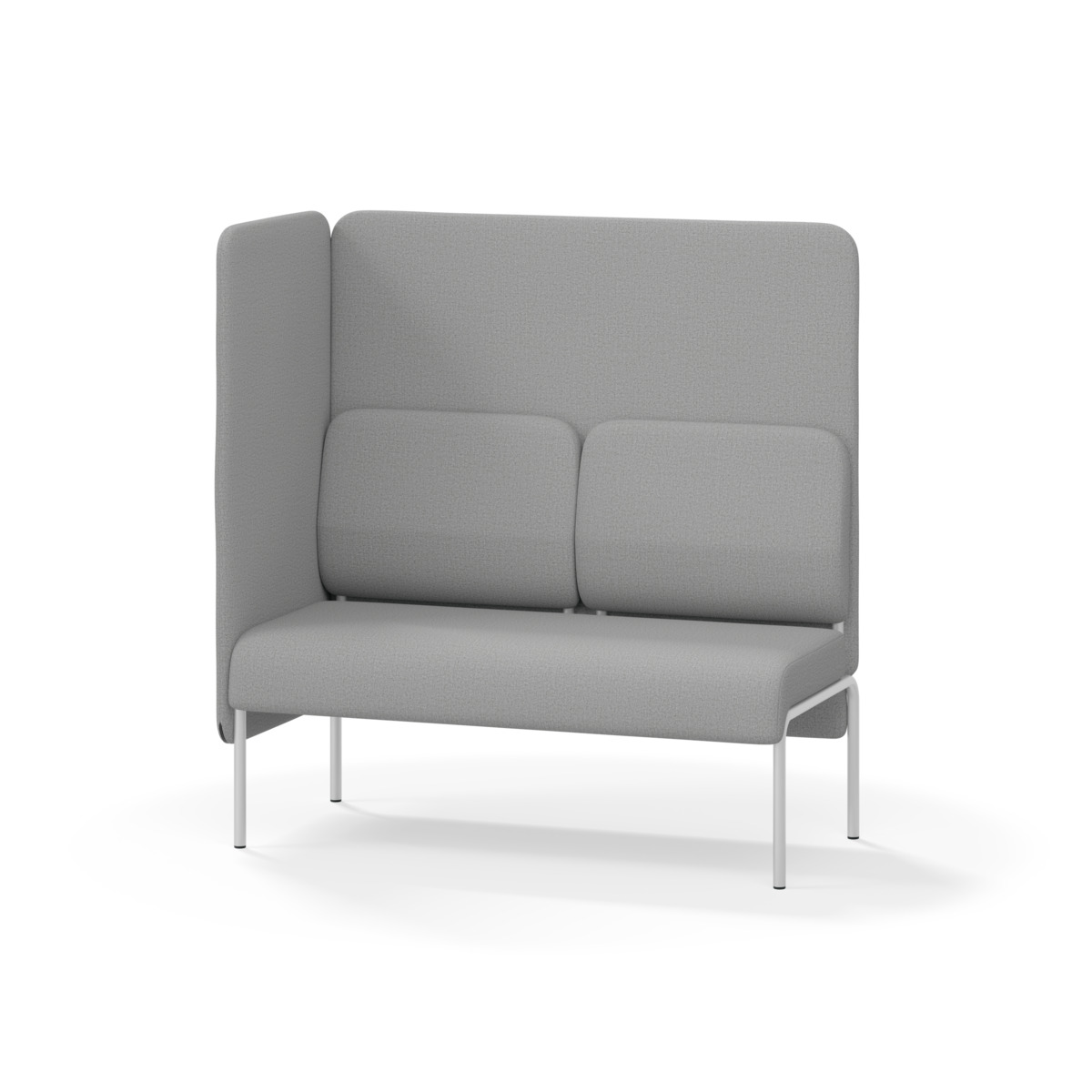 2-sitsig soffmodul med ergonomiskt designad ryggkudde och ljudabsorberande panel. Soffsystemet är särskilt utformat för att skapa platsbesparande moduler för studiero, trygghet, gemenskap och inkludering i skolan. Vi har minimerat materialanvändningen och skapat en cirkulär produkt där alla delar kan bytas ut. Soffan har smulgap och högt metallstativ som underlättar vid städning, samt avtagbar klädsel på dynor och paneler. Stomme av plywood med stoppning av kallskum. Stativ i pulverlackad metall med ställfötter som gör att soffan står stadigt även på ojämna underlag. Design: Sigrid Strömgren