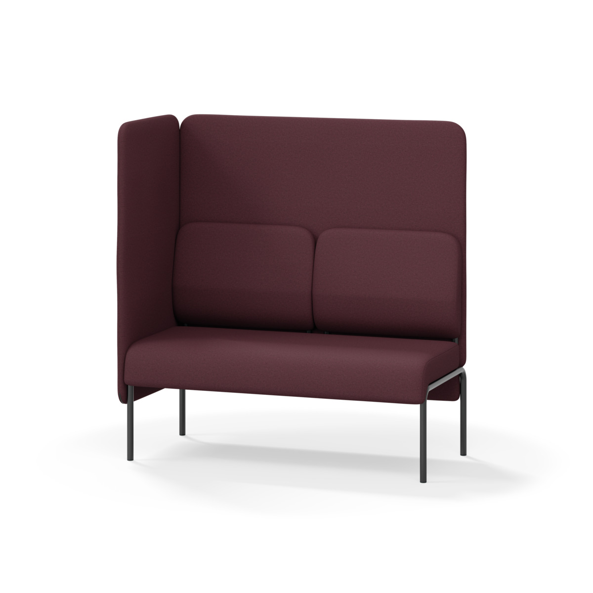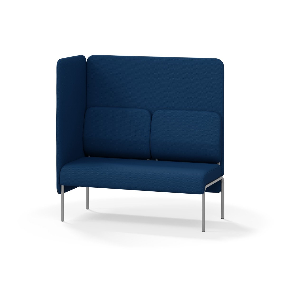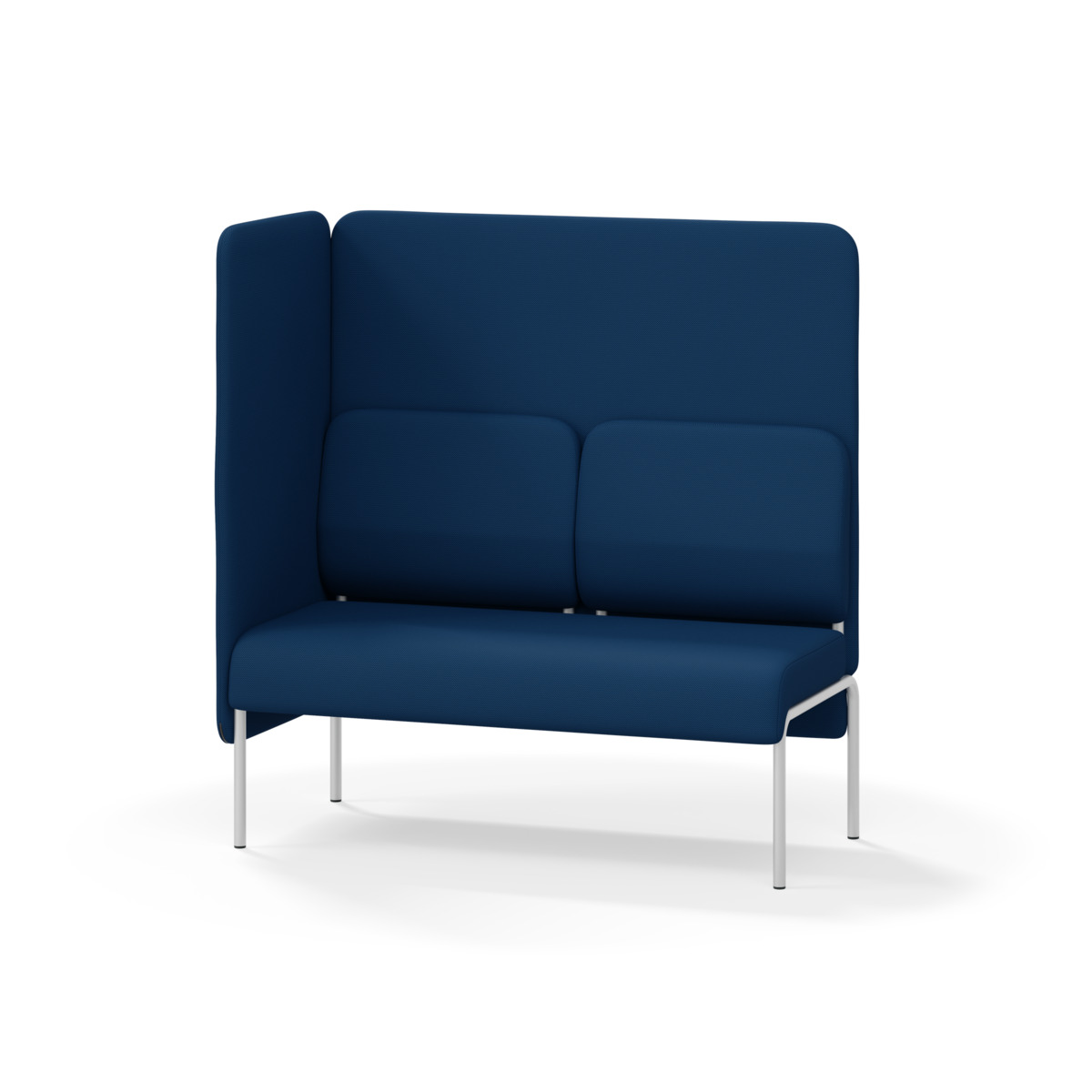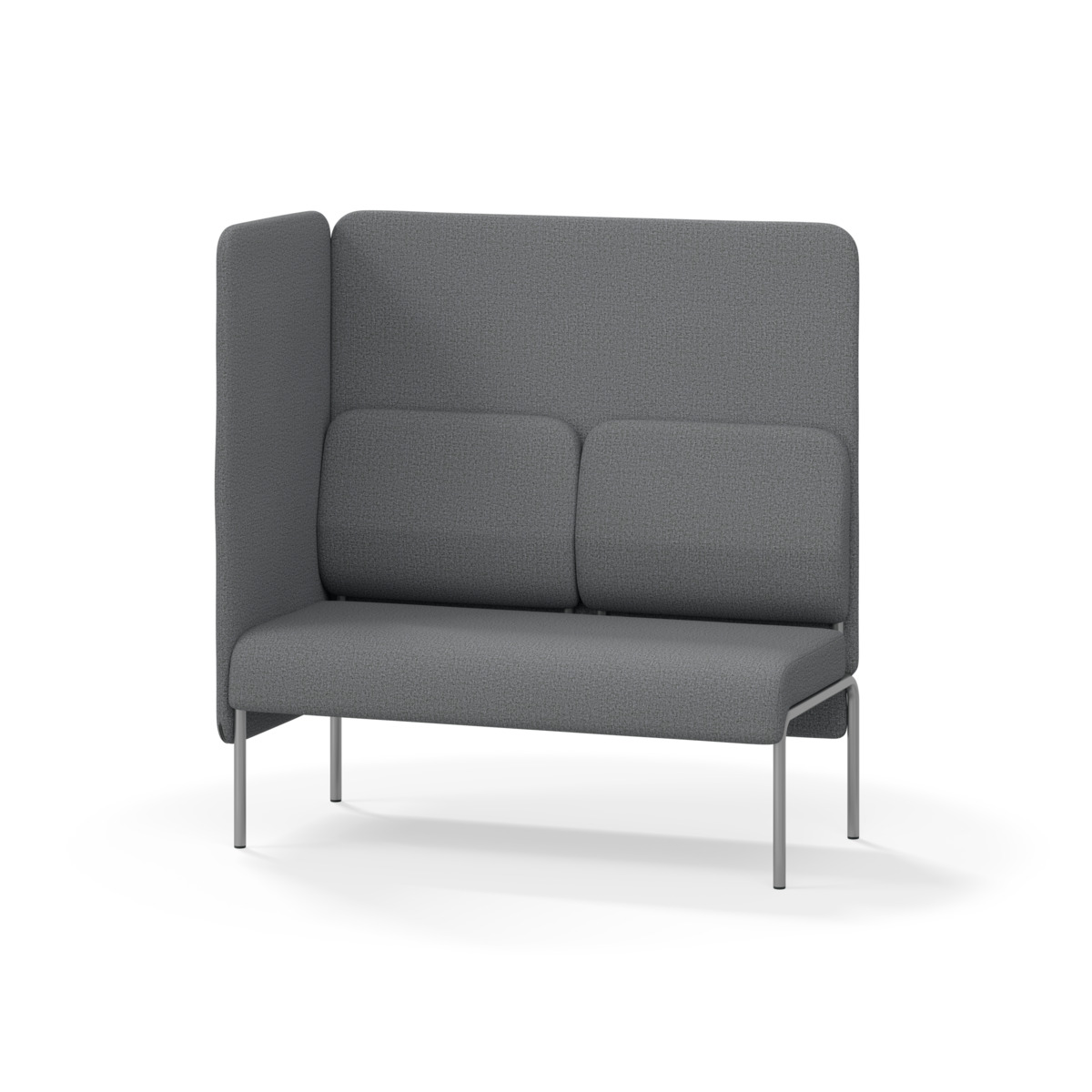 2-sitsig soffmodul med ergonomiskt designad ryggkudde och ljudabsorberande panel. Soffsystemet är särskilt utformat för att skapa platsbesparande moduler för studiero, trygghet, gemenskap och inkludering i skolan. Vi har minimerat materialanvändningen och skapat en cirkulär produkt där alla delar kan bytas ut. Soffan har smulgap och högt metallstativ som underlättar vid städning, samt avtagbar klädsel på dynor och paneler. Stomme av plywood med stoppning av kallskum. Stativ i pulverlackad metall med ställfötter som gör att soffan står stadigt även på ojämna underlag. Design: Sigrid Strömgren