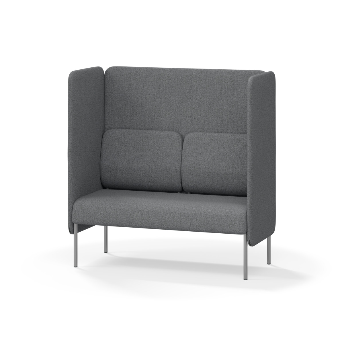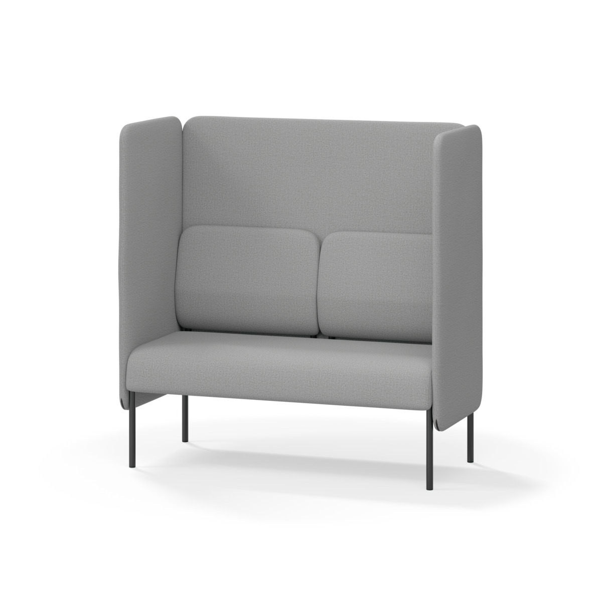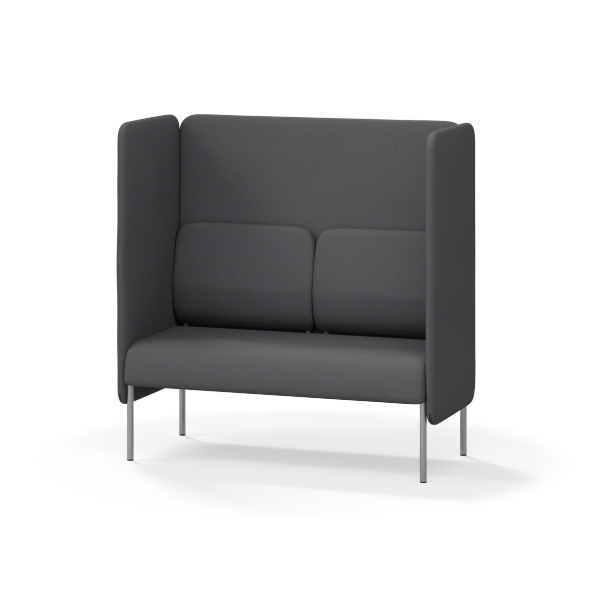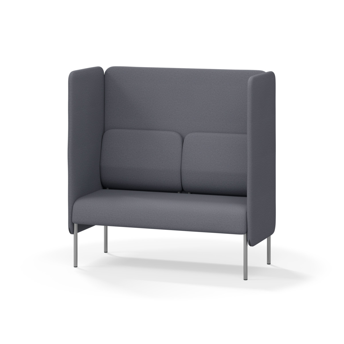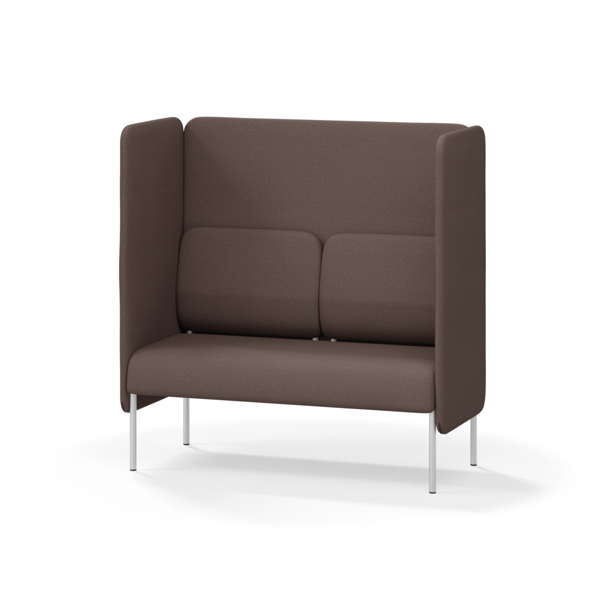 Omslutande fåtölj som tack vare sina höga sidor har en ljuddämpande och avskärmande effekt, vilket gör att den lämpar sig för exempelvis mindre, privata möten eller telefonsamtal. De höga väggarna ger avskildhet från resten av rummet. Trästomme och stoppning i kallskum. Medar i pulverlackad metall. Färgval på rygg. Gavlar och sits alltid grå kulör i det tyg som väljs. Som tillval finns eluttag.