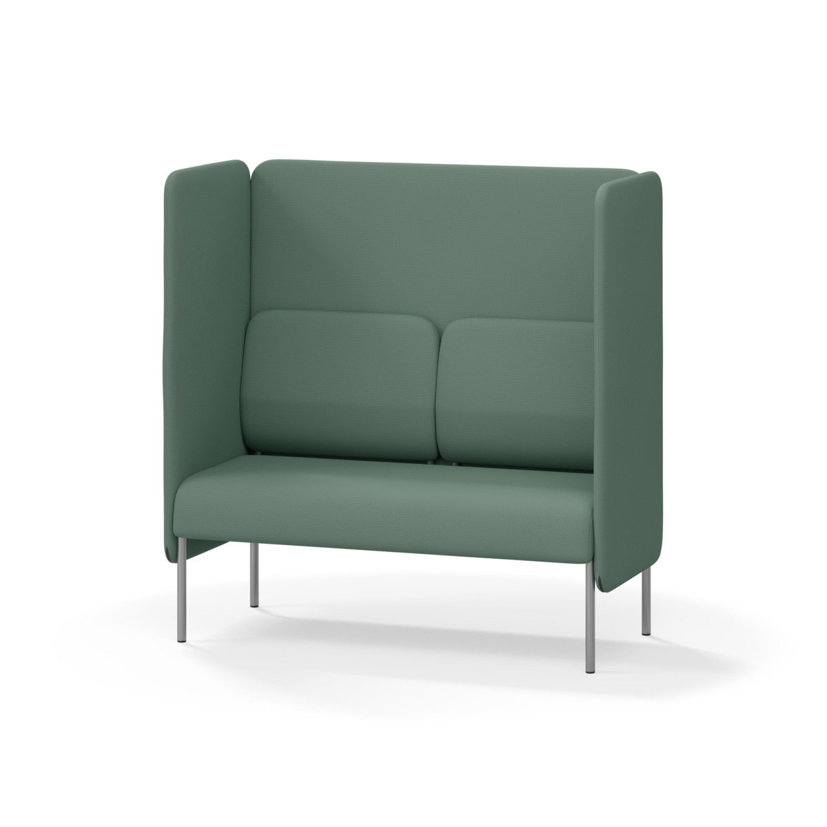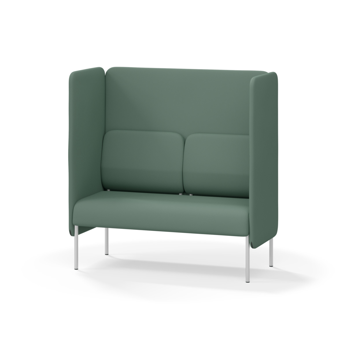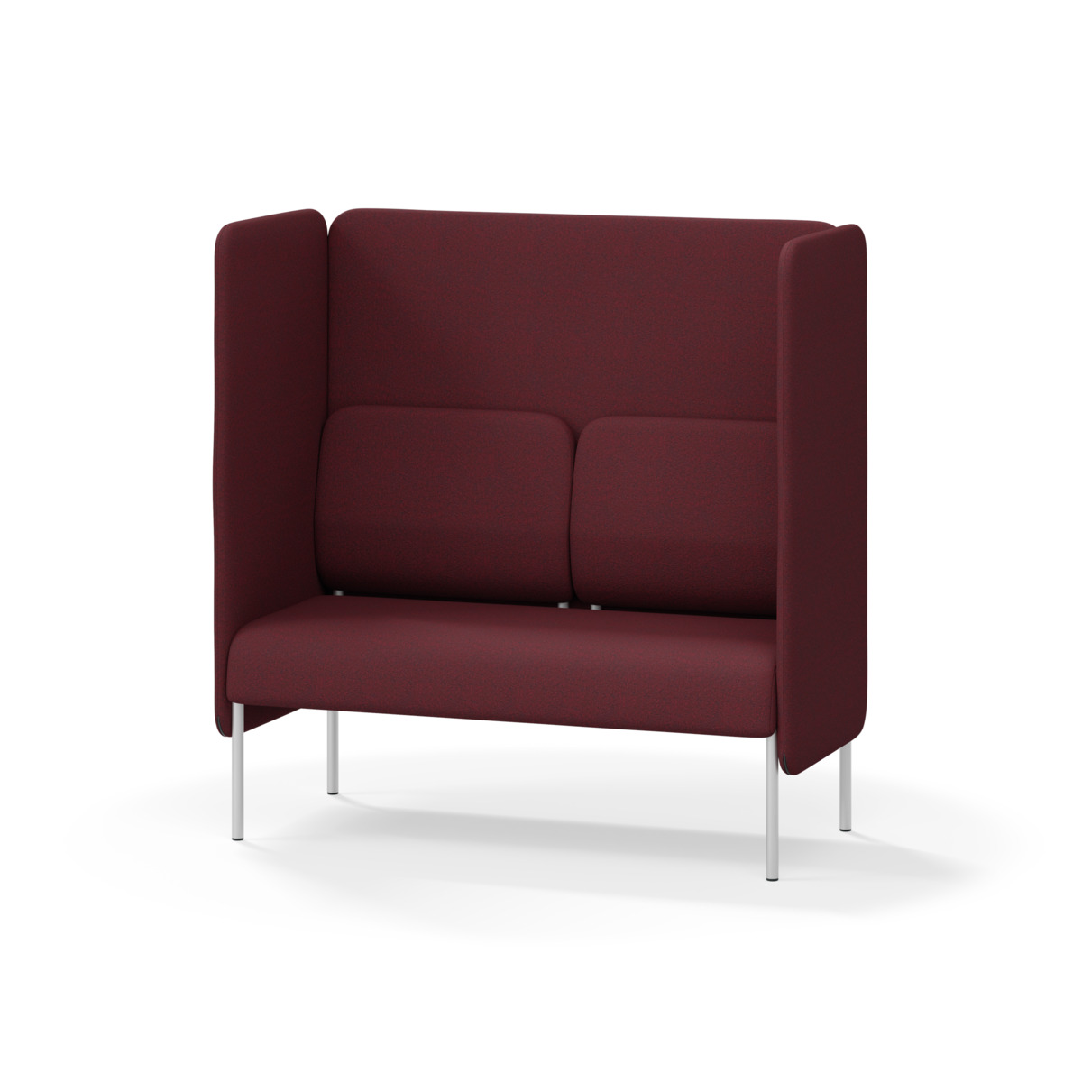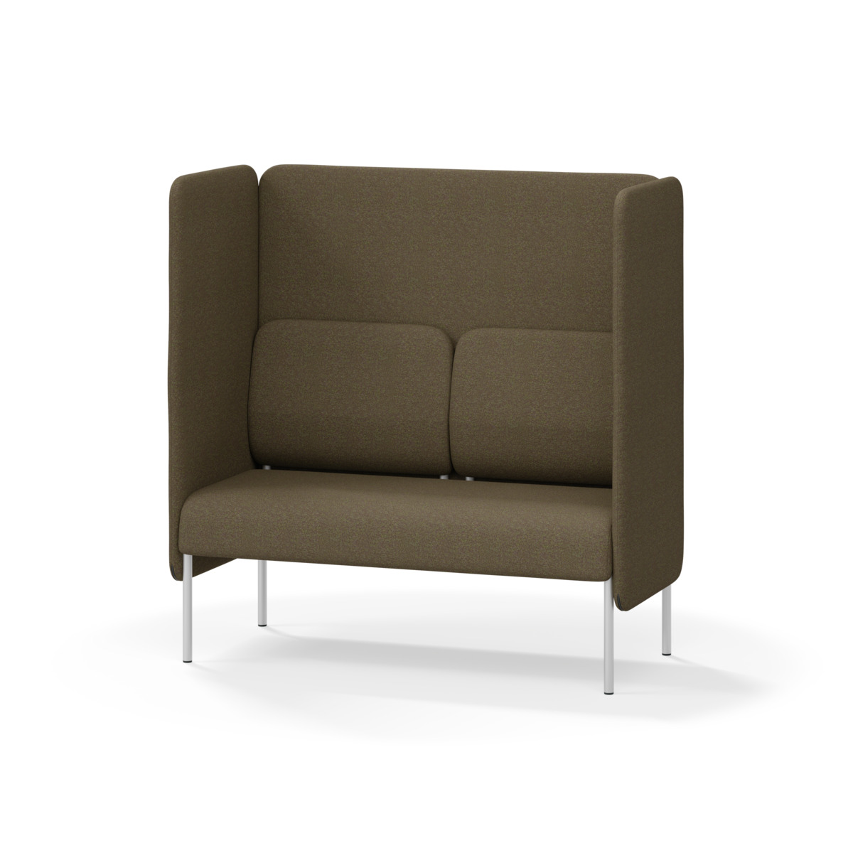 Omslutande fåtölj som tack vare sina höga sidor har en ljuddämpande och avskärmande effekt, vilket gör att den lämpar sig för exempelvis mindre, privata möten eller telefonsamtal. De höga väggarna ger avskildhet från resten av rummet. Trästomme och stoppning i kallskum. Medar i pulverlackad metall. Färgval på rygg. Gavlar och sits alltid grå kulör i det tyg som väljs. Som tillval finns eluttag.