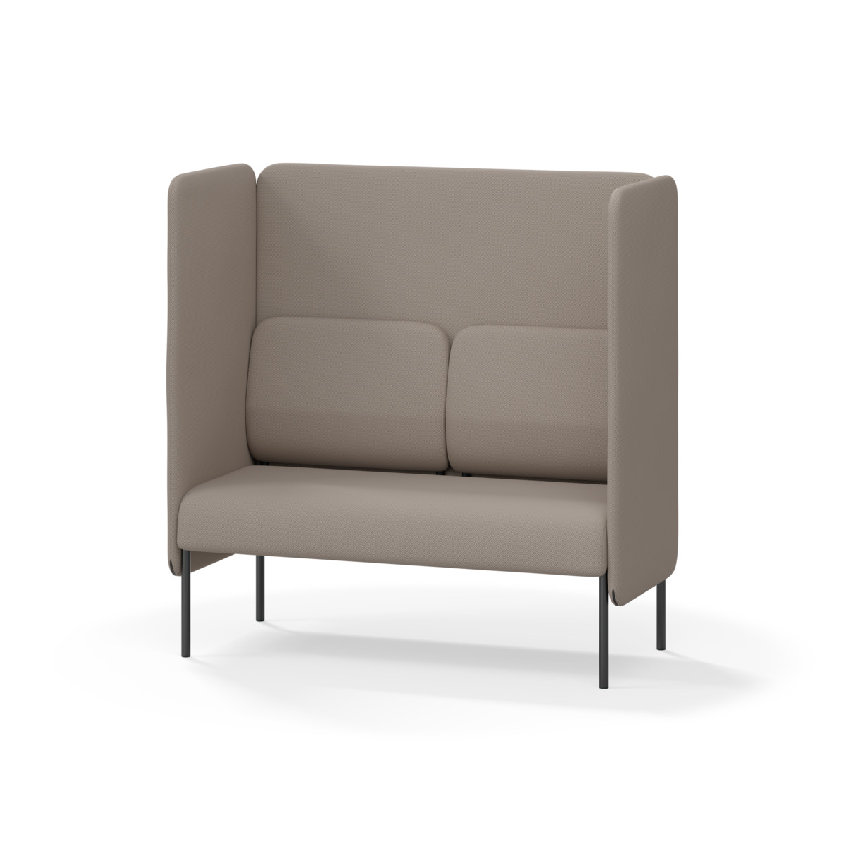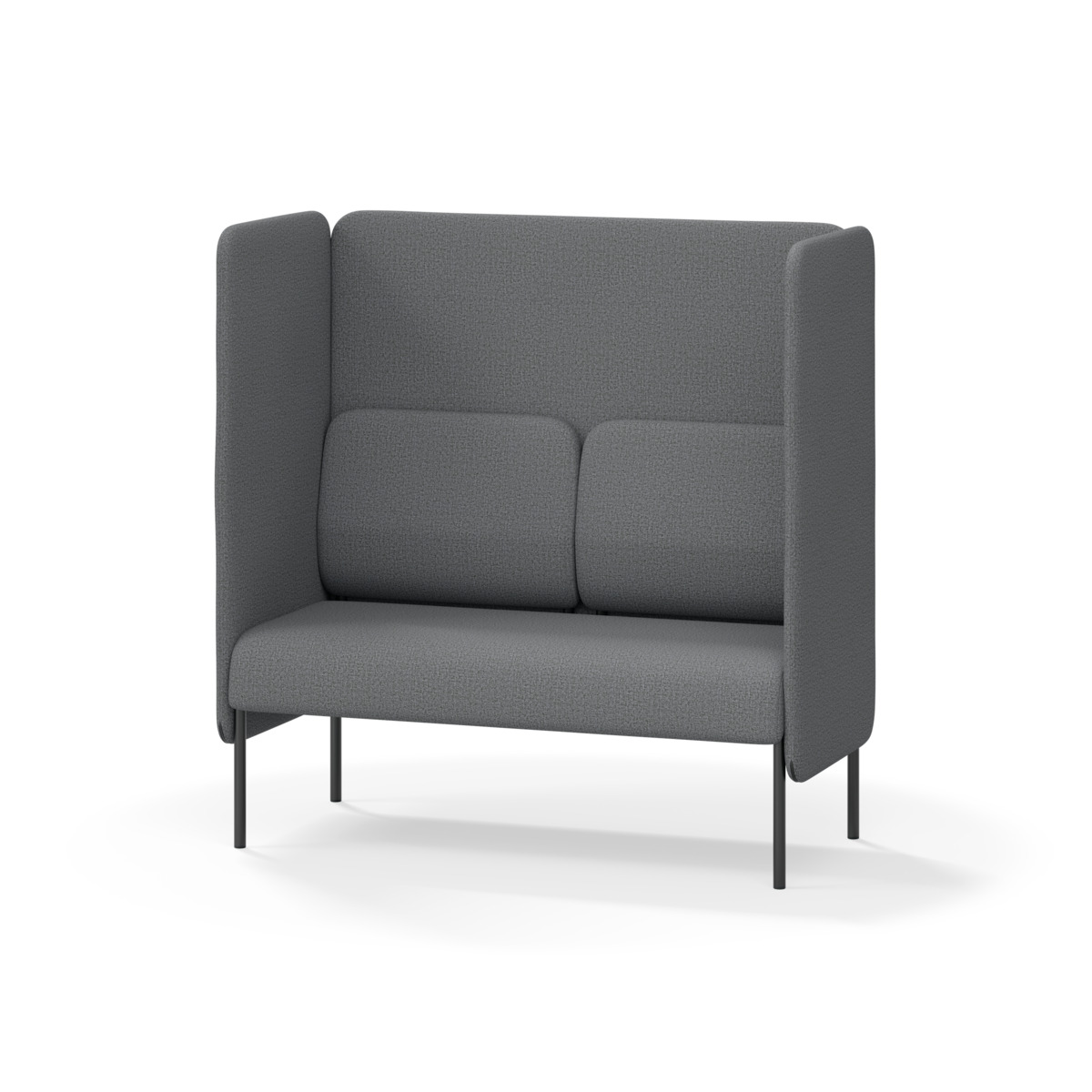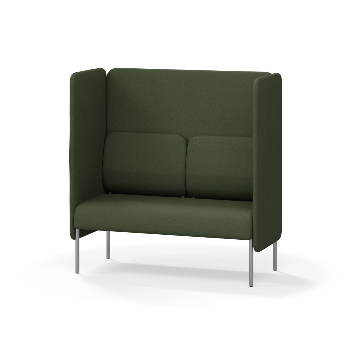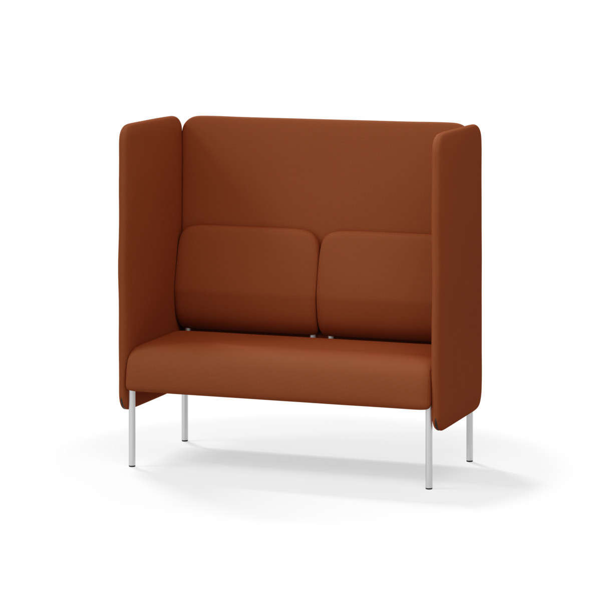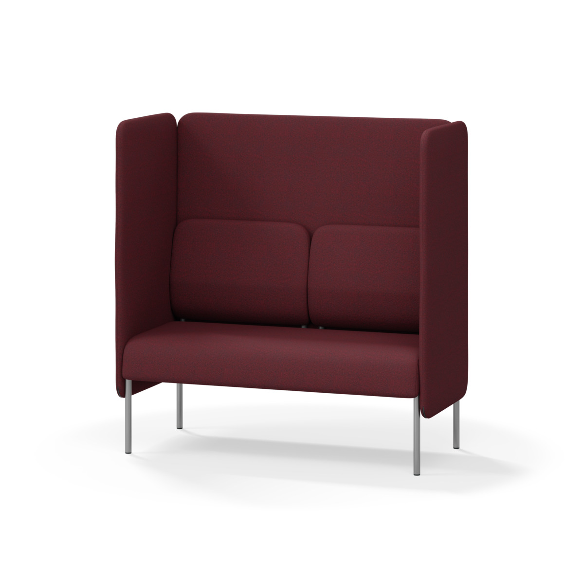 Omslutande fåtölj som tack vare sina höga sidor har en ljuddämpande och avskärmande effekt, vilket gör att den lämpar sig för exempelvis mindre, privata möten eller telefonsamtal. De höga väggarna ger avskildhet från resten av rummet. Trästomme och stoppning i kallskum. Medar i pulverlackad metall. Färgval på rygg. Gavlar och sits alltid grå kulör i det tyg som väljs. Som tillval finns eluttag.