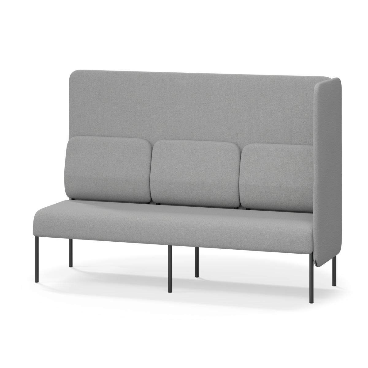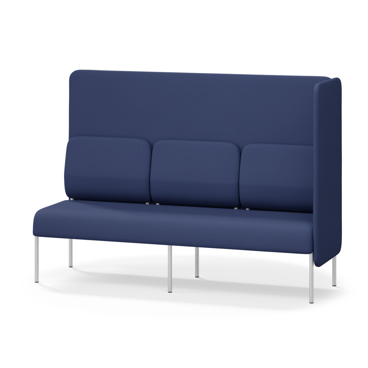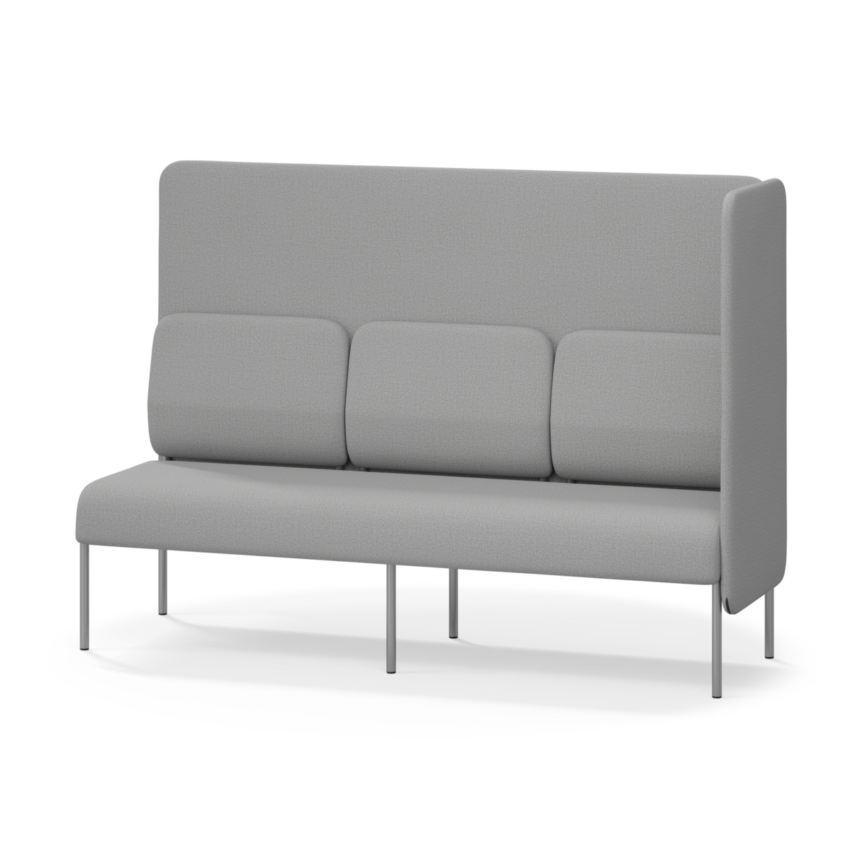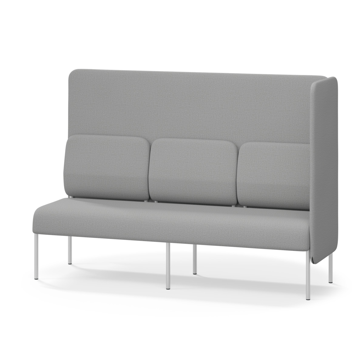3-sitsig soffmodul med ergonomiskt designad ryggkudde och ljudabsorberande panel. Soffsystemet är särskilt utformat för att skapa platsbesparande moduler för studiero, trygghet, gemenskap och inkludering i skolan. Vi har minimerat materialanvändningen och skapat en cirkulär produkt där alla delar kan bytas ut. Soffan har smulgap och högt metallstativ som underlättar vid städning, samt avtagbar klädsel på dynor och paneler. Stomme av plywood med stoppning av kallskum. Stativ i pulverlackad metall med ställfötter som gör att soffan står stadigt även på ojämna underlag. Design: Sigrid Strömgren