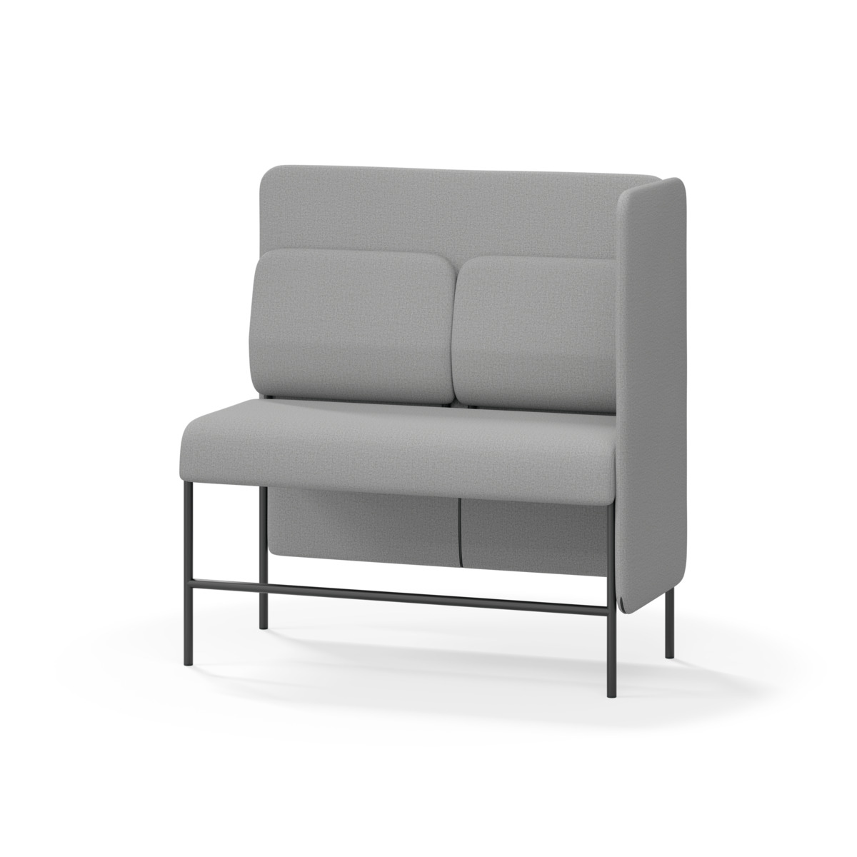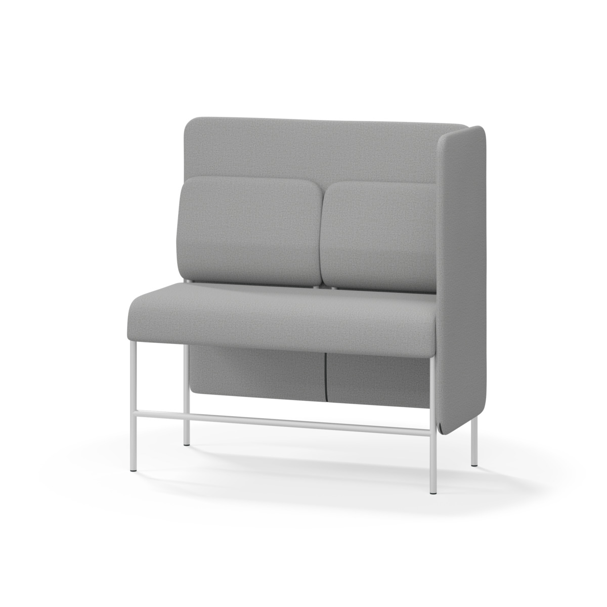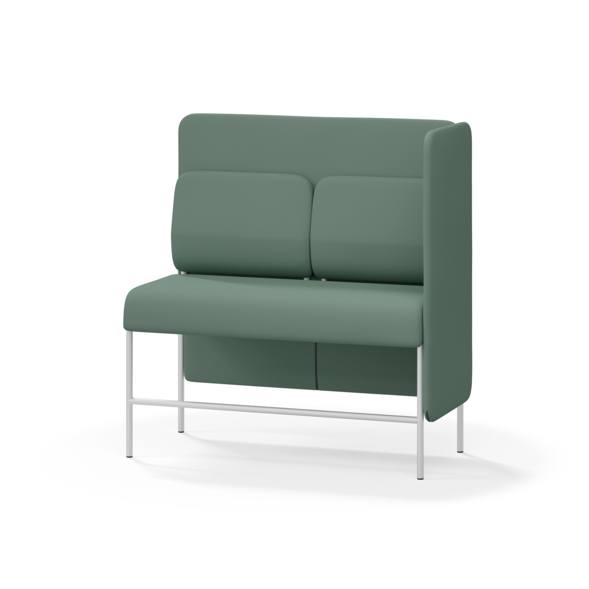 2-sitsig soffmodul med ergonomiskt designad ryggkudde och ljudabsorberande panel. Soffsystemet är särskilt utformat för att skapa platsbesparande moduler för studiero, trygghet, gemenskap och inkludering i skolan. Vi har minimerat materialanvändningen och skapat en cirkulär produkt där alla delar kan bytas ut. Soffan har smulgap och högt metallstativ som underlättar vid städning, samt avtagbar klädsel på dynor och paneler. Stomme av plywood med stoppning av kallskum. Stativ i pulverlackad metall med ställfötter som gör att soffan står stadigt även på ojämna underlag. Design: Sigrid Strömgren