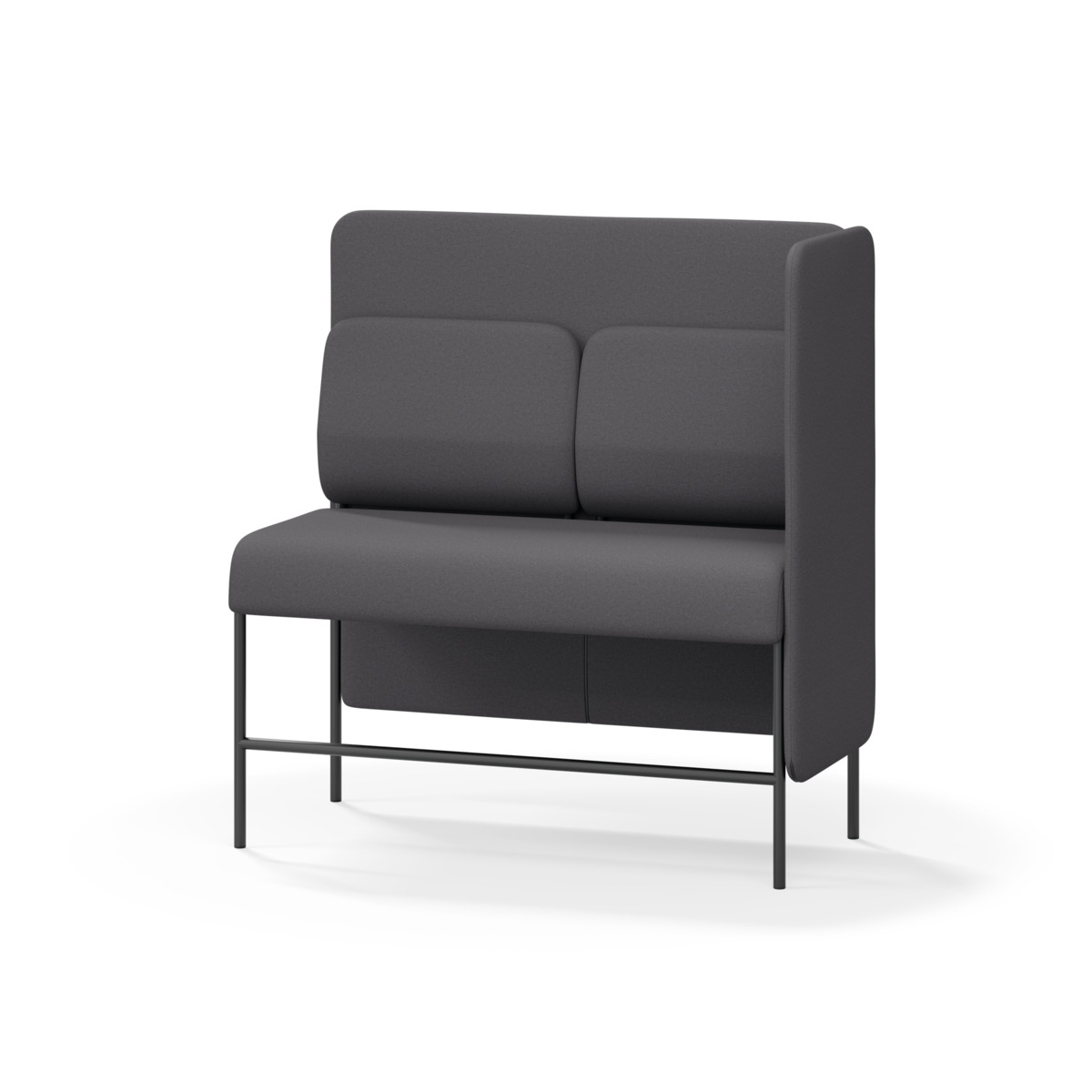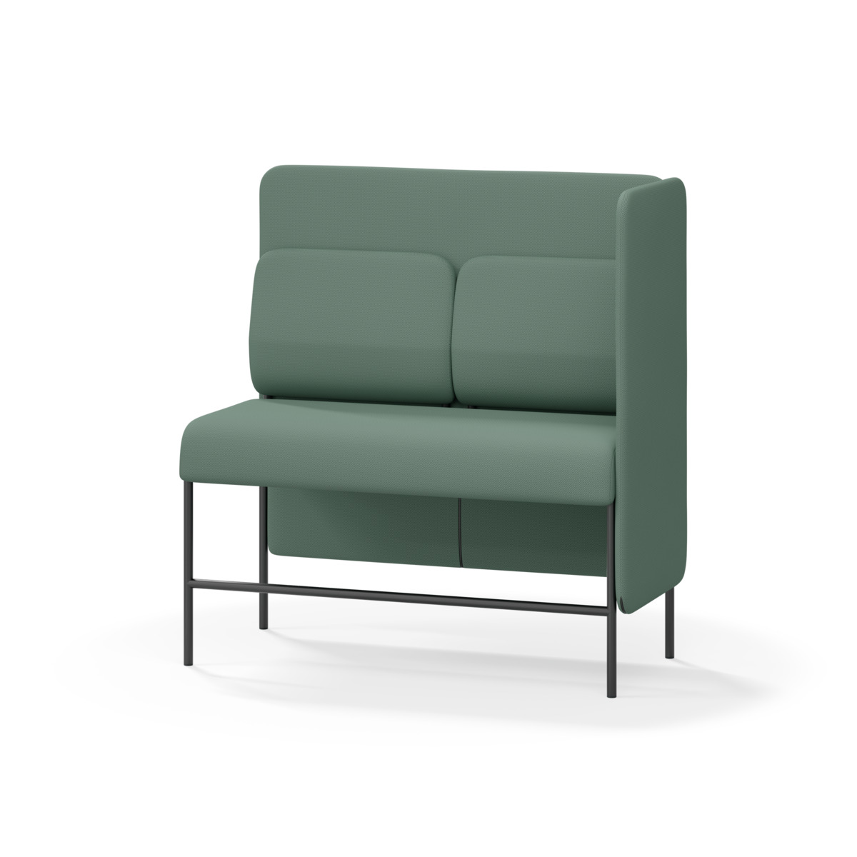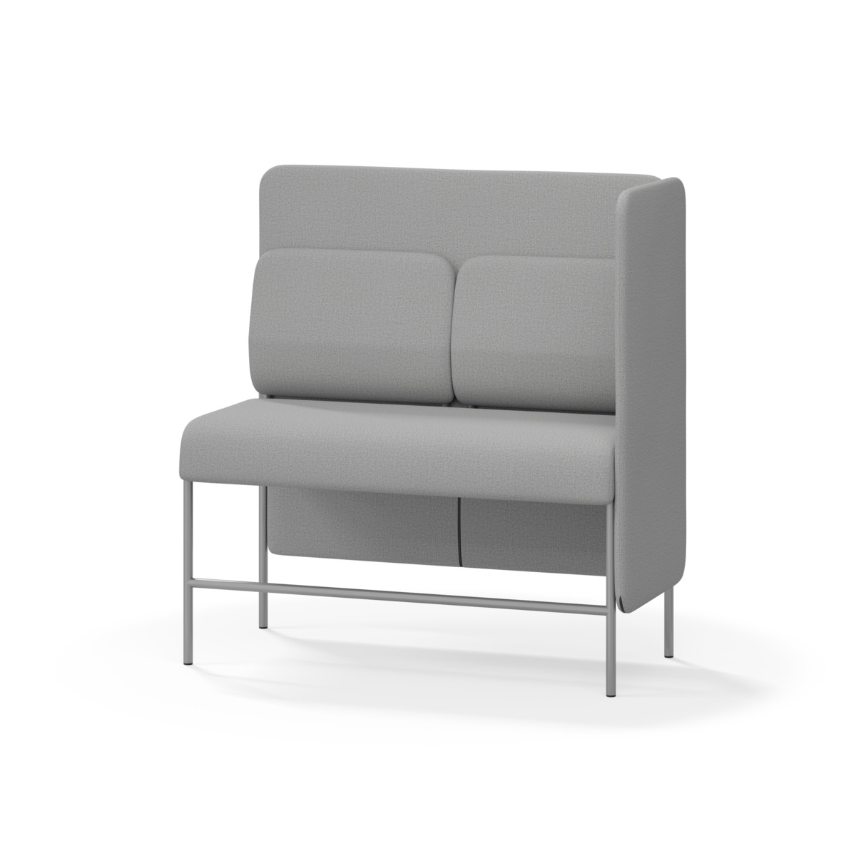 2-sitsig soffmodul med ergonomiskt designad ryggkudde och ljudabsorberande panel. Soffsystemet är särskilt utformat för att skapa platsbesparande moduler för studiero, trygghet, gemenskap och inkludering i skolan. Vi har minimerat materialanvändningen och skapat en cirkulär produkt där alla delar kan bytas ut. Soffan har smulgap och högt metallstativ som underlättar vid städning, samt avtagbar klädsel på dynor och paneler. Stomme av plywood med stoppning av kallskum. Stativ i pulverlackad metall med ställfötter som gör att soffan står stadigt även på ojämna underlag. Design: Sigrid Strömgren