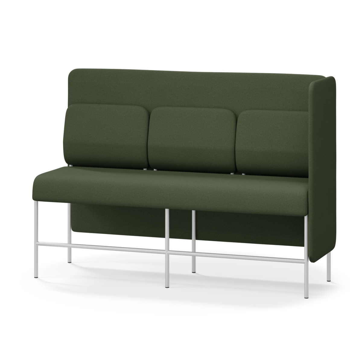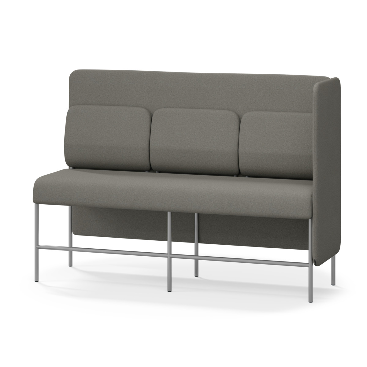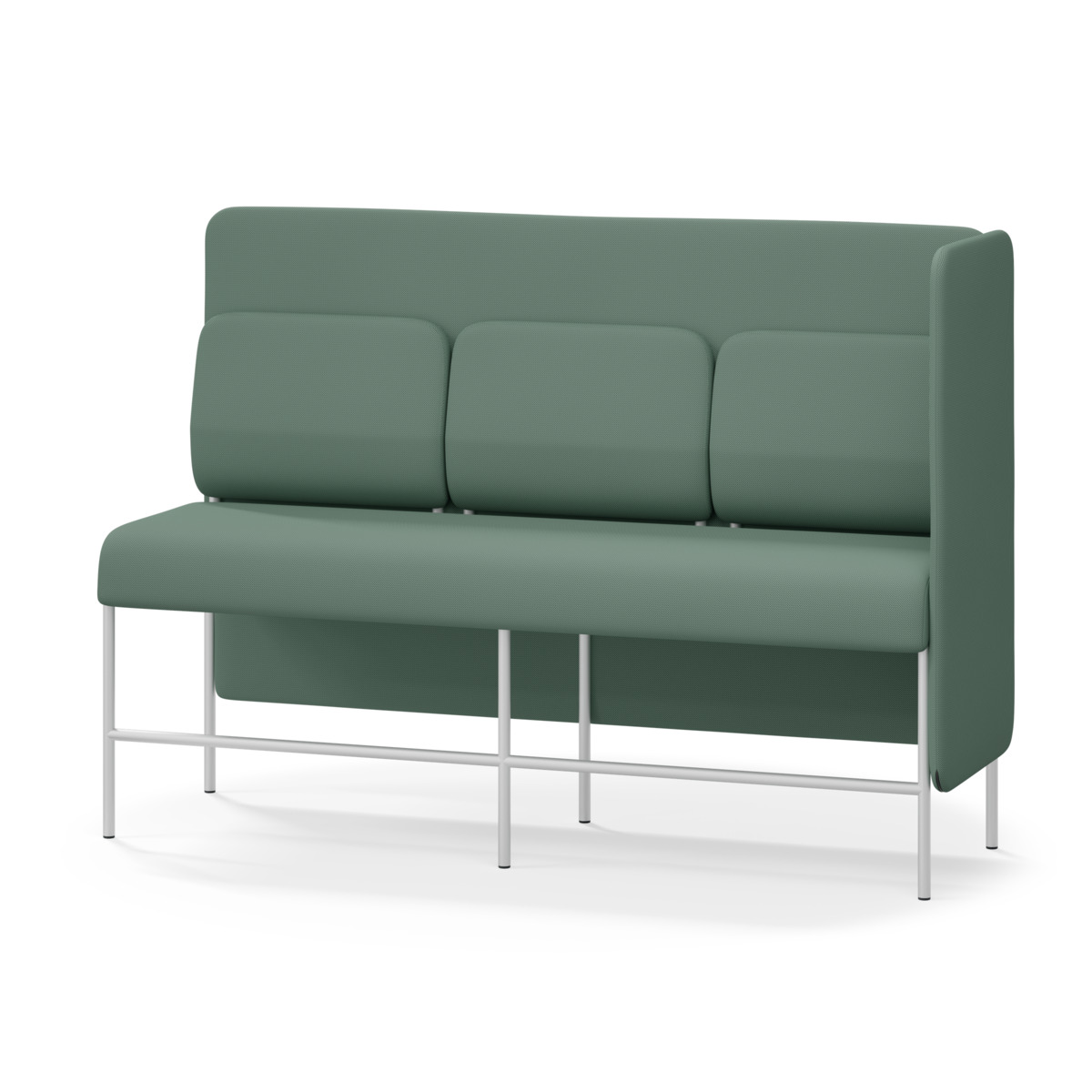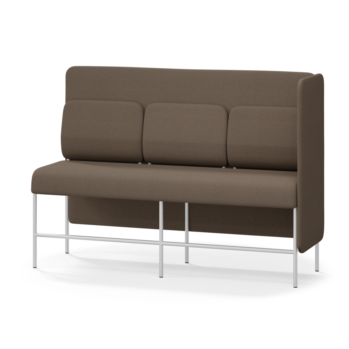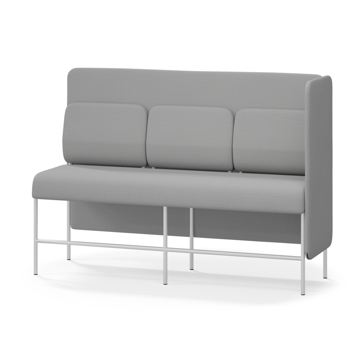 3-sitsig soffmodul med ergonomiskt designad ryggkudde och ljudabsorberande panel. Soffsystemet är särskilt utformat för att skapa platsbesparande moduler för studiero, trygghet, gemenskap och inkludering i skolan. Vi har minimerat materialanvändningen och skapat en cirkulär produkt där alla delar kan bytas ut. Soffan har smulgap och högt metallstativ som underlättar vid städning, samt avtagbar klädsel på dynor och paneler. Stomme av plywood med stoppning av kallskum. Stativ i pulverlackad metall med ställfötter som gör att soffan står stadigt även på ojämna underlag. Design: Sigrid Strömgren