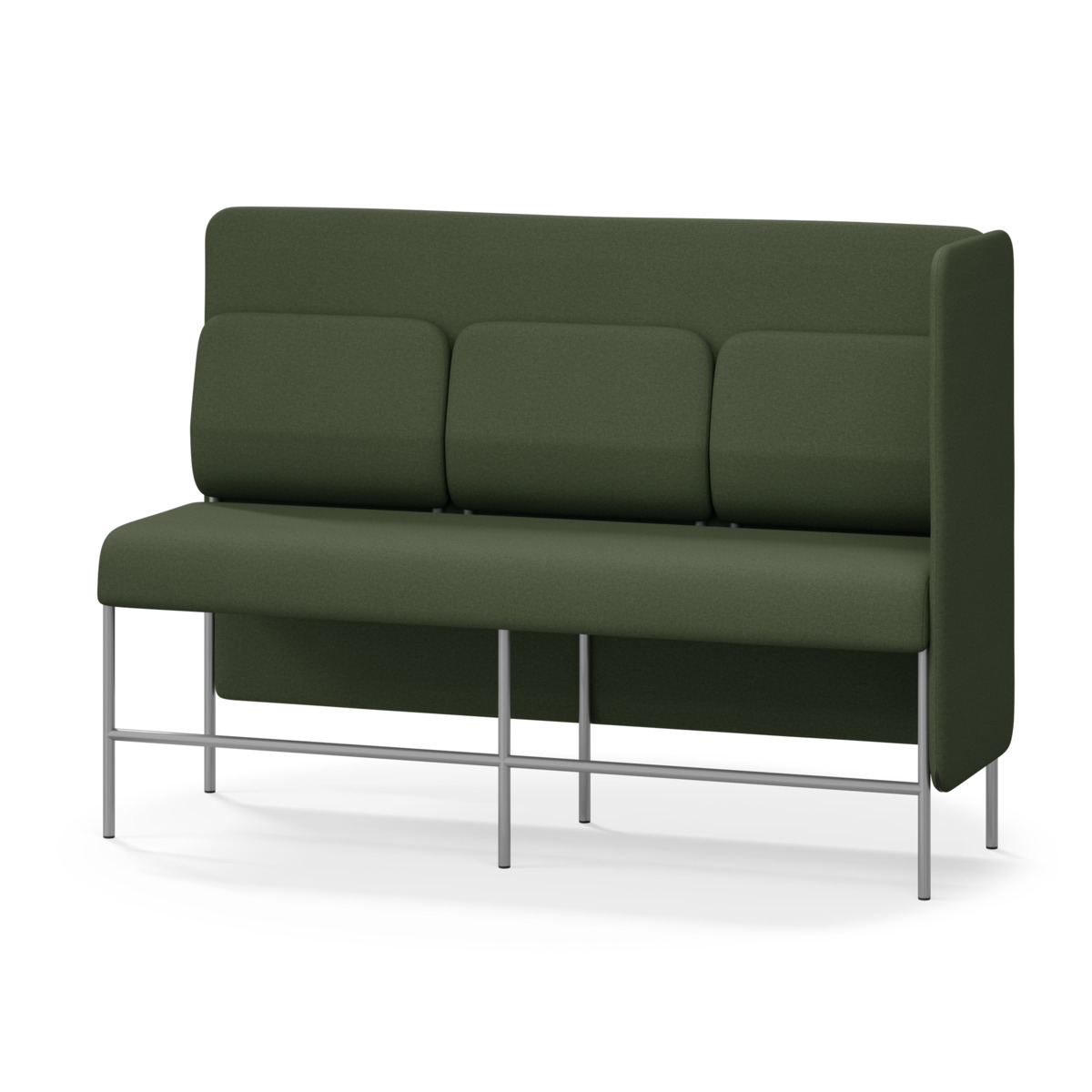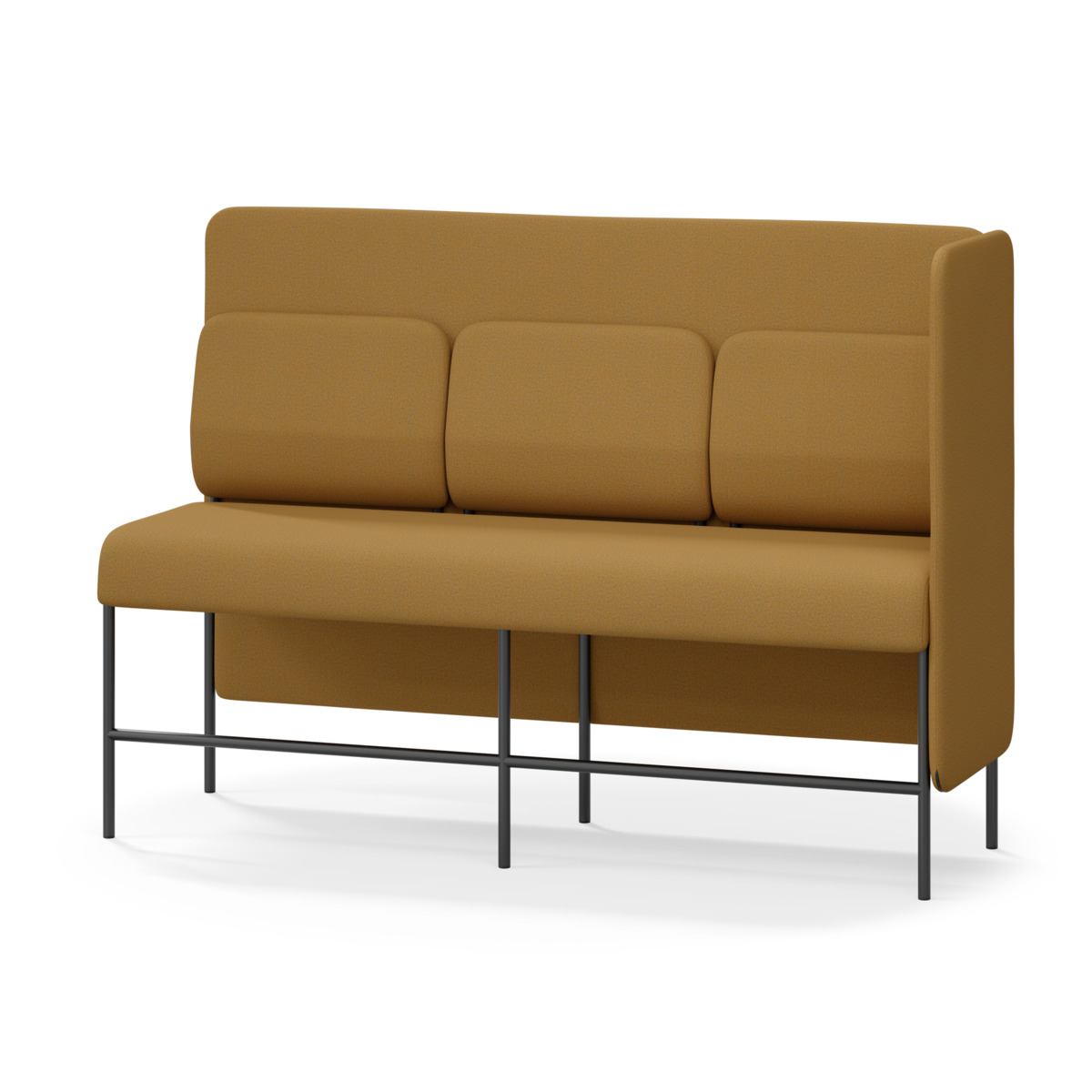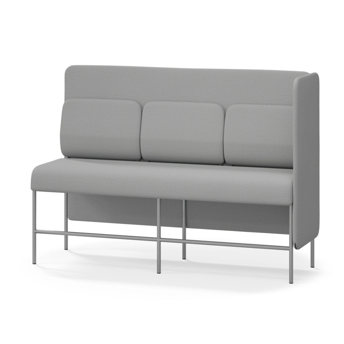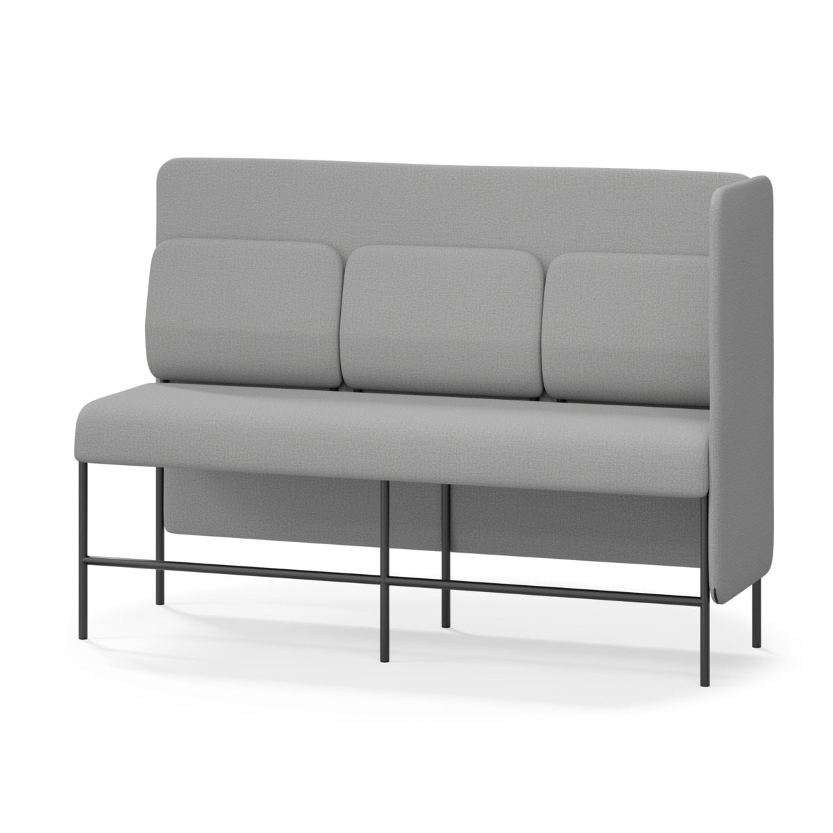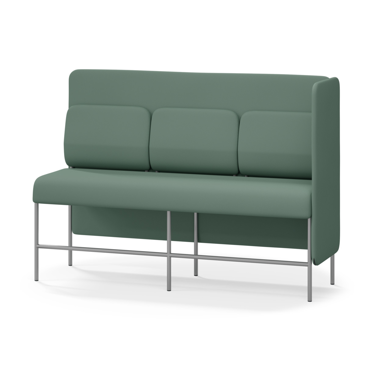 3-sitsig soffmodul med ergonomiskt designad ryggkudde och ljudabsorberande panel. Soffsystemet är särskilt utformat för att skapa platsbesparande moduler för studiero, trygghet, gemenskap och inkludering i skolan. Vi har minimerat materialanvändningen och skapat en cirkulär produkt där alla delar kan bytas ut. Soffan har smulgap och högt metallstativ som underlättar vid städning, samt avtagbar klädsel på dynor och paneler. Stomme av plywood med stoppning av kallskum. Stativ i pulverlackad metall med ställfötter som gör att soffan står stadigt även på ojämna underlag. Design: Sigrid Strömgren