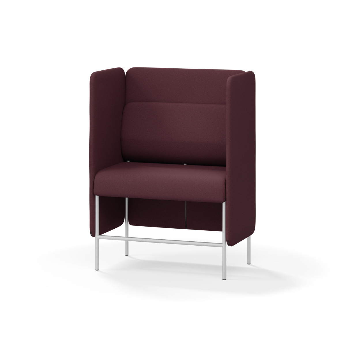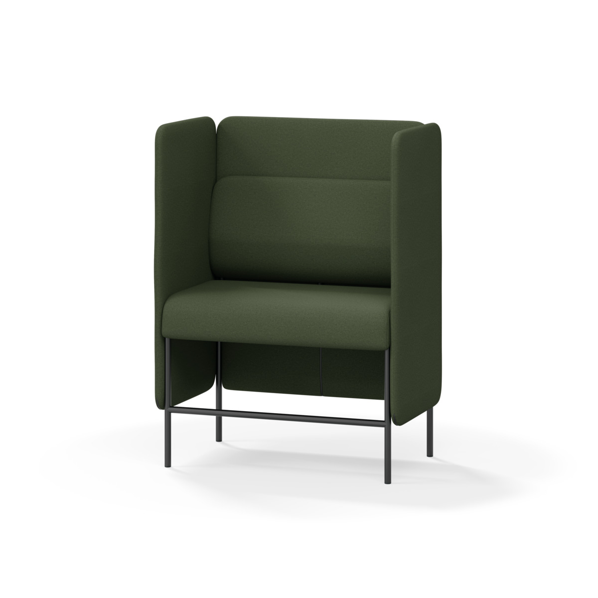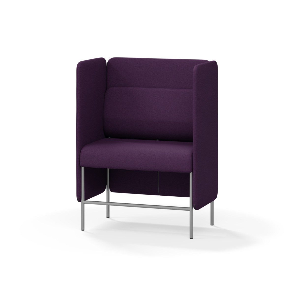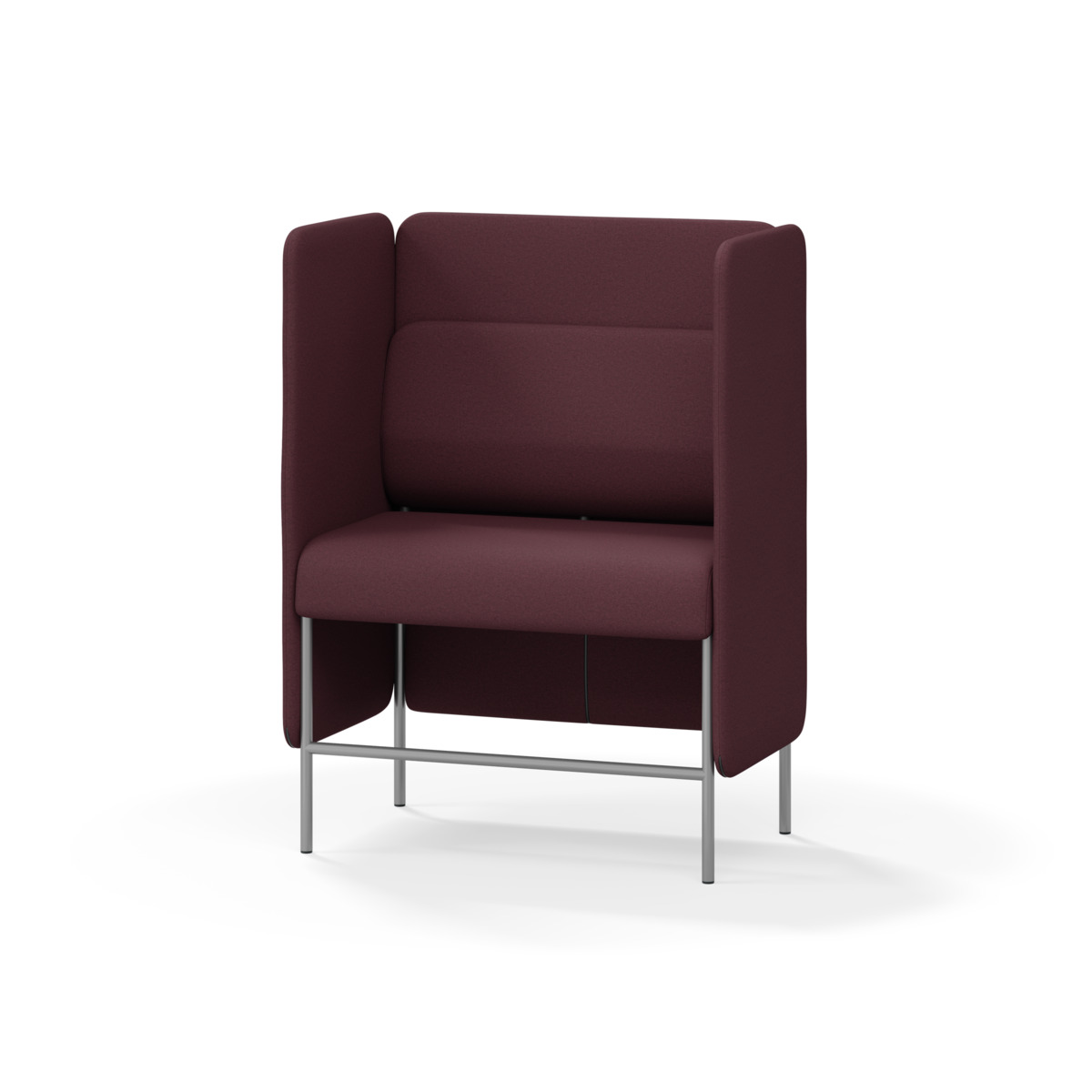 1-sitsig soffmodul med ergonomiskt designad ryggkudde och ljudabsorberande panel. Soffsystemet är särskilt utformat för att skapa platsbesparande moduler för studiero, trygghet, gemenskap och inkludering i skolan. Vi har minimerat materialanvändningen och skapat en cirkulär produkt där alla delar kan bytas ut. Soffan har smulgap och högt metallstativ som underlättar vid städning, samt avtagbar klädsel på dynor och paneler. Stomme av plywood med stoppning av kallskum. Stativ i pulverlackad metall med ställfötter som gör att soffan står stadigt även på ojämna underlag. Design: Sigrid Strömgren