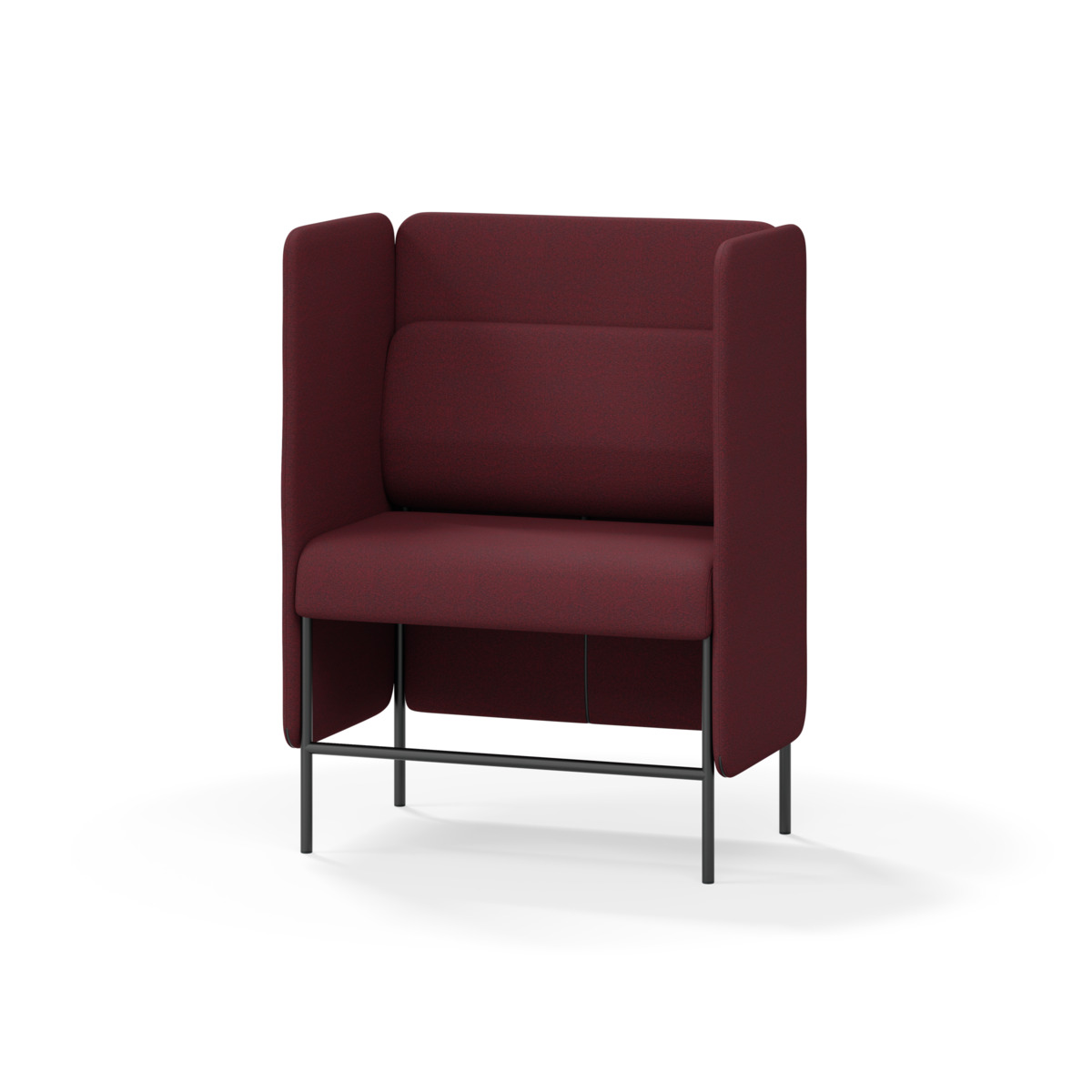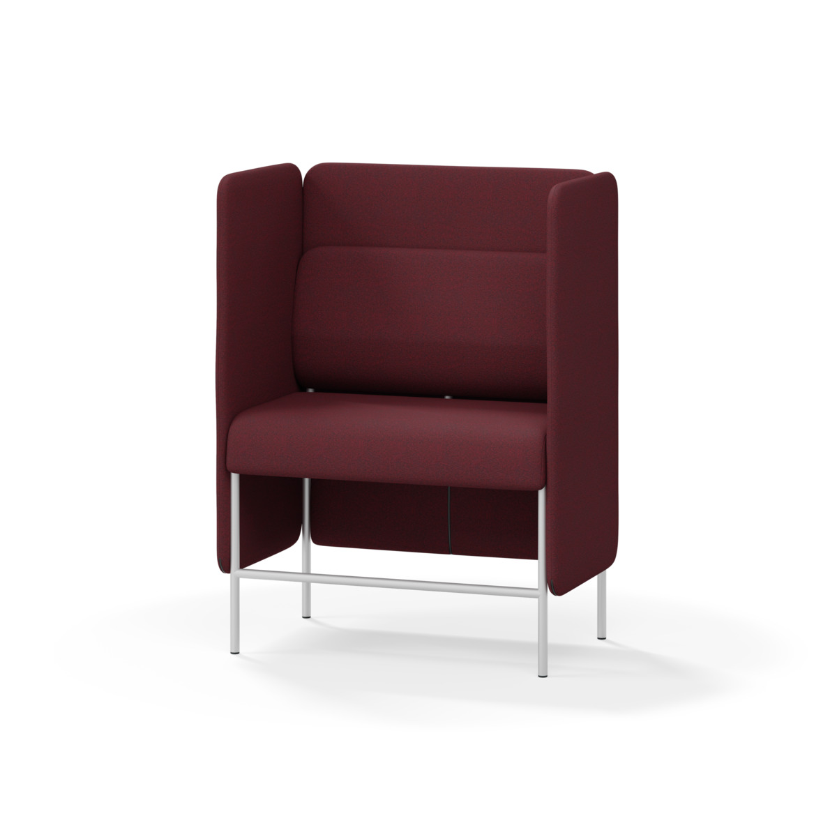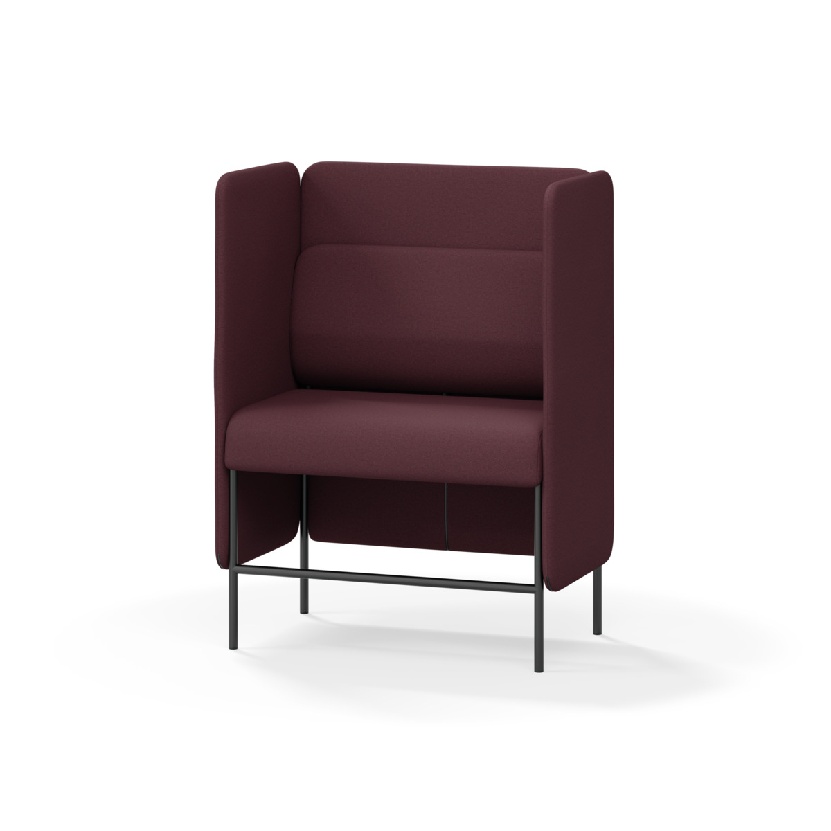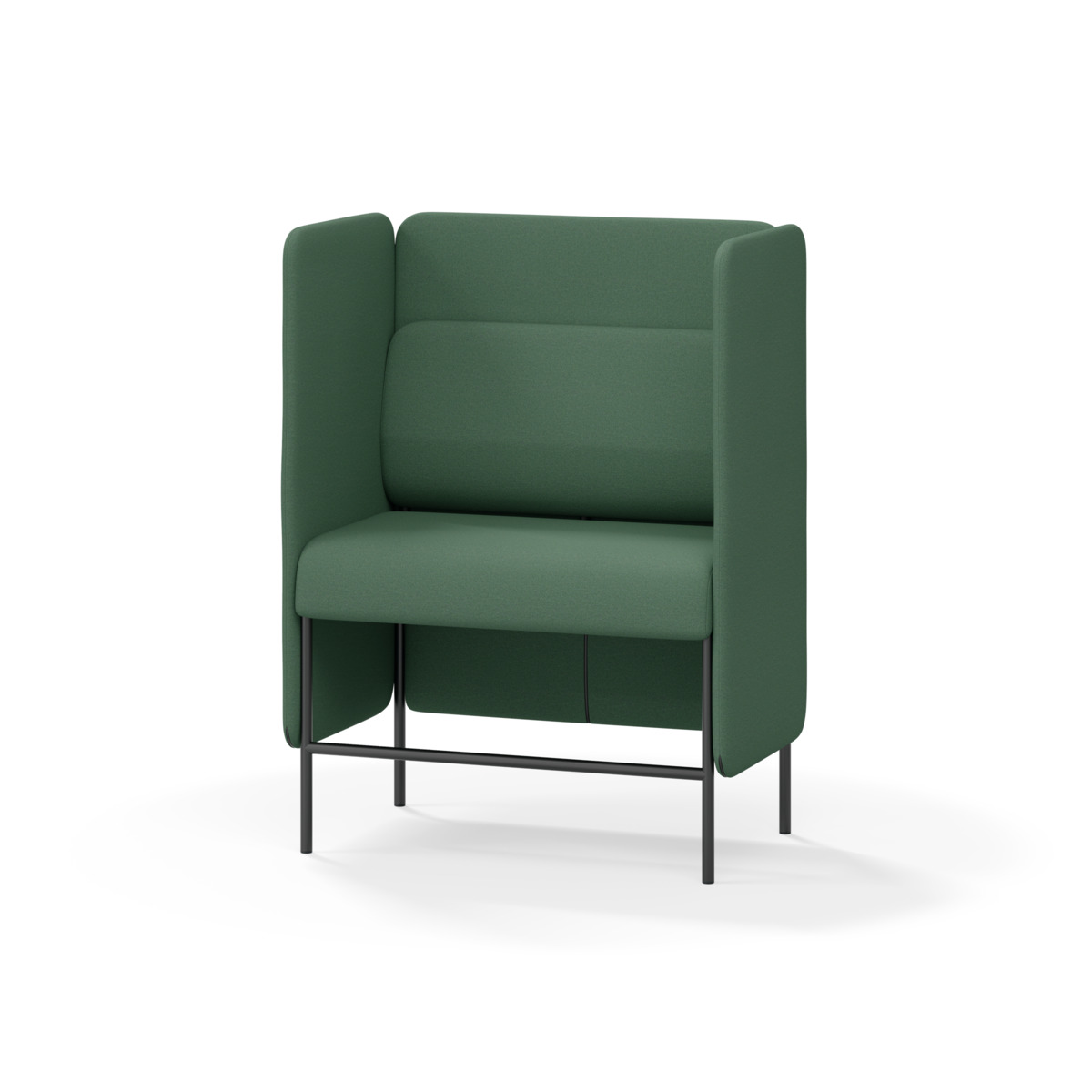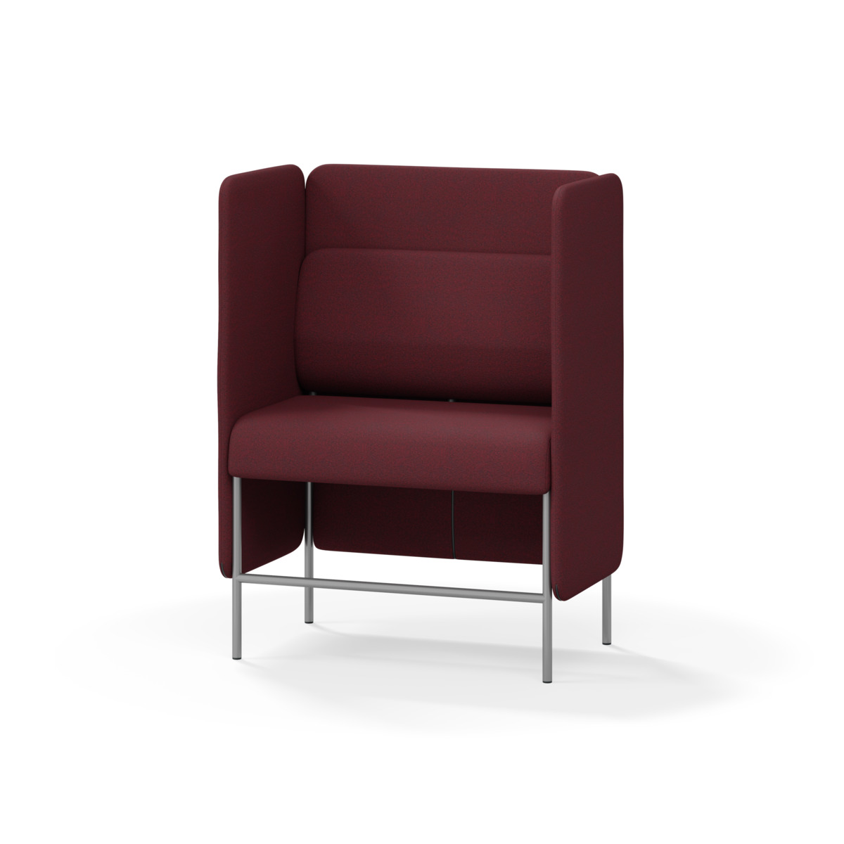 1-sitsig soffmodul med ergonomiskt designad ryggkudde och ljudabsorberande panel. Soffsystemet är särskilt utformat för att skapa platsbesparande moduler för studiero, trygghet, gemenskap och inkludering i skolan. Vi har minimerat materialanvändningen och skapat en cirkulär produkt där alla delar kan bytas ut. Soffan har smulgap och högt metallstativ som underlättar vid städning, samt avtagbar klädsel på dynor och paneler. Stomme av plywood med stoppning av kallskum. Stativ i pulverlackad metall med ställfötter som gör att soffan står stadigt även på ojämna underlag. Design: Sigrid Strömgren