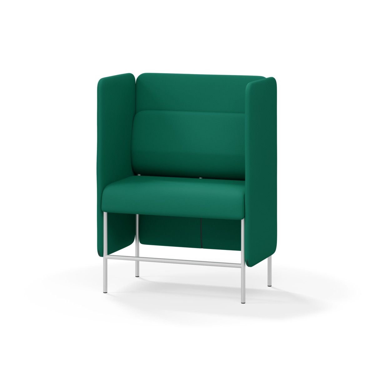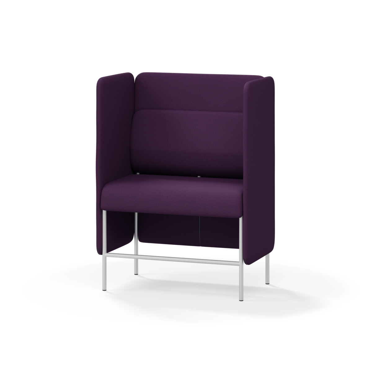 2-sitsig soffmodul med ergonomiskt designad ryggkudde och ljudabsorberande panel. Soffsystemet är särskilt utformat för att skapa platsbesparande moduler för studiero, trygghet, gemenskap och inkludering i skolan. Vi har minimerat materialanvändningen och skapat en cirkulär produkt där alla delar kan bytas ut. Soffan har smulgap och högt metallstativ som underlättar vid städning, samt avtagbar klädsel på dynor och paneler. Stomme av plywood med stoppning av kallskum. Stativ i pulverlackad metall med ställfötter som gör att soffan står stadigt även på ojämna underlag. Design: Sigrid Strömgren