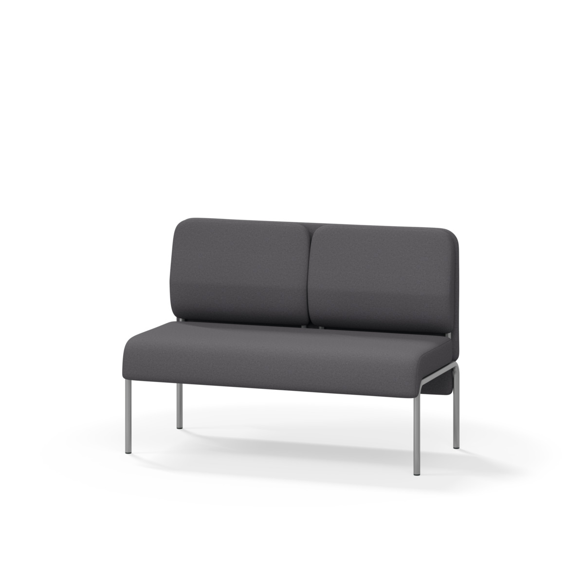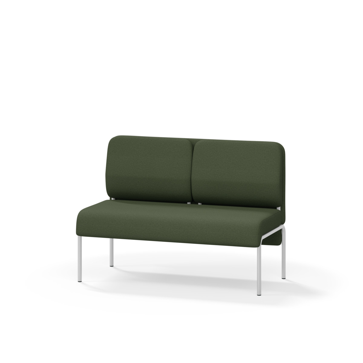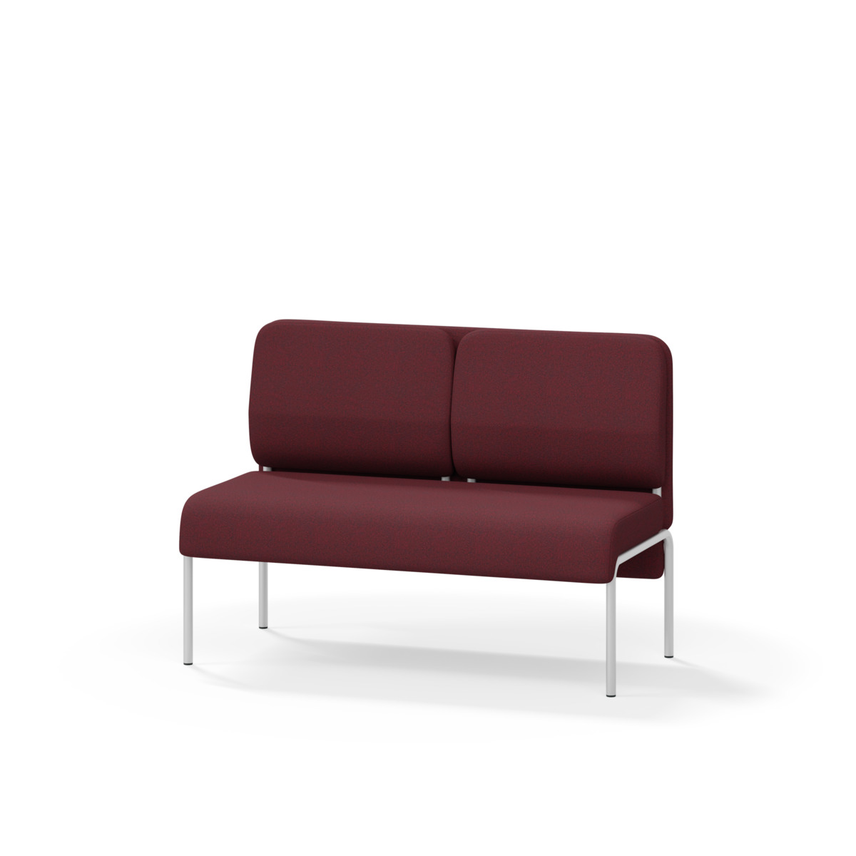 2-sitsig soffmodul med ergonomiskt designad ryggkudde och ljudabsorberande panel. Soffsystemet är särskilt utformat för att skapa platsbesparande moduler för studiero, trygghet, gemenskap och inkludering i skolan. Vi har minimerat materialanvändningen och skapat en cirkulär produkt där alla delar kan bytas ut. Soffan har smulgap och högt metallstativ som underlättar vid städning, samt avtagbar klädsel på dynor och paneler. Stomme av plywood med stoppning av kallskum. Stativ i pulverlackad metall med ställfötter som gör att soffan står stadigt även på ojämna underlag. Design: Sigrid Strömgren