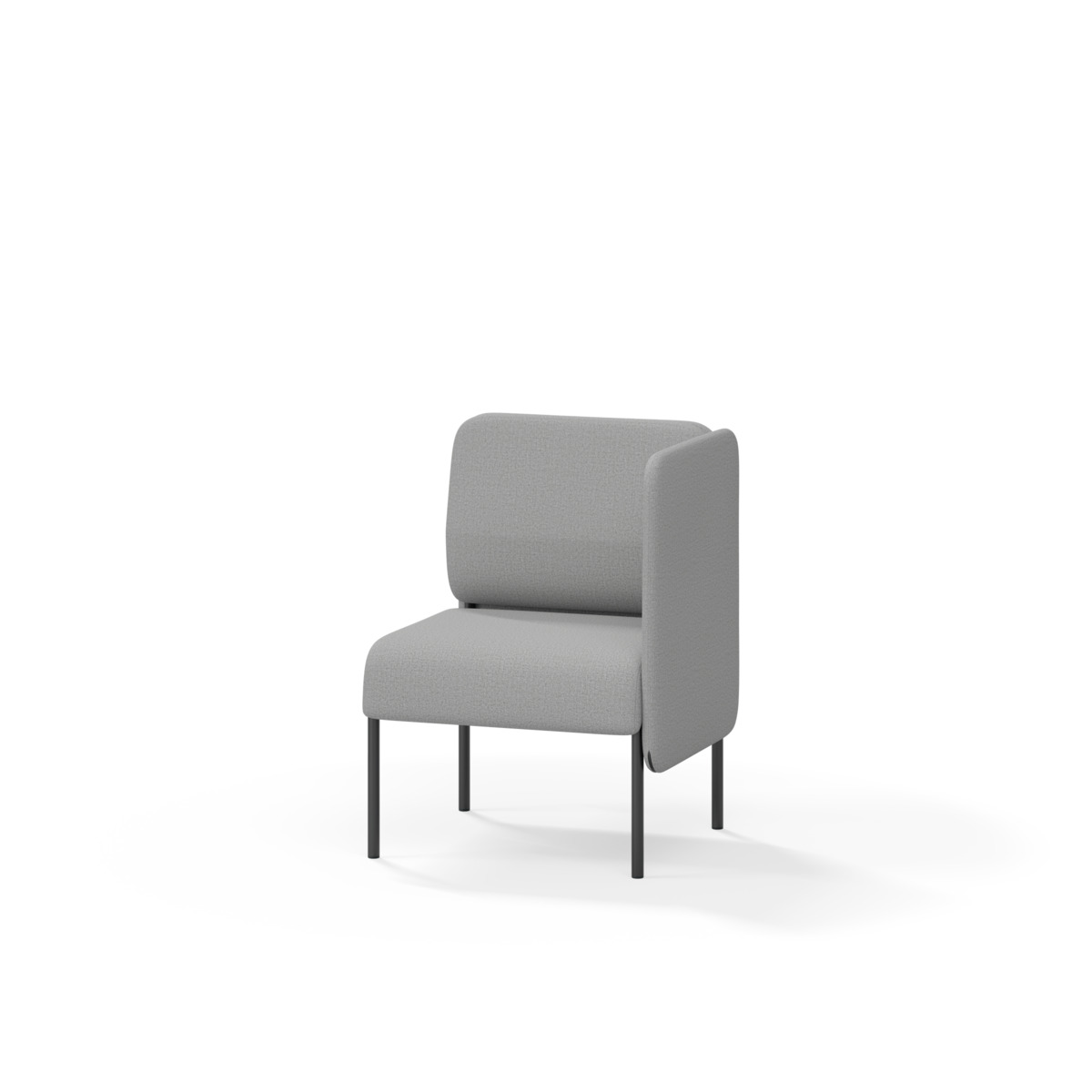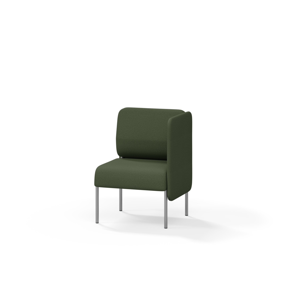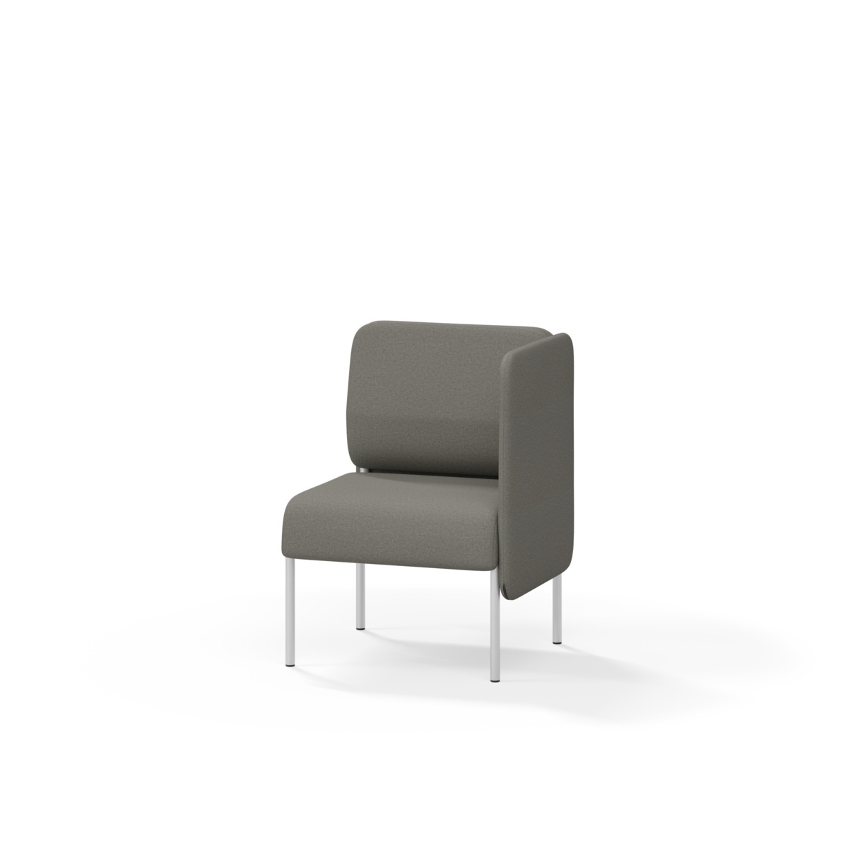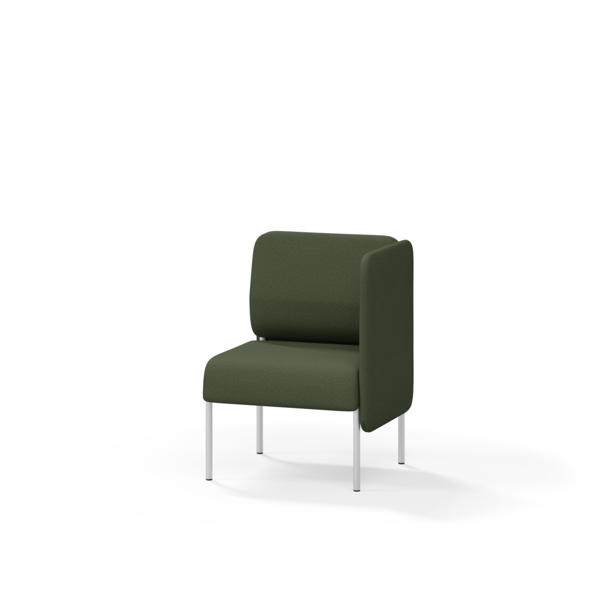 1-sitsig soffmodul med ergonomiskt designad ryggkudde och ljudabsorberande panel. Soffsystemet är särskilt utformat för att skapa platsbesparande moduler för studiero, trygghet, gemenskap och inkludering i skolan. Vi har minimerat materialanvändningen och skapat en cirkulär produkt där alla delar kan bytas ut. Soffan har smulgap och högt metallstativ som underlättar vid städning, samt avtagbar klädsel på dynor och paneler. Stomme av plywood med stoppning av kallskum. Stativ i pulverlackad metall med ställfötter som gör att soffan står stadigt även på ojämna underlag. Design: Sigrid Strömgren