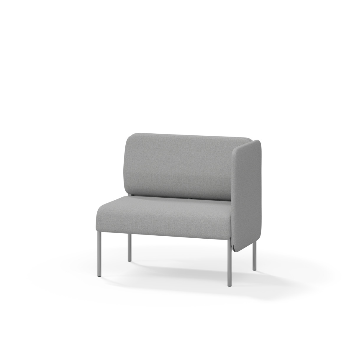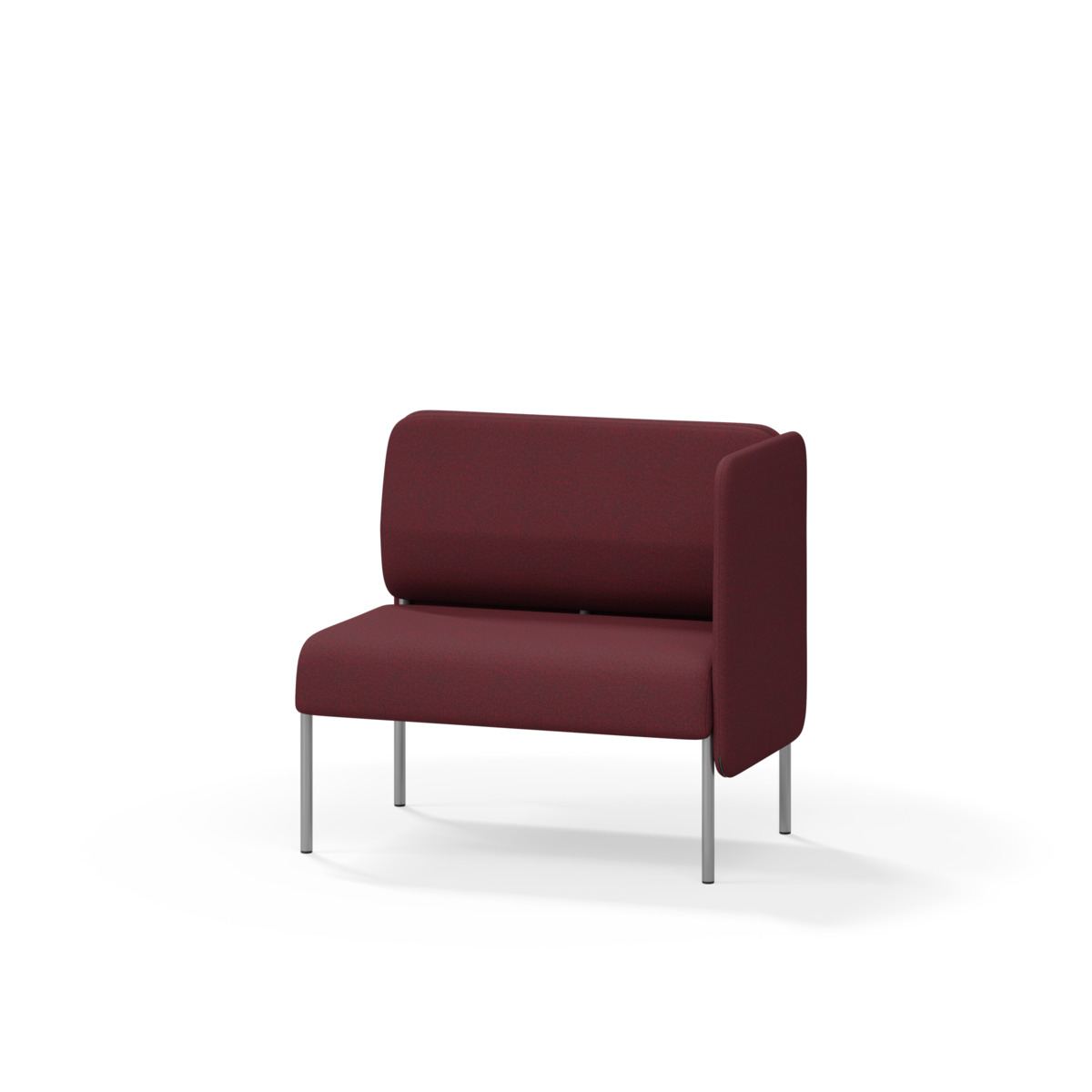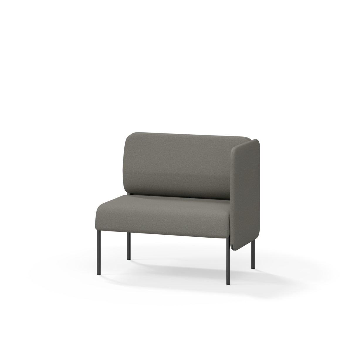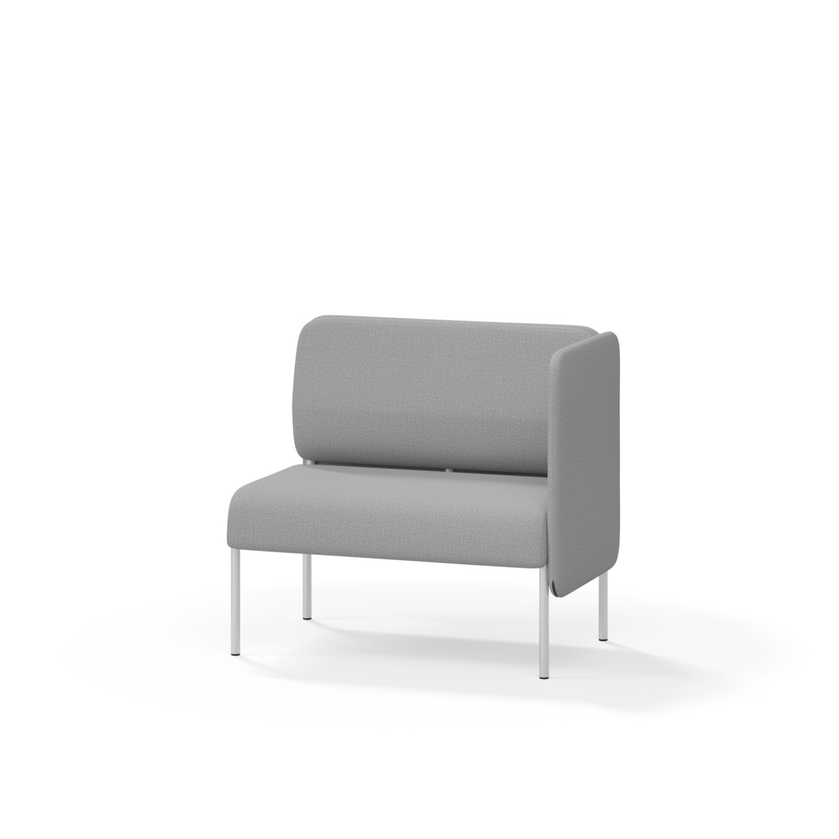 1-sitsig soffmodul med ergonomiskt designad ryggkudde och ljudabsorberande panel. Soffsystemet är särskilt utformat för att skapa platsbesparande moduler för studiero, trygghet, gemenskap och inkludering i skolan. Vi har minimerat materialanvändningen och skapat en cirkulär produkt där alla delar kan bytas ut. Soffan har smulgap och högt metallstativ som underlättar vid städning, samt avtagbar klädsel på dynor och paneler. Stomme av plywood med stoppning av kallskum. Stativ i pulverlackad metall med ställfötter som gör att soffan står stadigt även på ojämna underlag. Design: Sigrid Strömgren