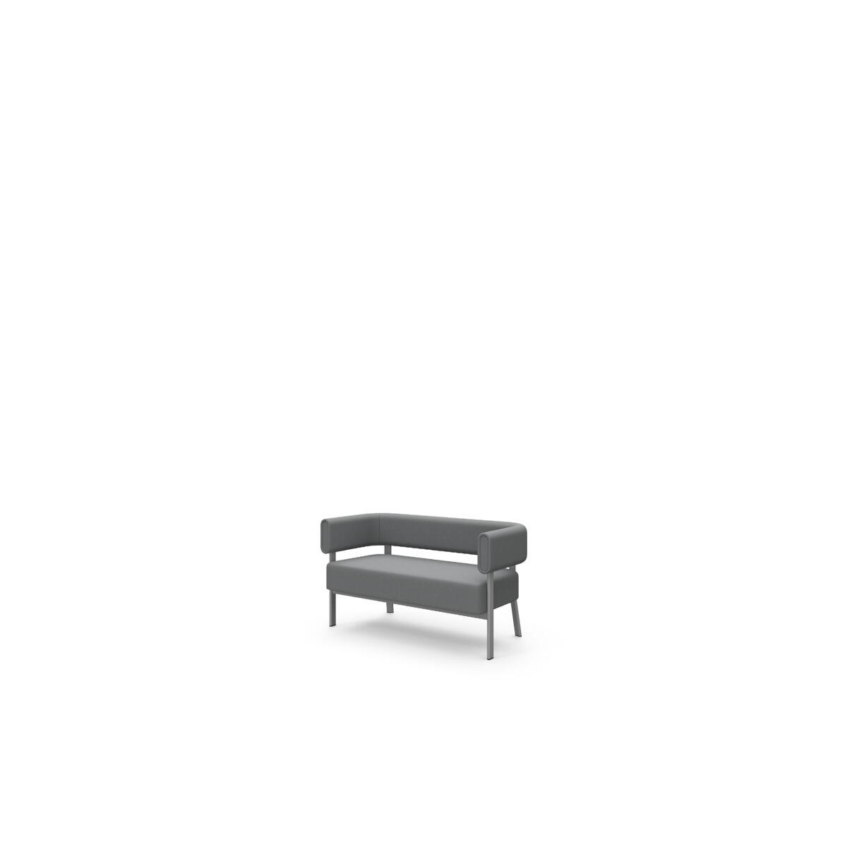 Den höga ryggen och de höga gavlarna skärmar av och dämpar ljud effektivt. Trästomme och stoppning i kallskum. Ben i pulverlackad metall. Som tillbehör finns sidobord som enkelt monteras i ramen.