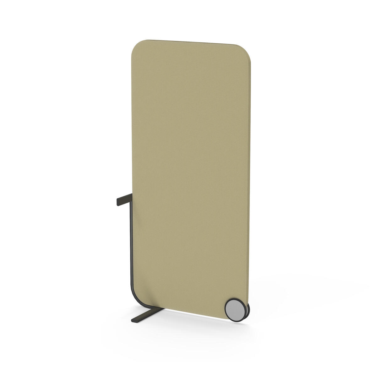 Sittpuffen är försedd med fast sidobord. Bordsskiva i laminat. Stativ i pulverlackad metall. Sittpuffen har trästomme och stoppning i kallskum. Försedd med glidfötter.