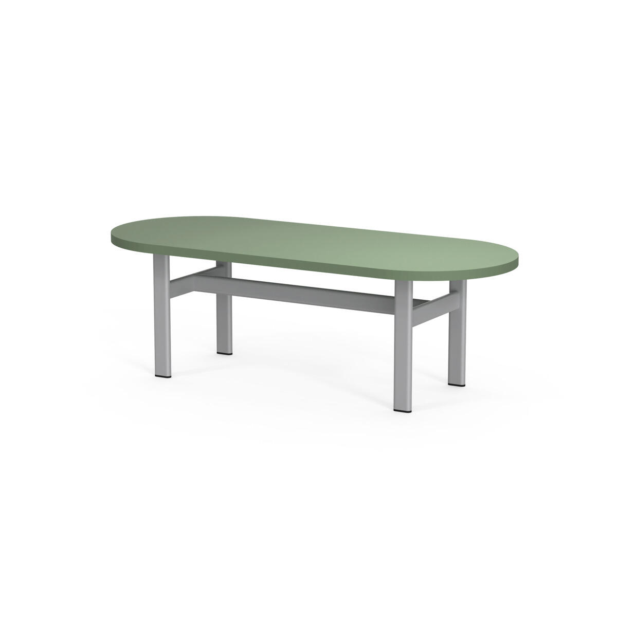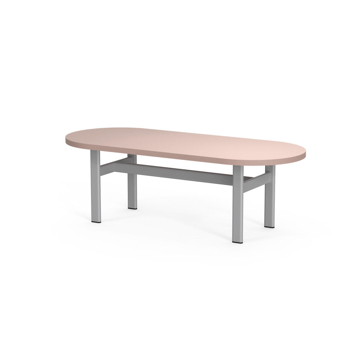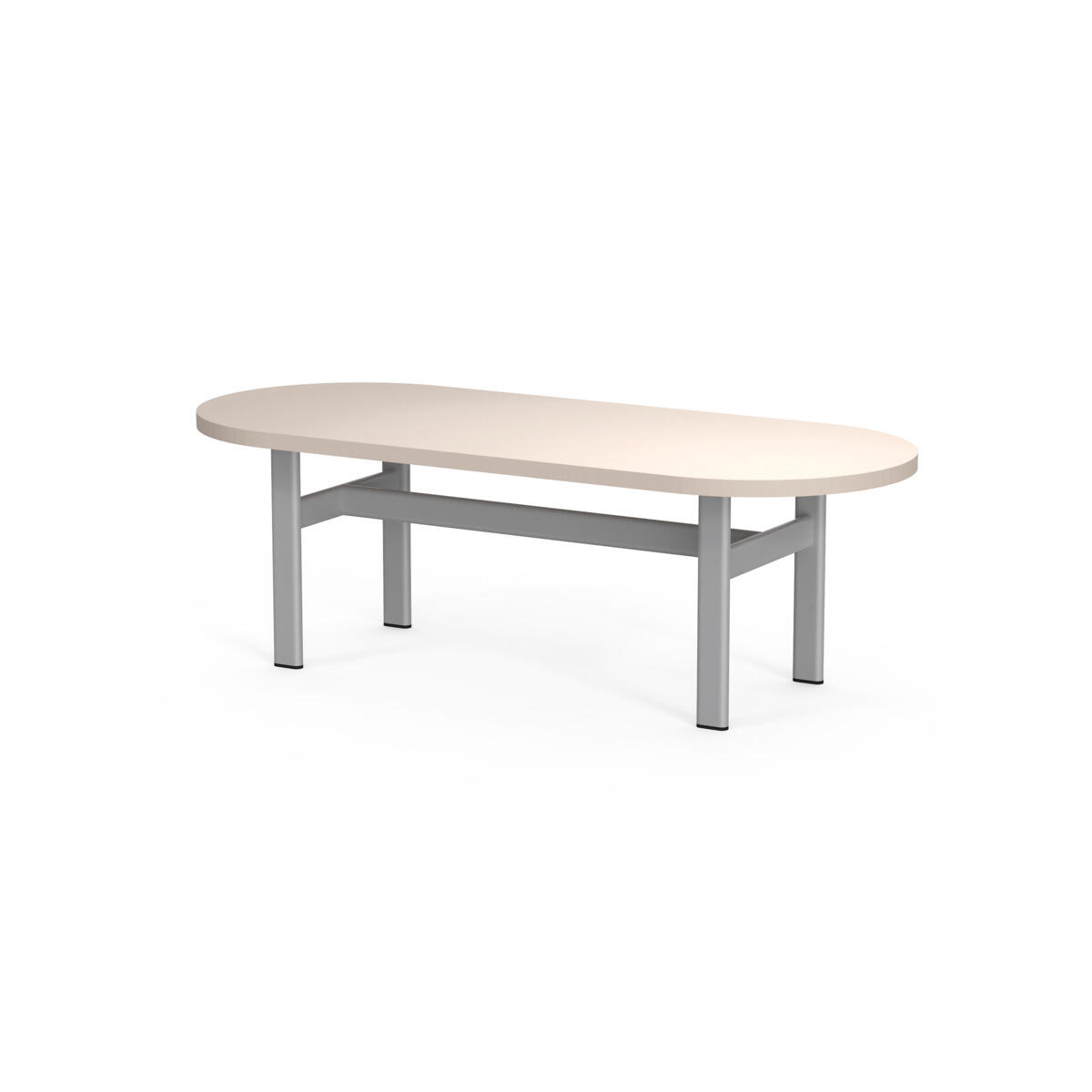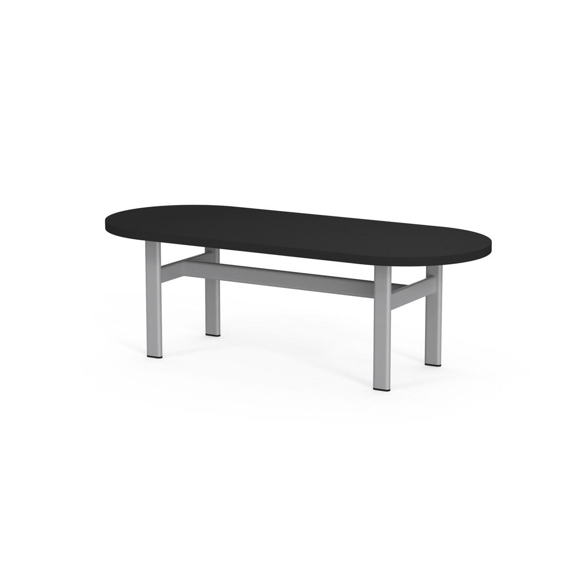 Sittpuffen är försedd med fast sidobord. Bordsskiva i laminat. Stativ i pulverlackad metall. Sittpuffen har trästomme och stoppning i kallskum. Försedd med glidfötter.