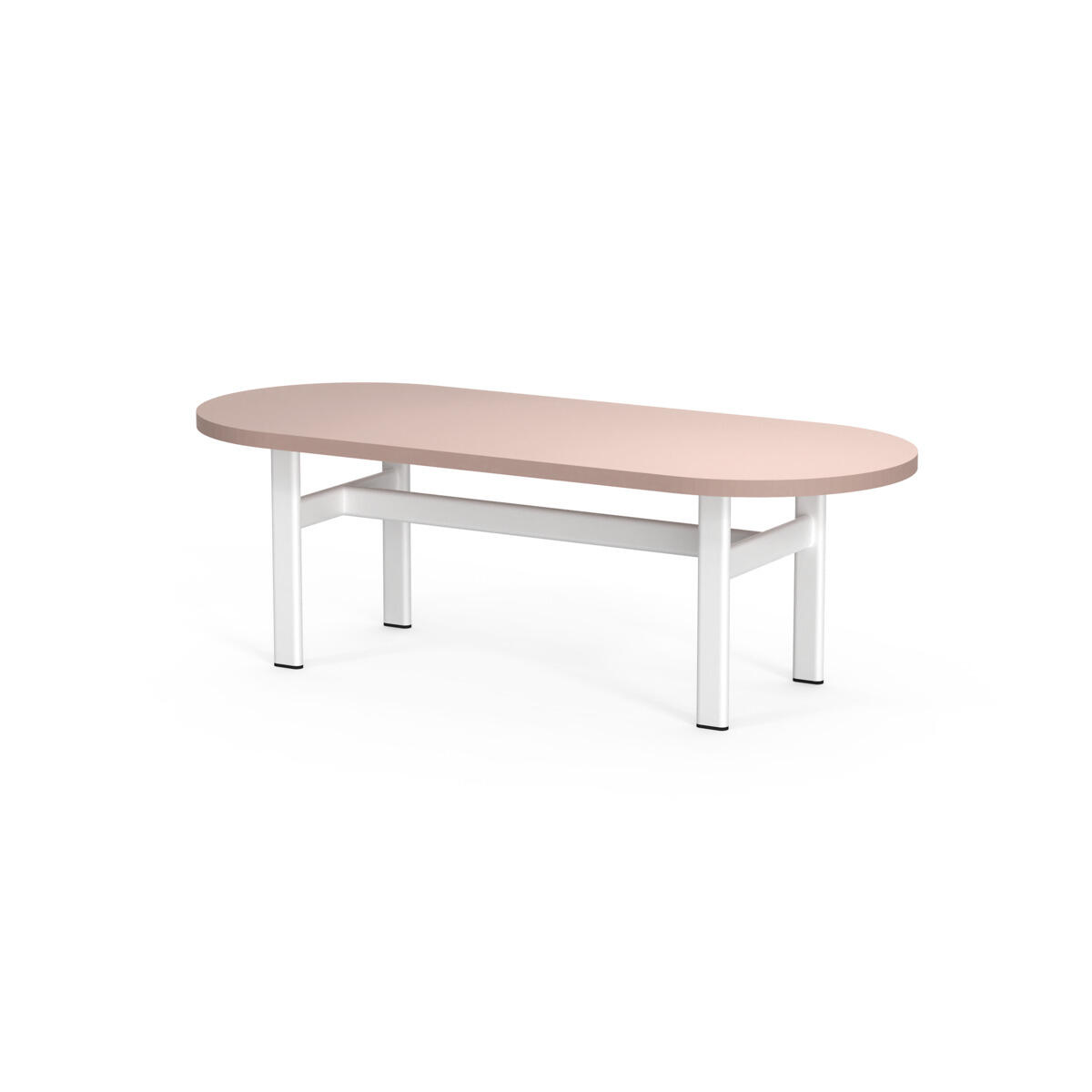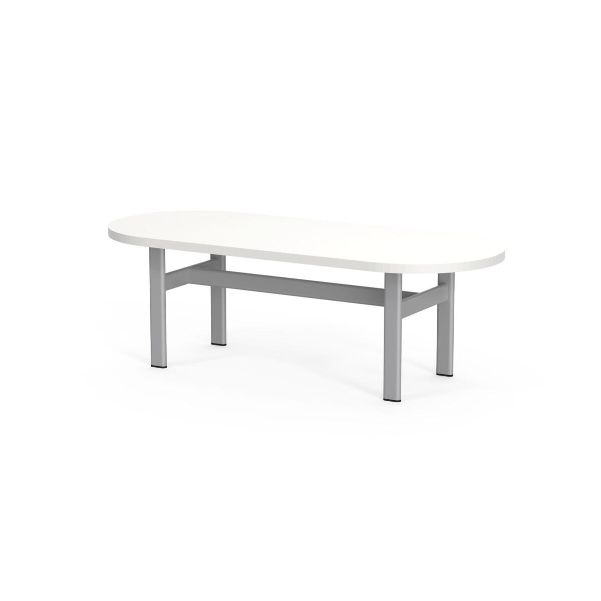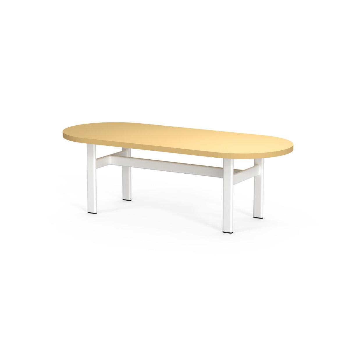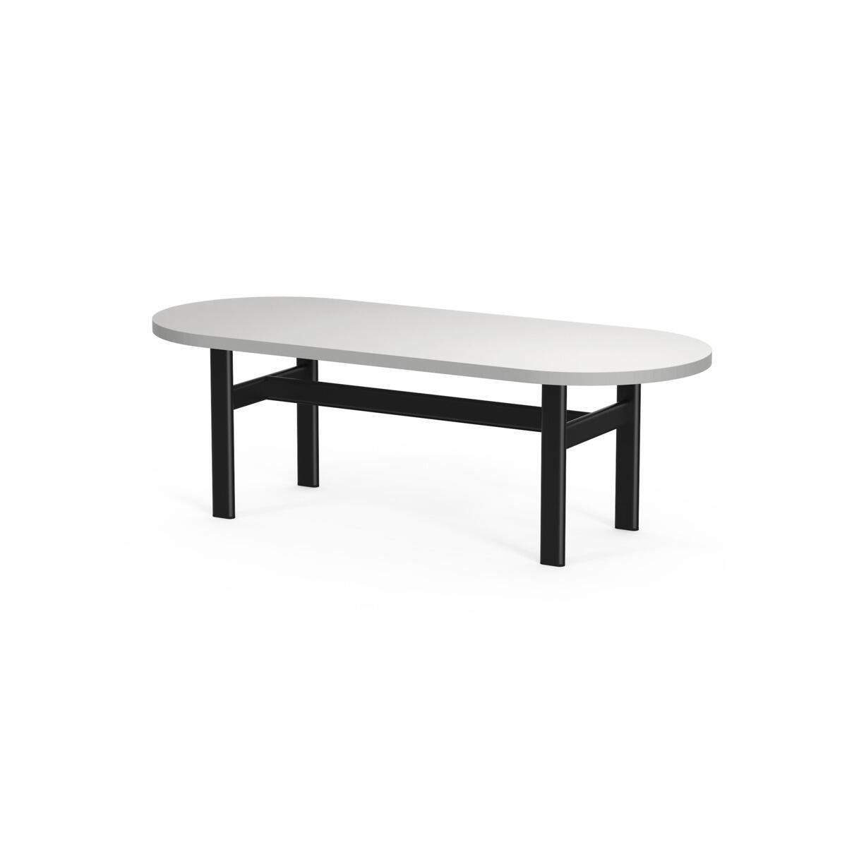 Sittpuffen är försedd med fast sidobord. Bordsskiva i laminat. Stativ i pulverlackad metall. Sittpuffen har trästomme och stoppning i kallskum. Försedd med glidfötter.