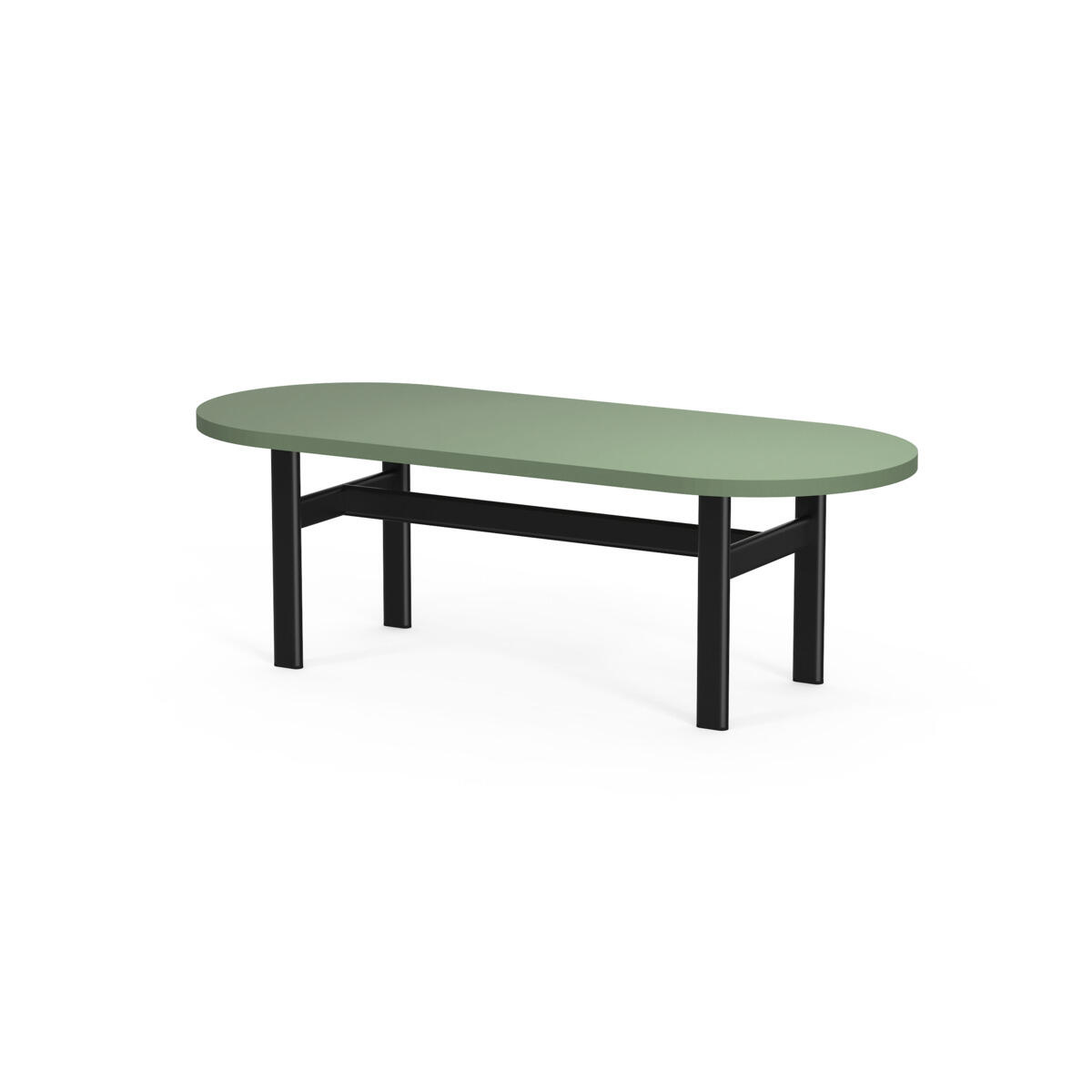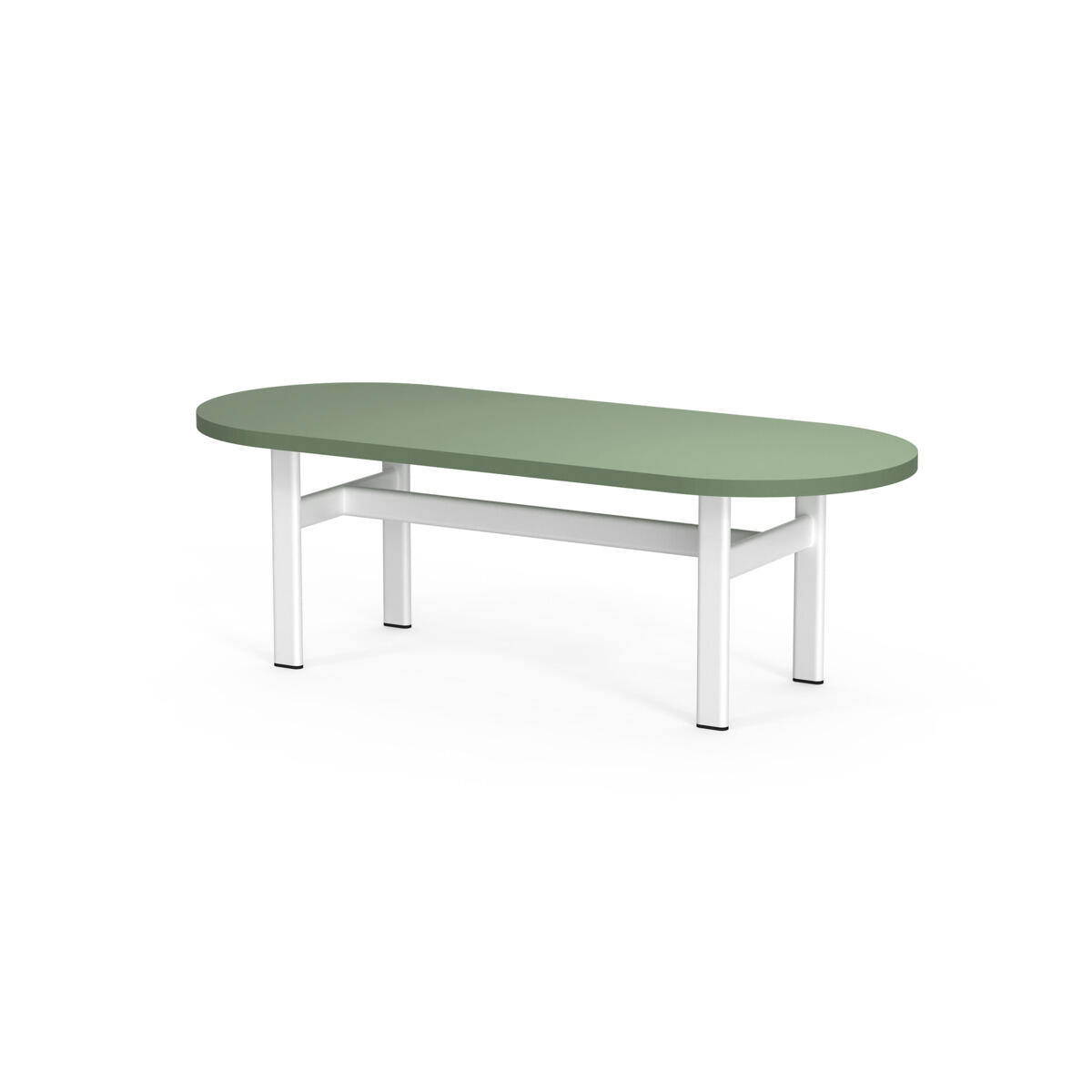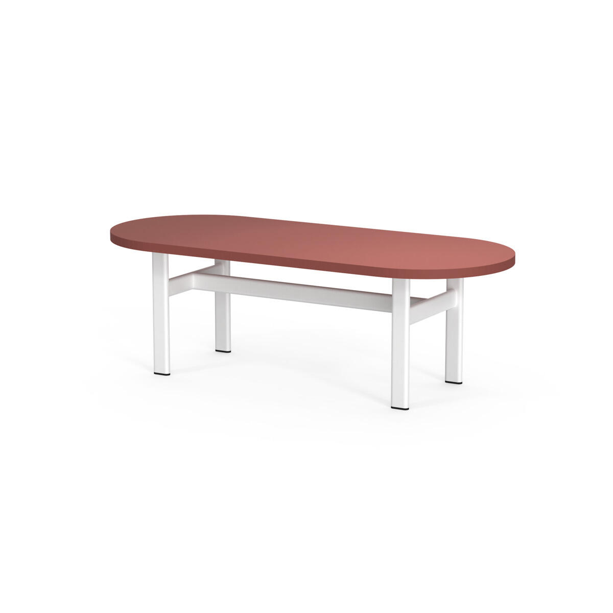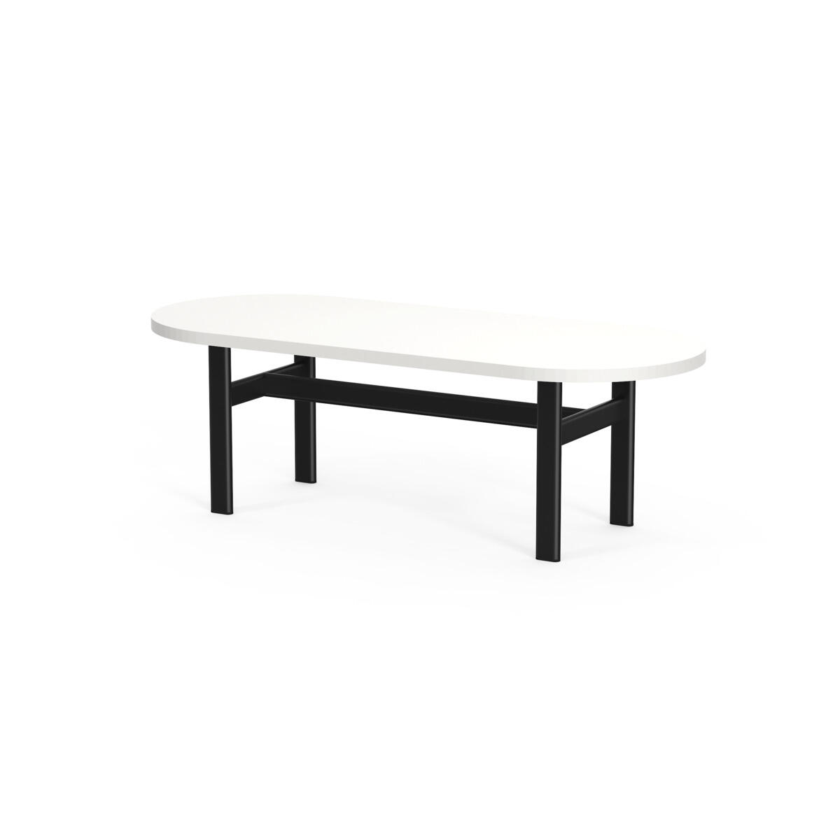 Sittpuffen är försedd med fast sidobord. Bordsskiva i laminat. Stativ i pulverlackad metall. Sittpuffen har trästomme och stoppning i kallskum. Försedd med glidfötter.