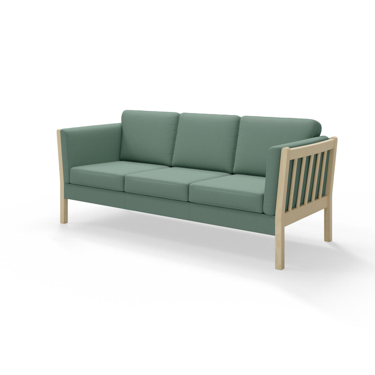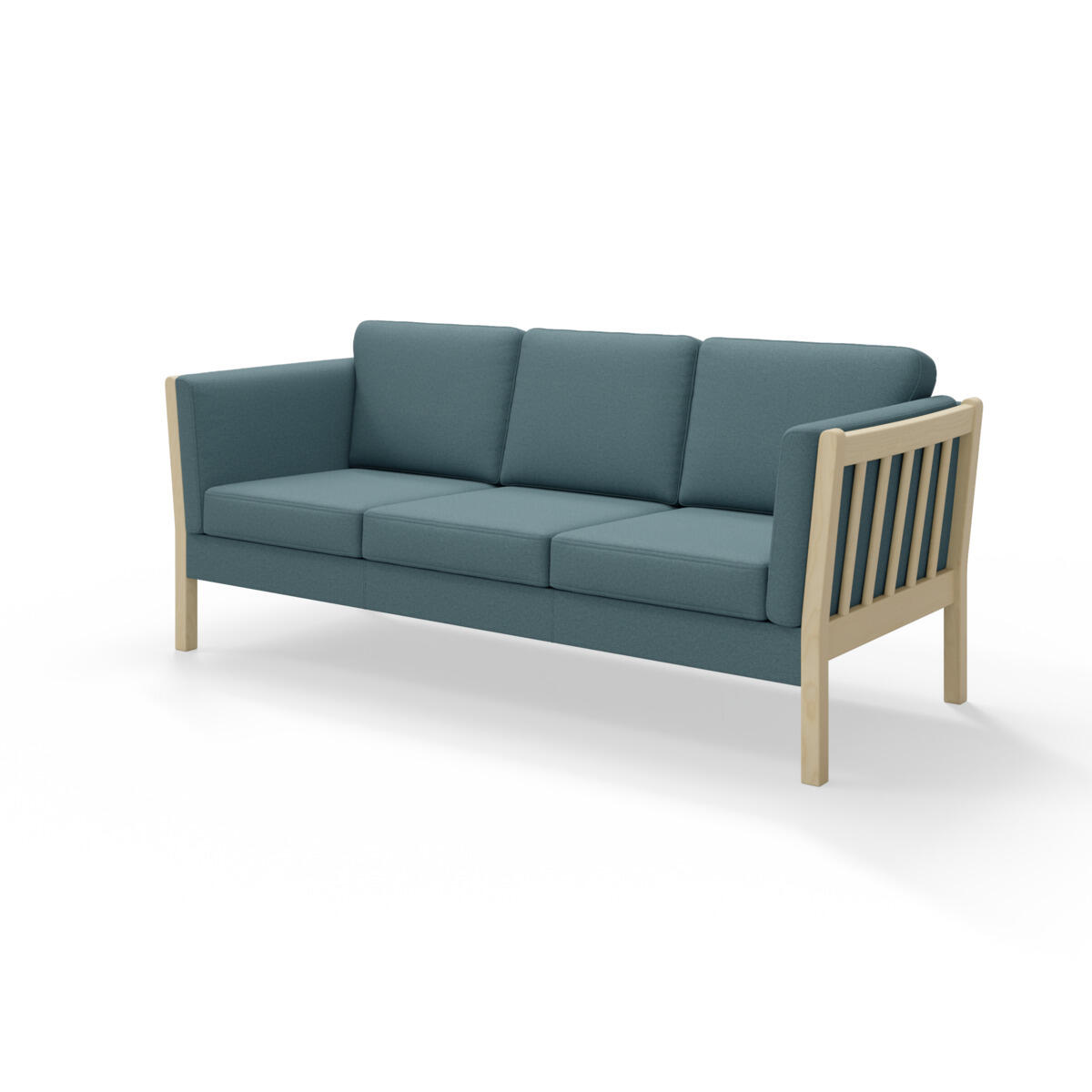 En soffa med stomme i massivt trä och nozagbotten för robust stöd och komfort. All klädsel på både stomme och dynor är avtagbar för att underlätta rengöring och underhåll. Enkel montering av ben.