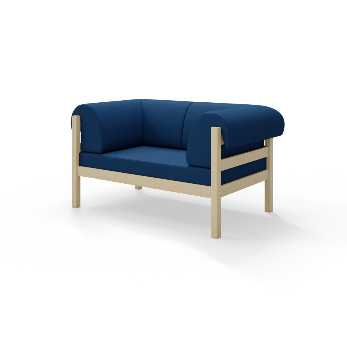 Soffa med en robust björkstomme och botten av hård träfiberskiva. Den mjuka stoppningen av kallskum ger en bekväm sittupplevelse för både barn och vuxna. Avtagbara fodral. Komplettera med urinvävsklädsel för att öka livslängden på din soffa.