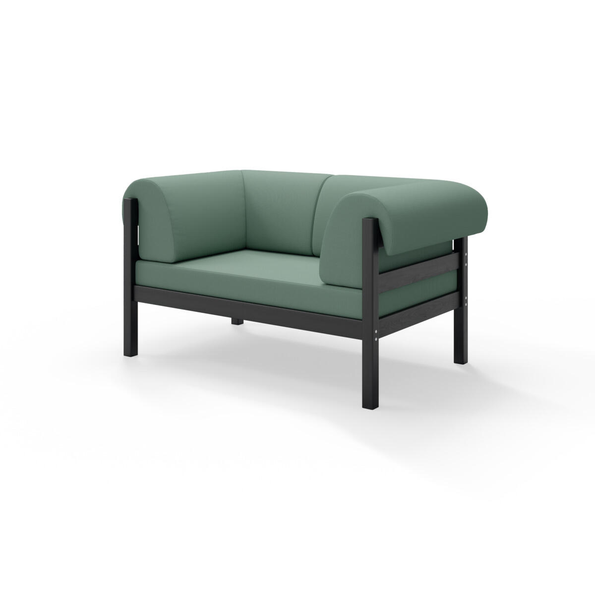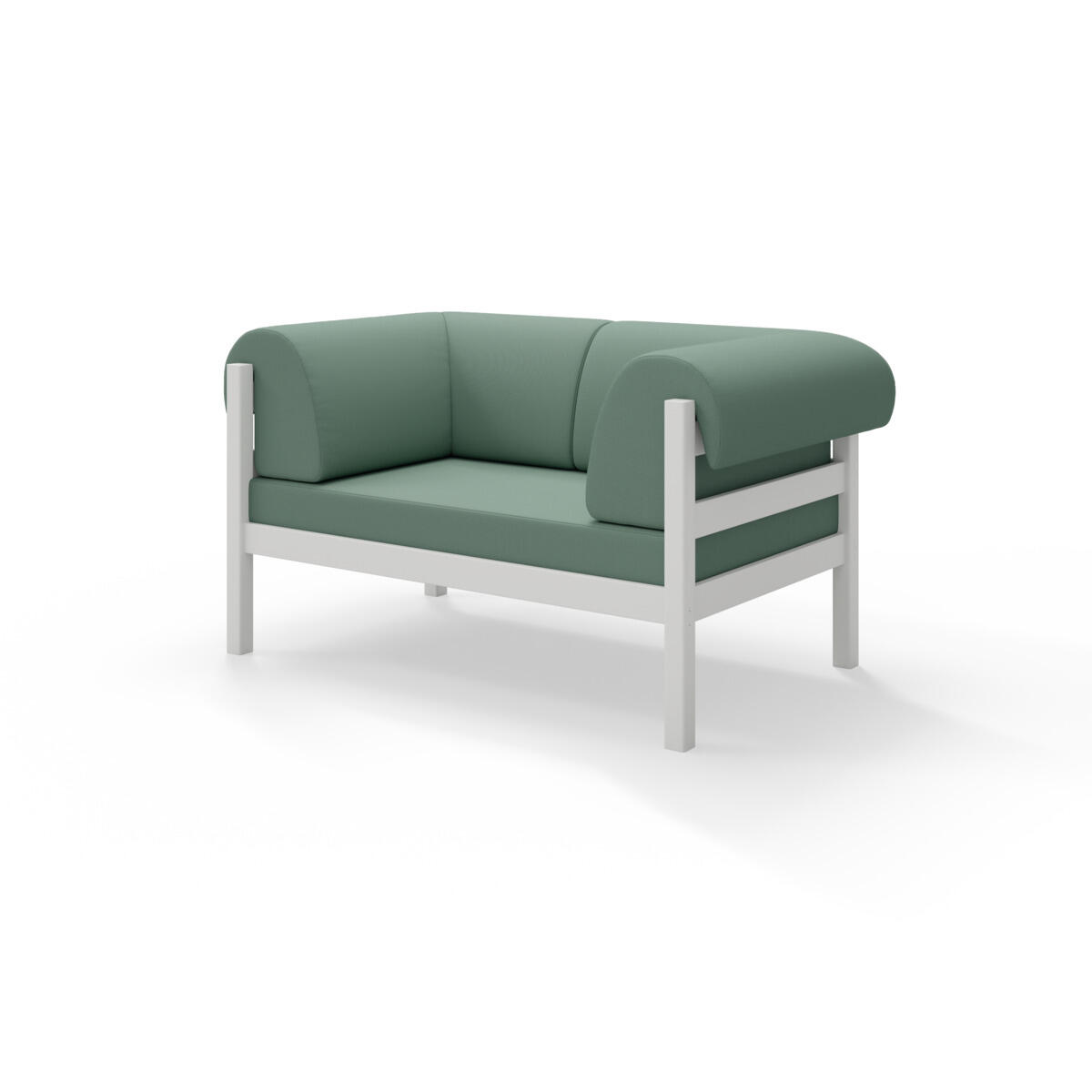 En soffa med stomme i massivt trä och nozagbotten för robust stöd och komfort. All klädsel på både stomme och dynor är avtagbar för att underlätta rengöring och underhåll. Enkel montering av ben.