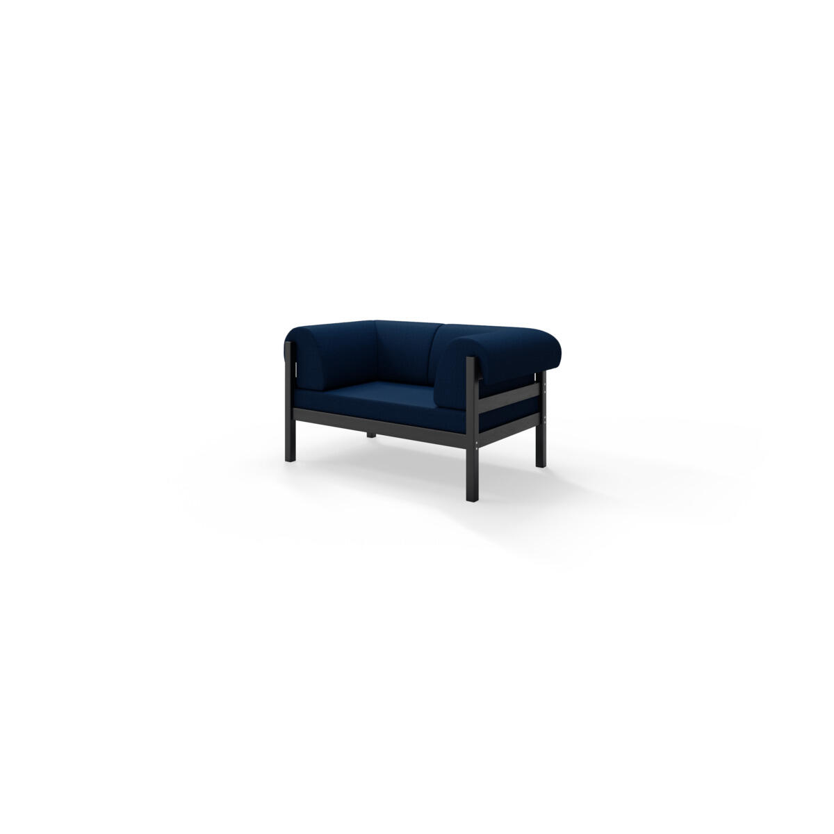 Mått: 144x82 cm. Sitthöjd 44 cm. Sittdjup 53 cm. Dynor av kallskum, med nozagbotten. Ben i svartmålad björk. Avtagbart tyg i polyester som tvättas i 30 °C.