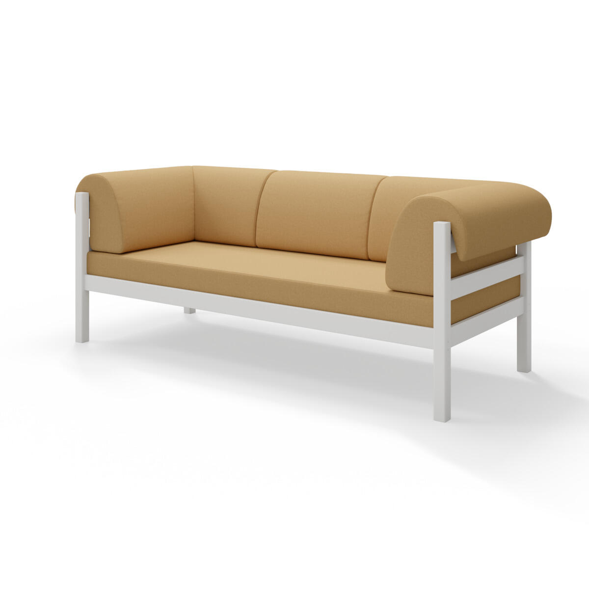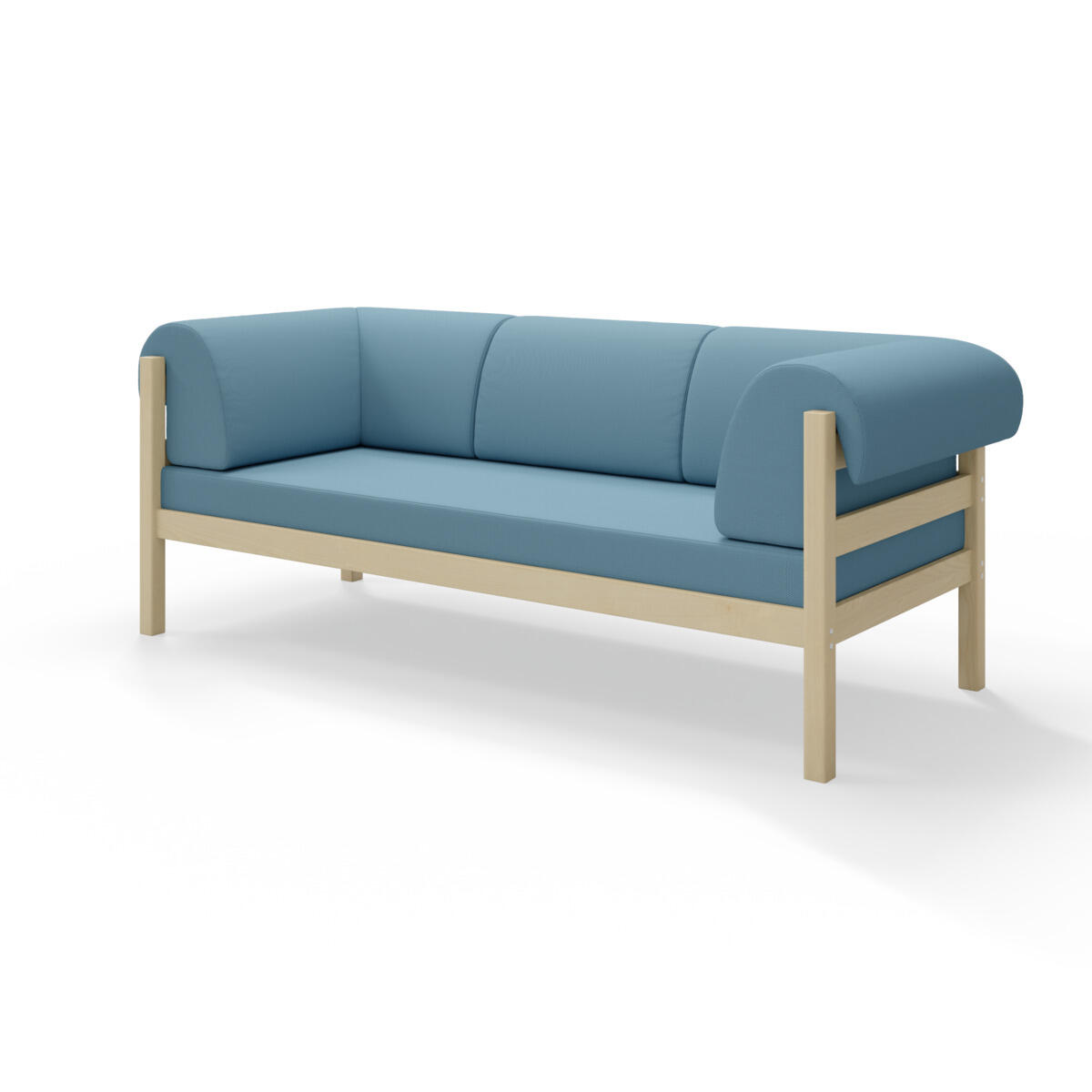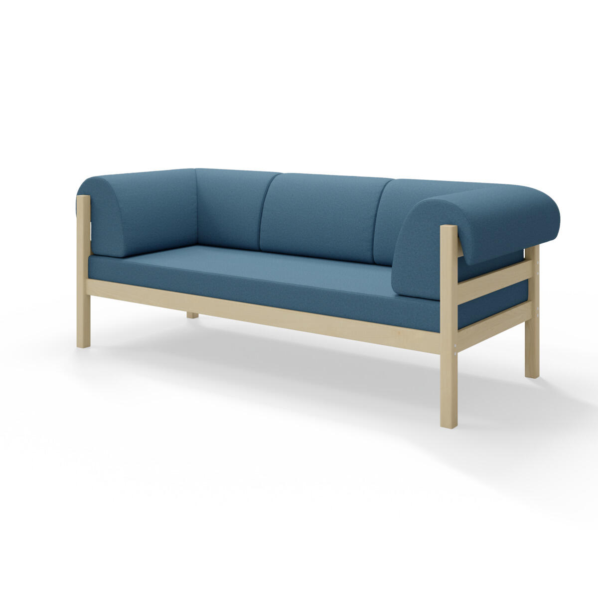 Soffa med en robust björkstomme och botten av hård träfiberskiva. Den mjuka stoppningen av kallskum ger en bekväm sittupplevelse för både barn och vuxna. Avtagbara fodral. Komplettera med urinvävsklädsel för att öka livslängden på din soffa.