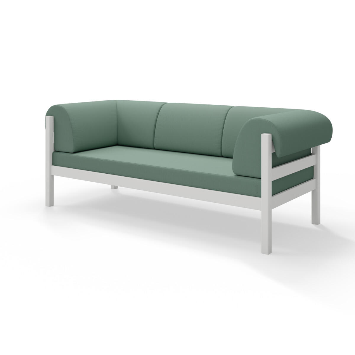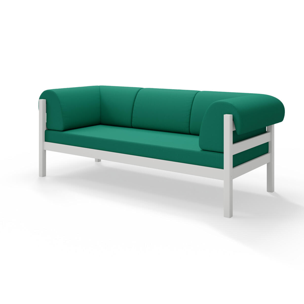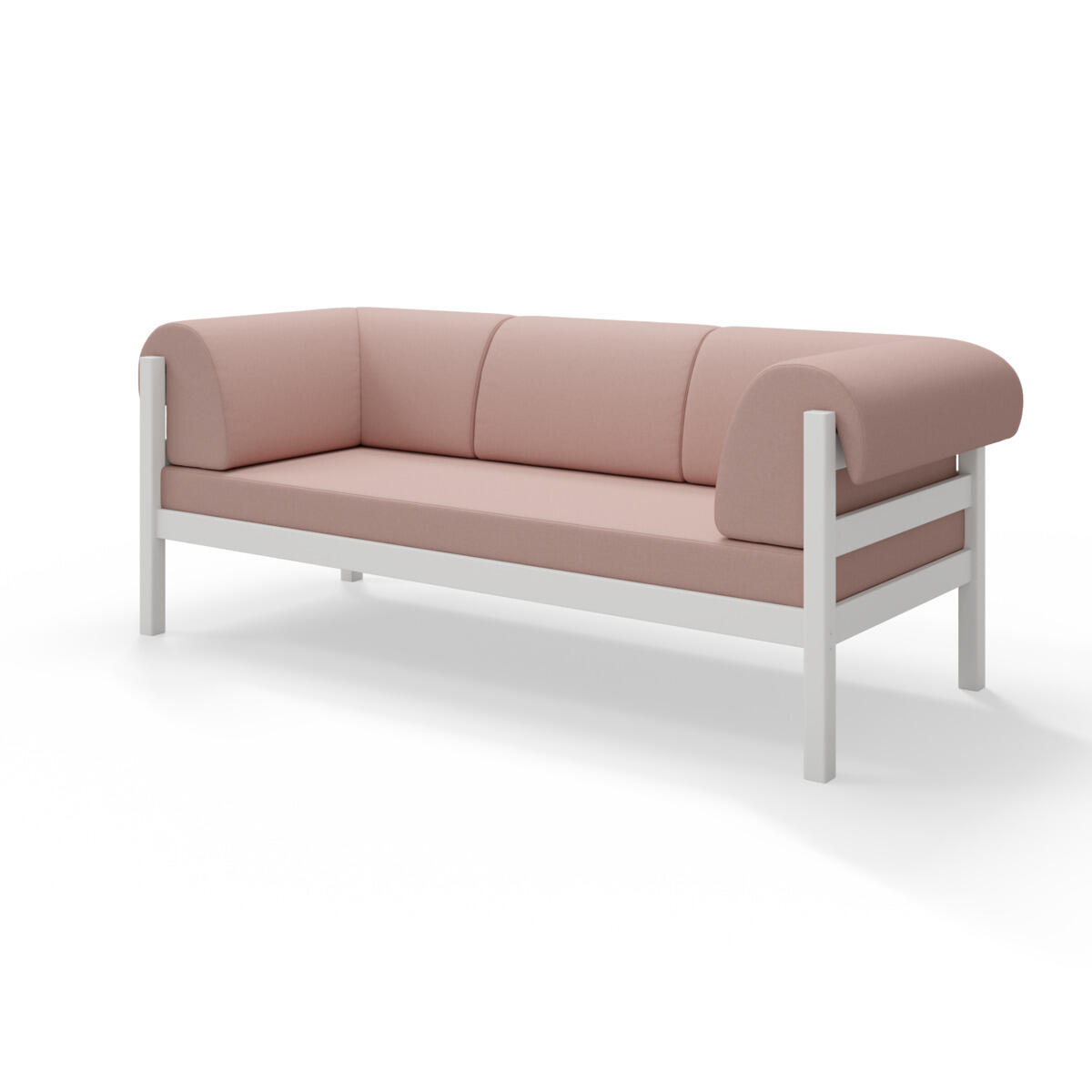 Soffa med en robust björkstomme och botten av hård träfiberskiva. Den mjuka stoppningen av kallskum ger en bekväm sittupplevelse för både barn och vuxna. Avtagbara fodral. Komplettera med urinvävsklädsel för att öka livslängden på din soffa.