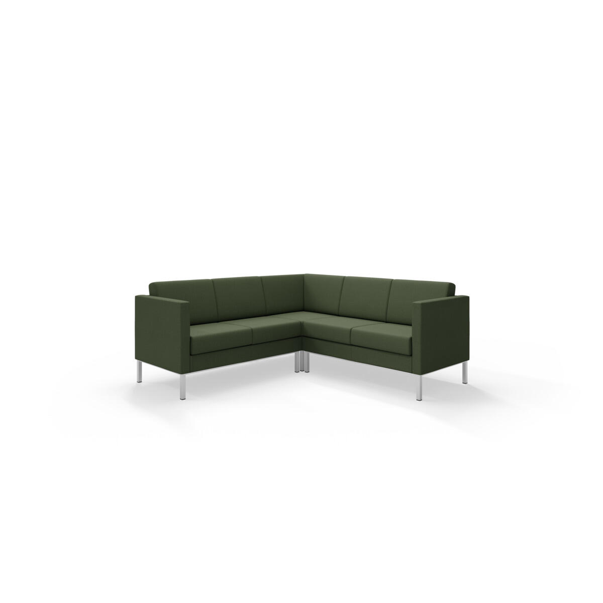 En modern och tidlös soffa som med sitt enkla formspråk passar in i de flesta miljöer. Den raka utsidan gör det lätt att placera flera soffor tätt intill varandra, exempelvis rygg mot rygg. Trästomme med nozagbotten och stoppning i kallskum. Stativ i pulverlackad metall. Avtagbart fodral på rygg- och sittdynor.