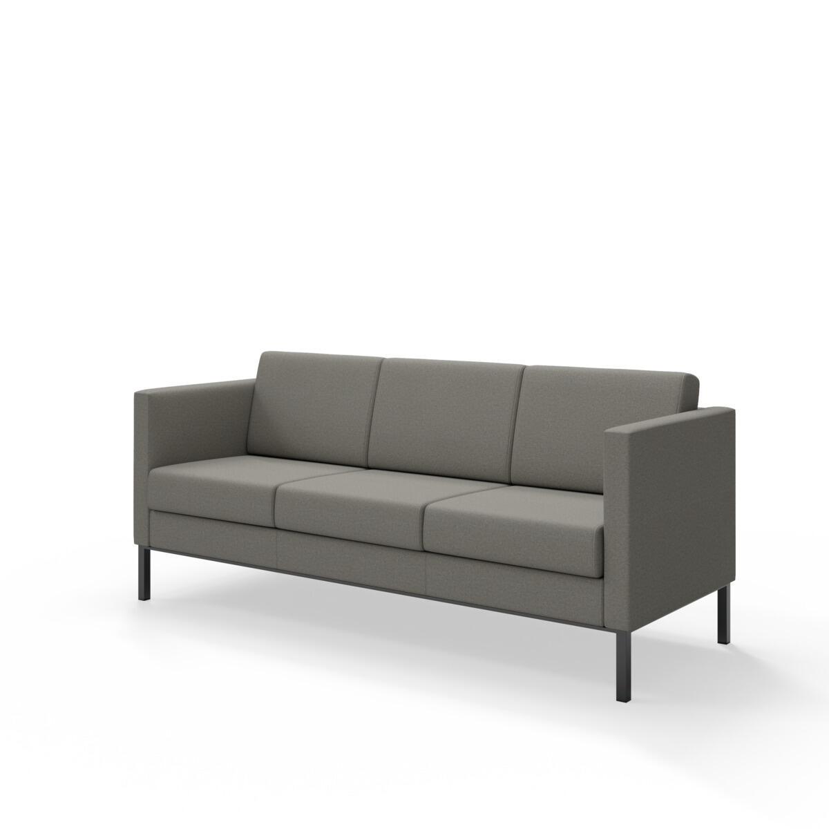 En modern och tidlös soffa som med sitt enkla formspråk passar in i de flesta miljöer. Den raka utsidan gör det lätt att placera flera soffor tätt intill varandra, exempelvis rygg mot rygg. Trästomme med nozagbotten och stoppning i kallskum. Stativ i pulverlackad metall. Avtagbart fodral på rygg- och sittdynor.