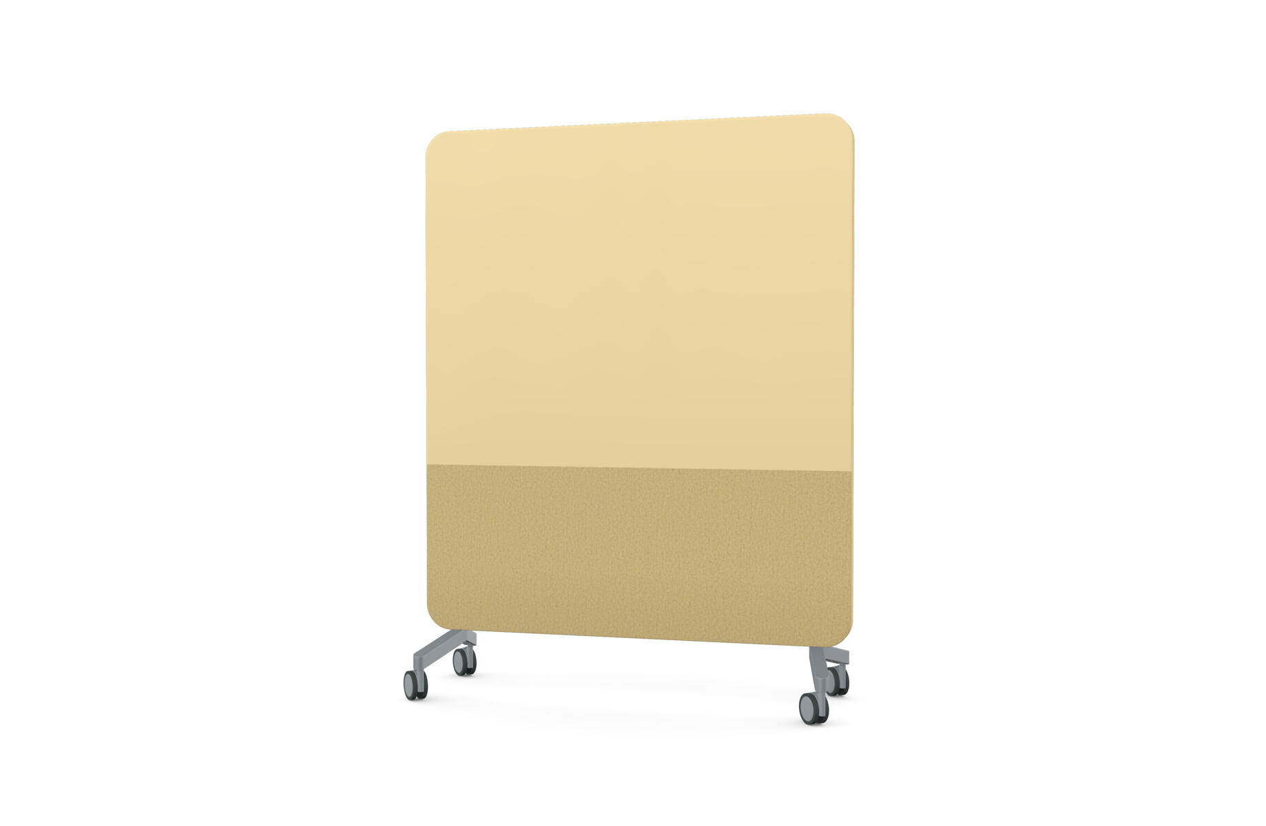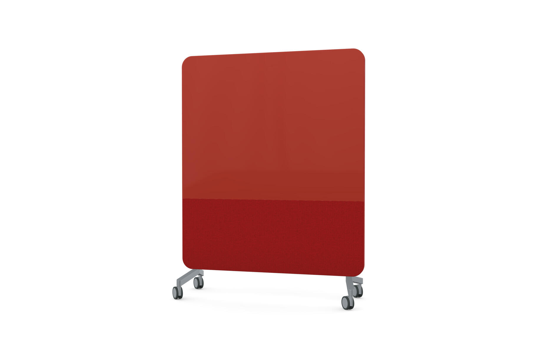 Mobil magnetbärande skrivtavla med framsida av både glas och tygklädd nålbar yta. Heltäckande tygklädd nålbar baksida. Ljudabsorberande fyllning. Härdat, optiskt glas. Kräver särskilt anpassade, starkare magneter. Välj mellan flera utvalda färgkombinationer. Fötter säljs separat.