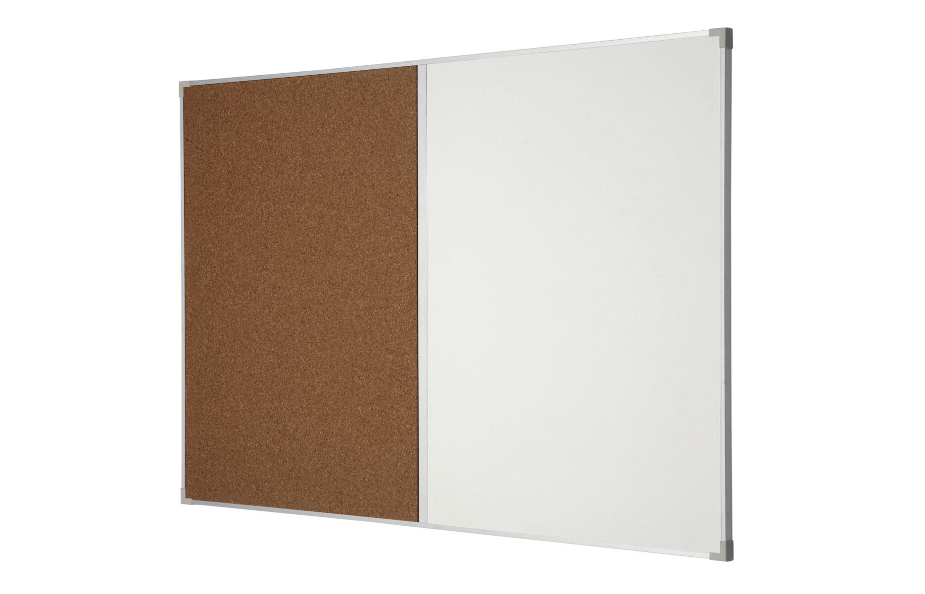 Skrivtavla med aluminiumram som går att få med olika ytor. Svart, blå och grön är för kritor. Vit är med glasemaljerad plåtyta för whiteboardanvändning. Grå plasthörn. Pennhylla och beslag för väggmontering medföljer. Magnetisk.