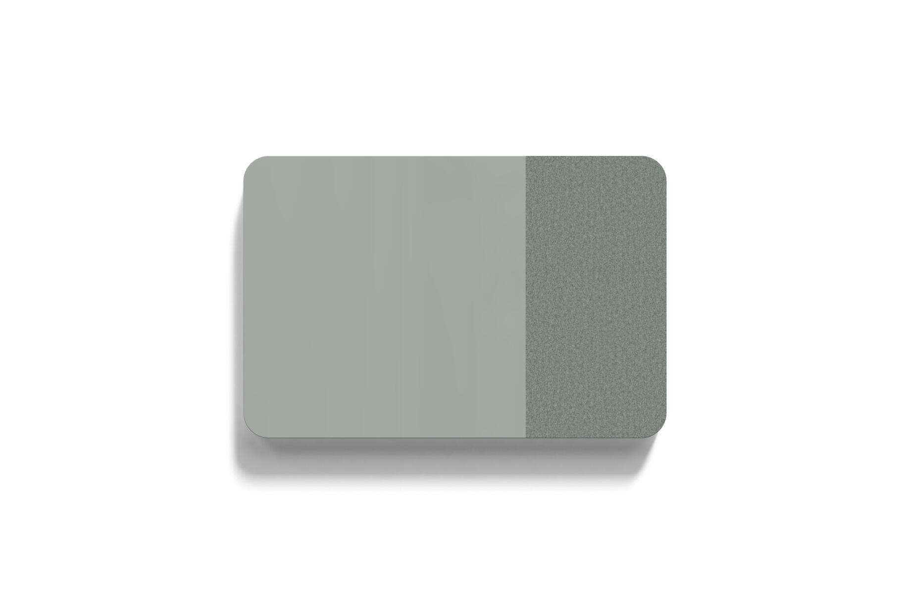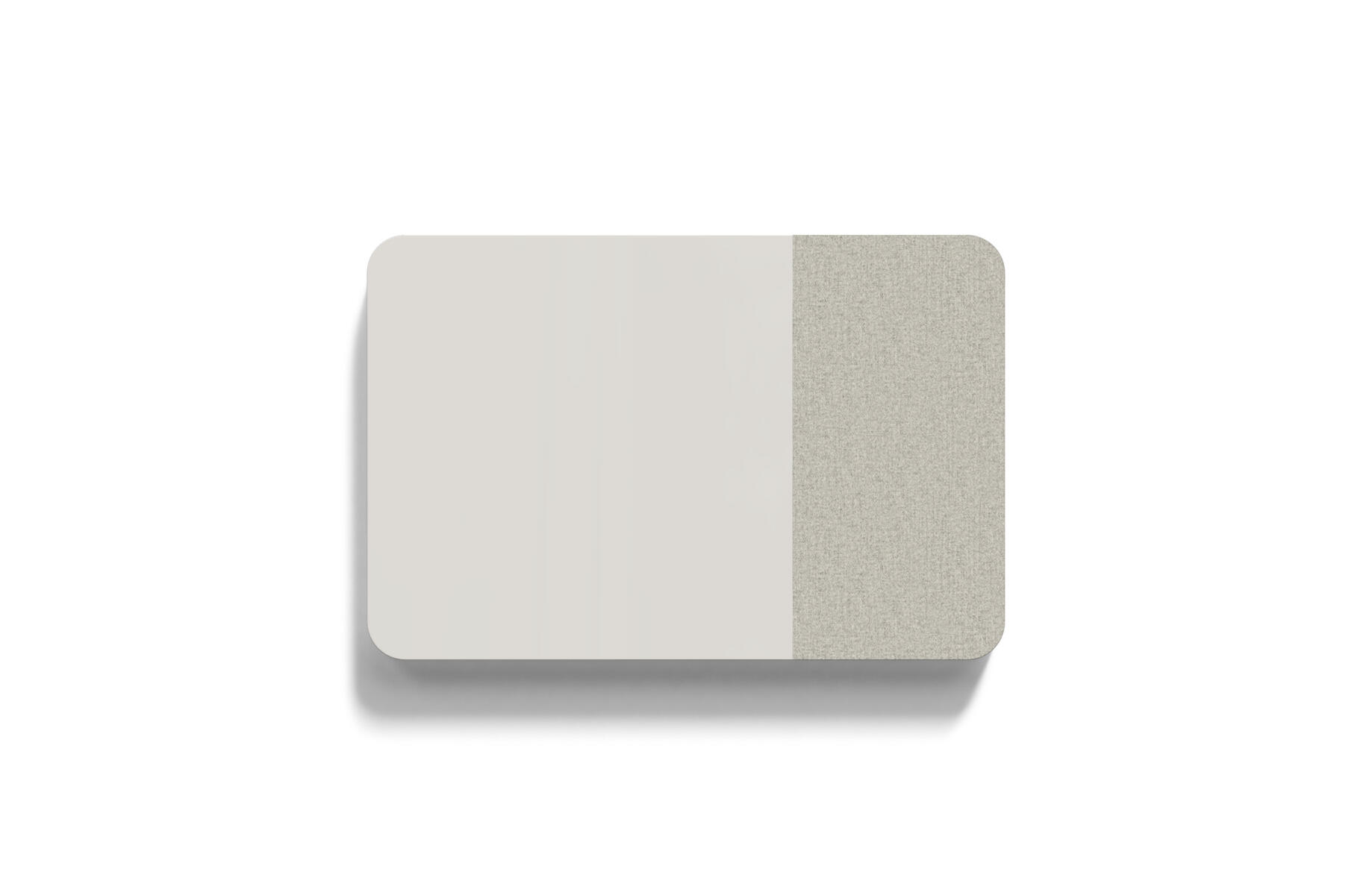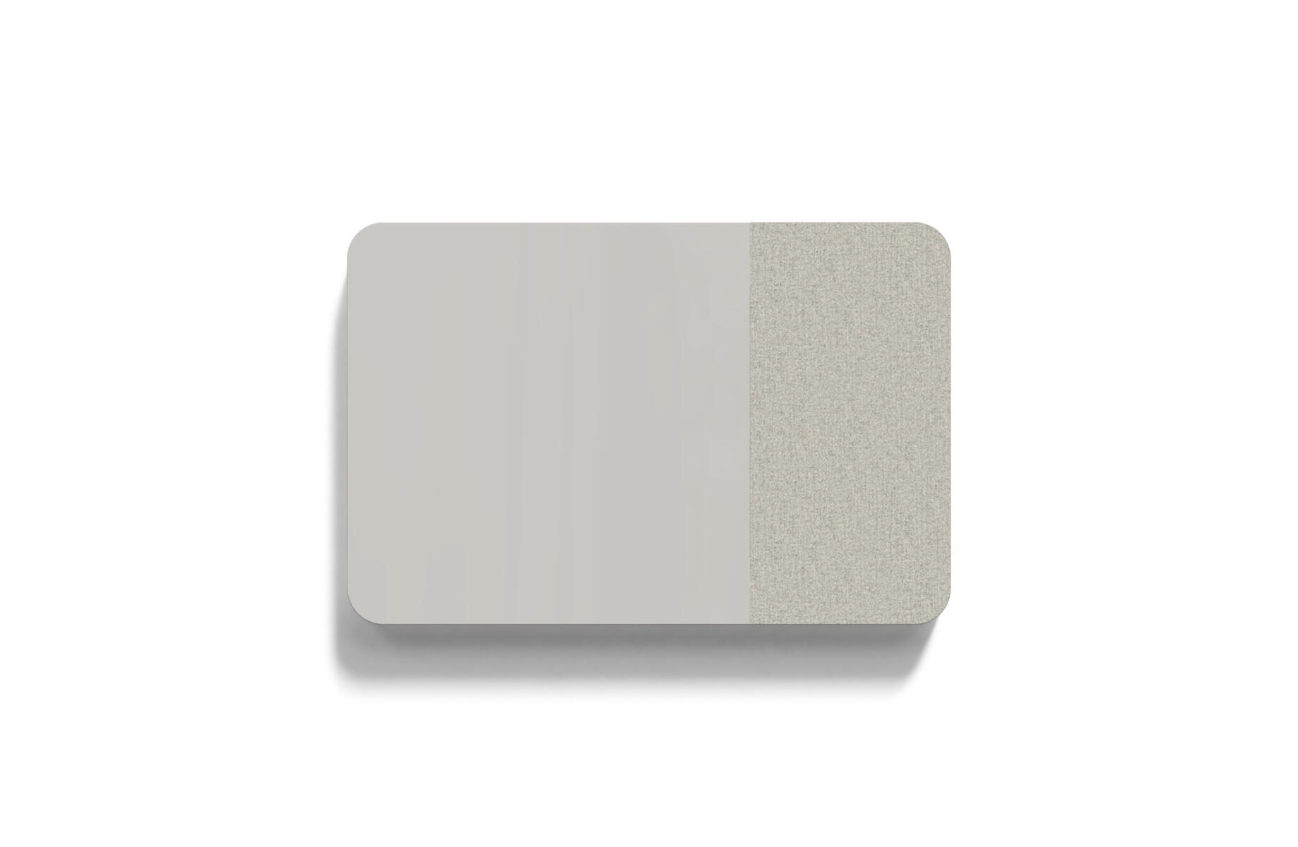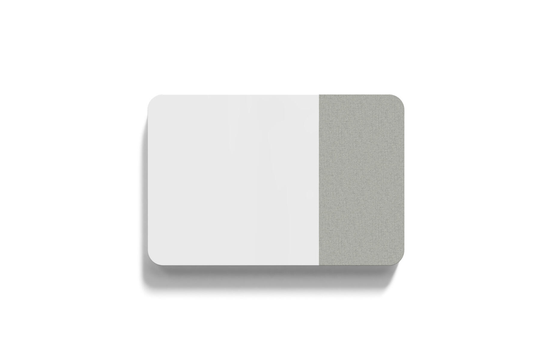 Magnetbärande skrivtavla med mjukt rundade hörn och tygklädd ljudabsorberande och nålbar yta. Skrivbar yta 100x100 cm, nålbar yta 50x100 cm. Dolda beslag. Härdat, optiskt glas. Kräver särskilt anpassade, starkare magneter. Välj mellan flera utvalda färgkombinationer.