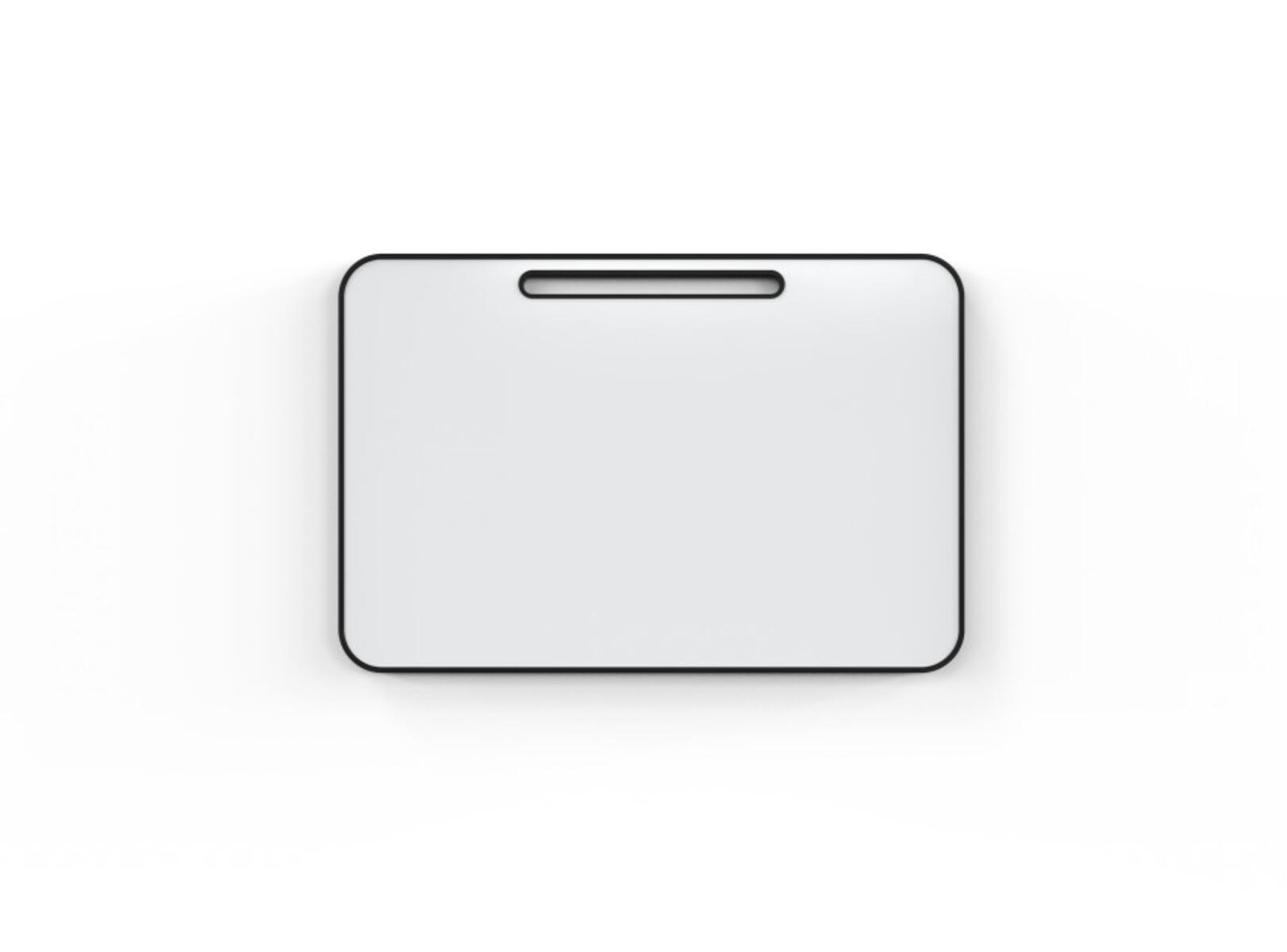 Magnetbärande vit skrivtavla i keramiskt stål med fasade kanter. Dolda beslag. Skrivyta tillverkad av 50 % återvunnet material. Tavlan är till 99 % återvinningsbar.