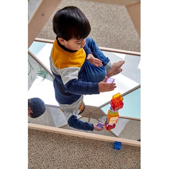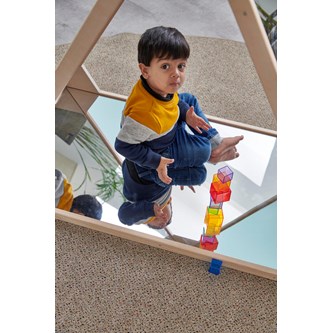 Barn blir som uppslukade av de här återspeglande, släta stenarna. Notera skillnaderna, sortera och lägg dem på rad eller bygg torn av dem. Idealiska att bygga månlandskap i miniatyr med. Spegelstenarna har 4 olika storlekar. Från 4,5 till 15 cm i diameter. För användning inomhus och med fördel på mjuka underlag, då vassa föremål kan repa ytan. Rengöres med mjuk trasa. Av ABS. PVC-fri. Från 10 månader.