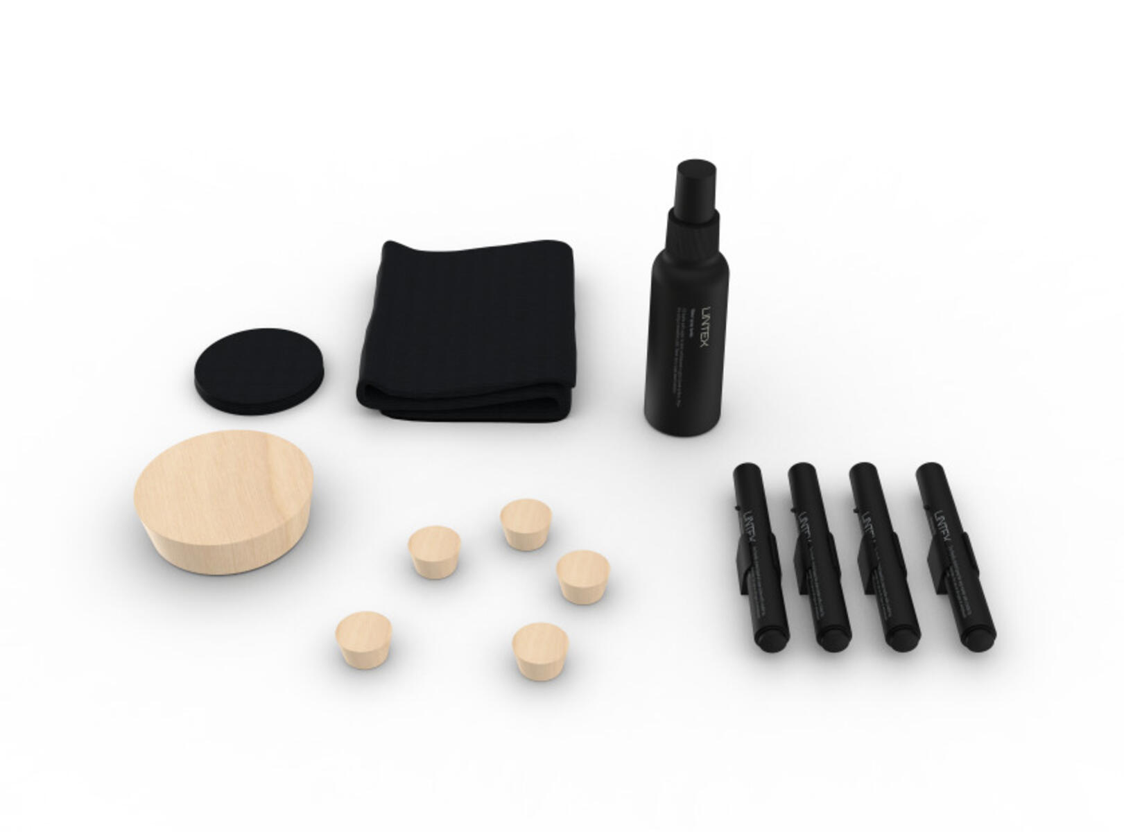 Innehåller 4 pennor, 5 magneter i mörk kork, 1 sprayflaska, 1 taveltork, 5 refill till taveltork, 1 mikrofiberduk och 4 magnethållare för pennor.