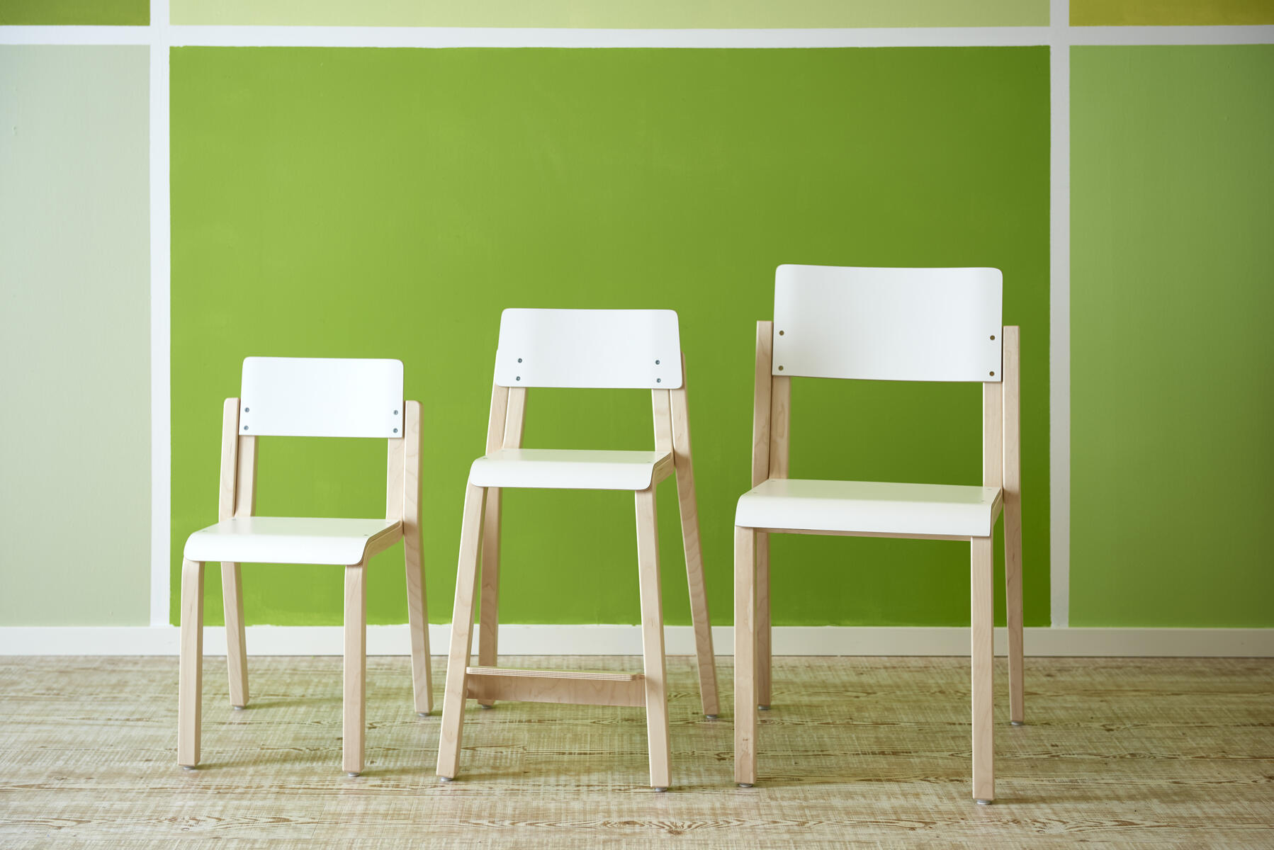 Inkluderar fotstöd justerbart i 4 höjder. Sitthöjd 50 cm. Sitsmått: B31xD32 cm. Totaldjup 49 cm och totalbredd 47 cm. Stapelbar. Ben i formpressad björk. Sits och rygg i högtryckslaminat.