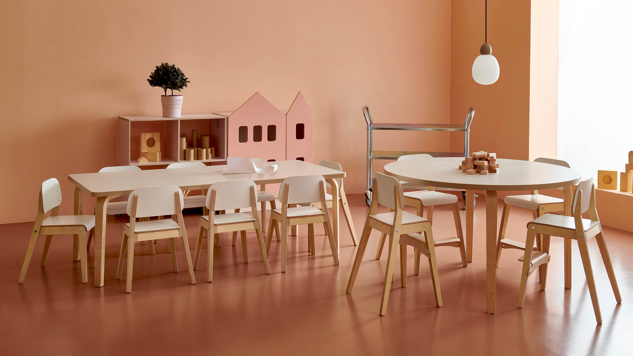 Grow är en stol för barn i förskolan och en utmärkt sittmöbel för förskolemiljöer. Stolen har en cirkulär design, där alla delar kan bytas ut så att livslängden på denna förskolemöbel kan förlängas. Förskolestolen finns i två olika sittdjup med justerbart fotstöd, vilket gör att alla barn, oavsett ålder, kan sitta bekvämt och ergonomiskt med stöd i såväl rygg som under fot. Den smarta designen gör dessutom att stolen går att stapla, även med fotstöd och armstöd. Varianten med armstöd kan enkelt hängas direkt på bordet, vilket skapar en flexibel och lättstädad förskolemiljö. Serien innehåller även matchande bord som följer samma cirkulära designtanke.