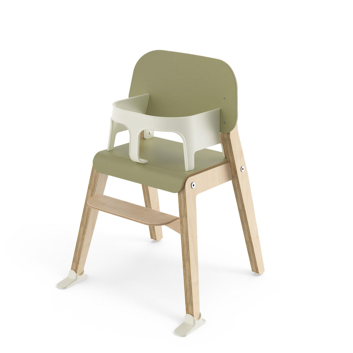 Grow har en cirkulär design där alla delar kan bytas ut, vilket ger en lång livstid. Benramen är av klarlackad björkplywood, och sits och rygg är av plywood med tåligt högtryckslaminat. Ryggstödet är mjukt skålat för att ge komfort och stöd. Den lätt bakåtlutade sitsen med sin rundade framkant ger en mjuk känsla och förebygger att barnet glider ner. Sitsen har inga skruvhål i ytskiktet vilket gör den enkel att torka av och hålla ren. Stolens sittdjup och sitthöjd är anpassade för barn 80-120 cm. Fotstödet går att justera i fyra sitthöjder 15-30 cm, intervall om 5 cm. Stapelbar upp till tre i höjd. Stolen uppfyller de höga kraven enligt standard EN 17191.