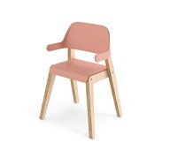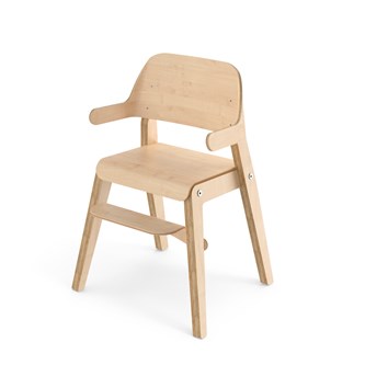 Grow har en cirkulär design där alla delar kan bytas ut, vilket ger en lång livstid. Benramen är av klarlackad björkplywood, och sits och rygg är av plywood med tåligt högtryckslaminat. Ryggstödet med armstöd är mjukt skålat för att ge barnet extra komfort och stöd. Den lätt bakåtlutade sitsen med sin rundade framkant ger en mjuk känsla och förebygger att barnet glider ner. Sitsen har inga skruvhål i ytskiktet vilket gör den enkel att torka av och hålla ren. Stolens sittdjup och sitthöjd är anpassade för barn 105-120 cm. Stapelbar upp till tre i höjd. Stolen uppfyller de höga kraven enligt standard EN 17191.